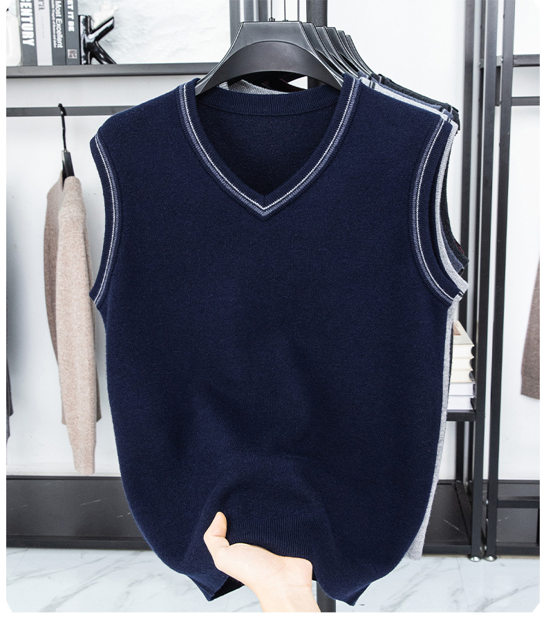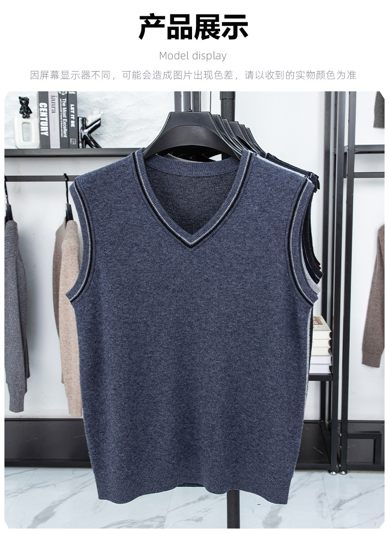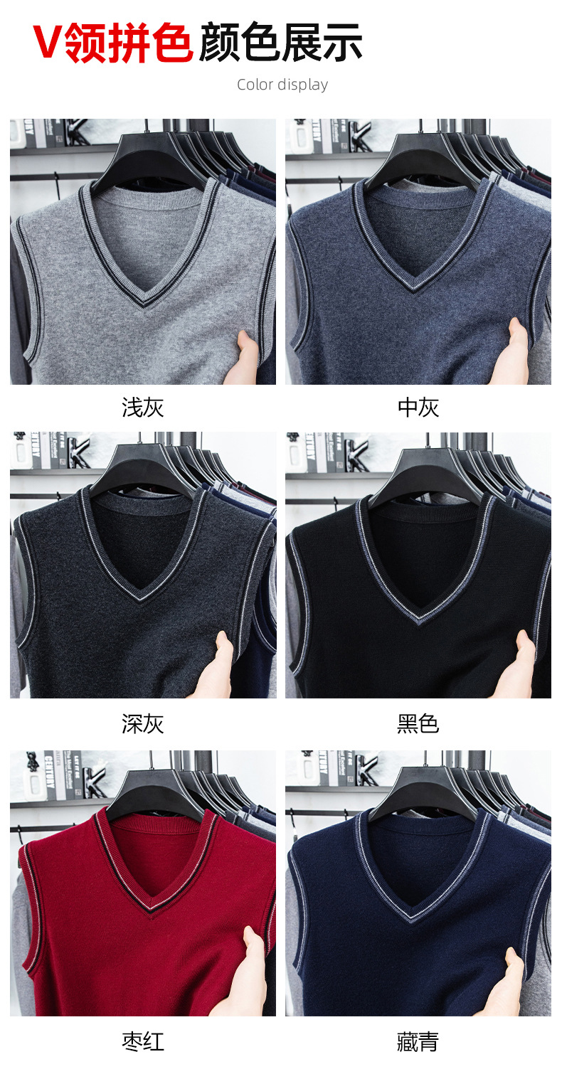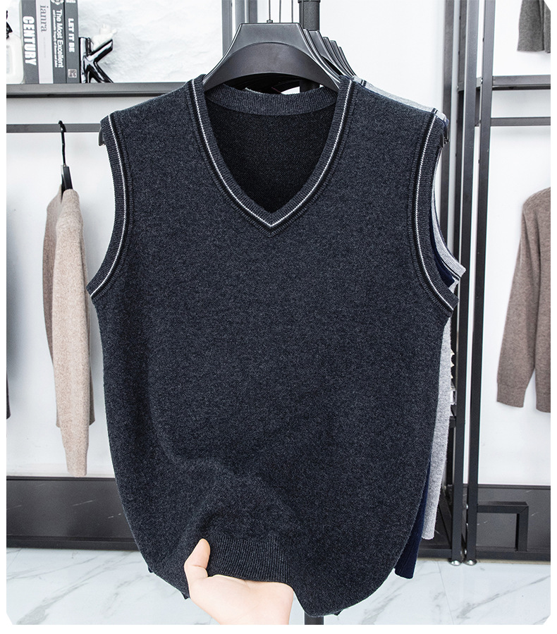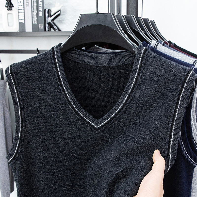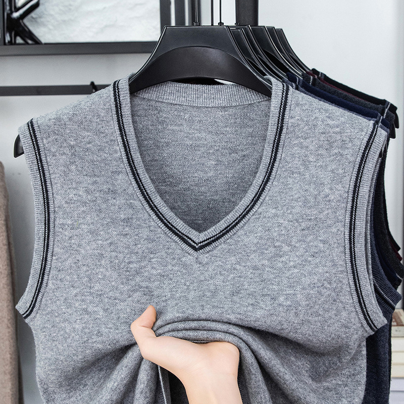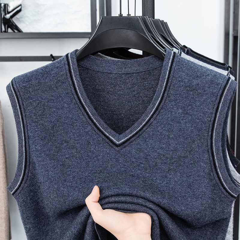 Однотонный шерстяной жилет для мужчин на осень и зиму, шерстяной свитер с V-образным вырезом, утепленный свитер, жилет для мужчин среднего возраста, наряд для папы.