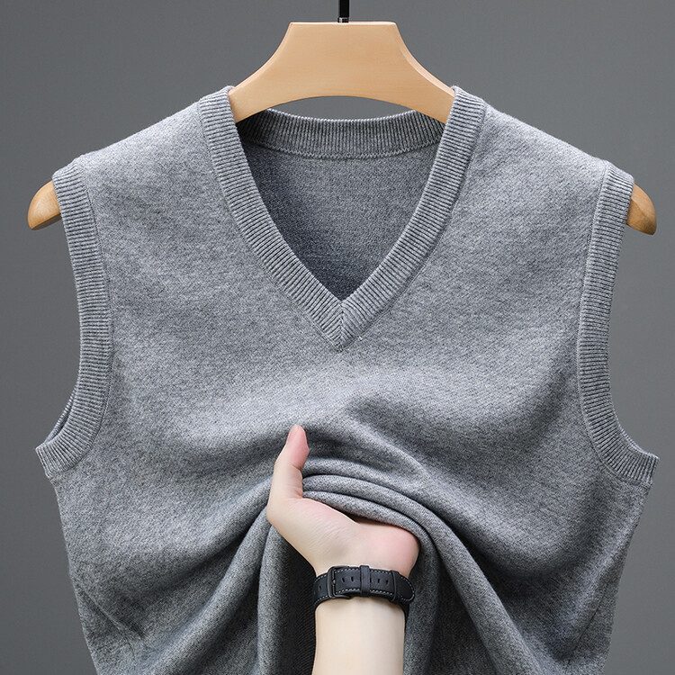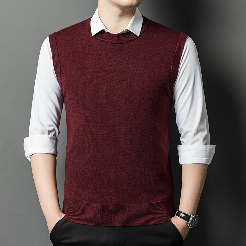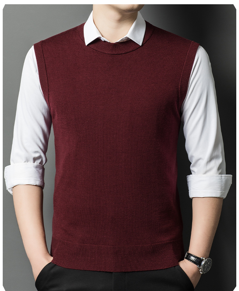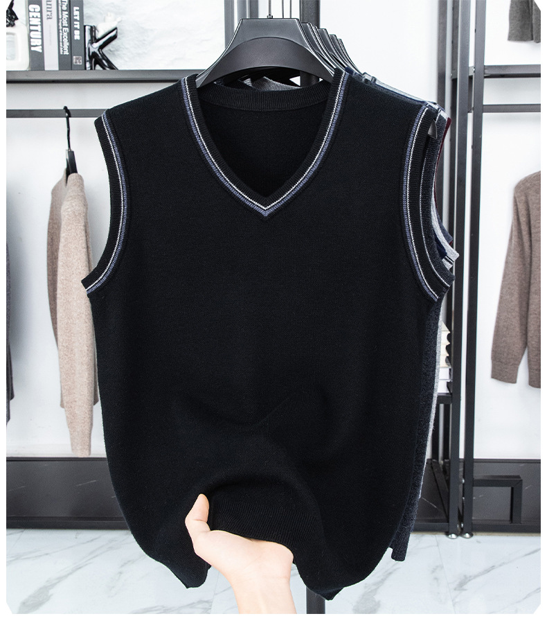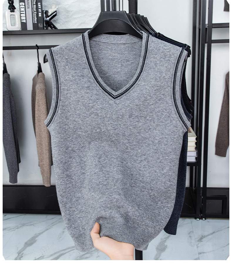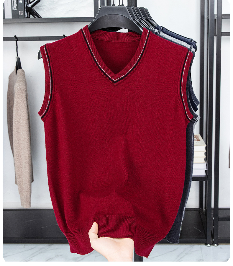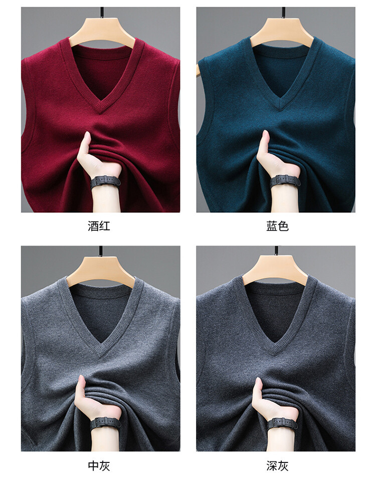 Однотонный шерстяной жилет для мужчин на осень и зиму, шерстяной свитер с V-образным вырезом, утепленный свитер, жилет для мужчин среднего возраста, наряд для папы.