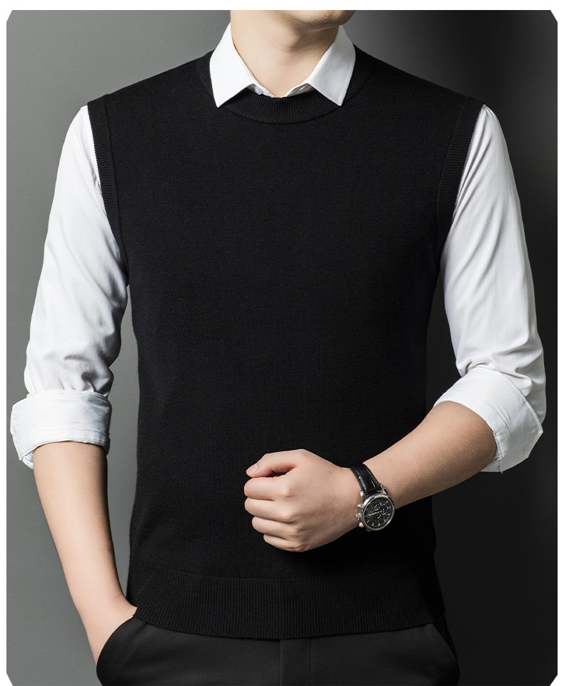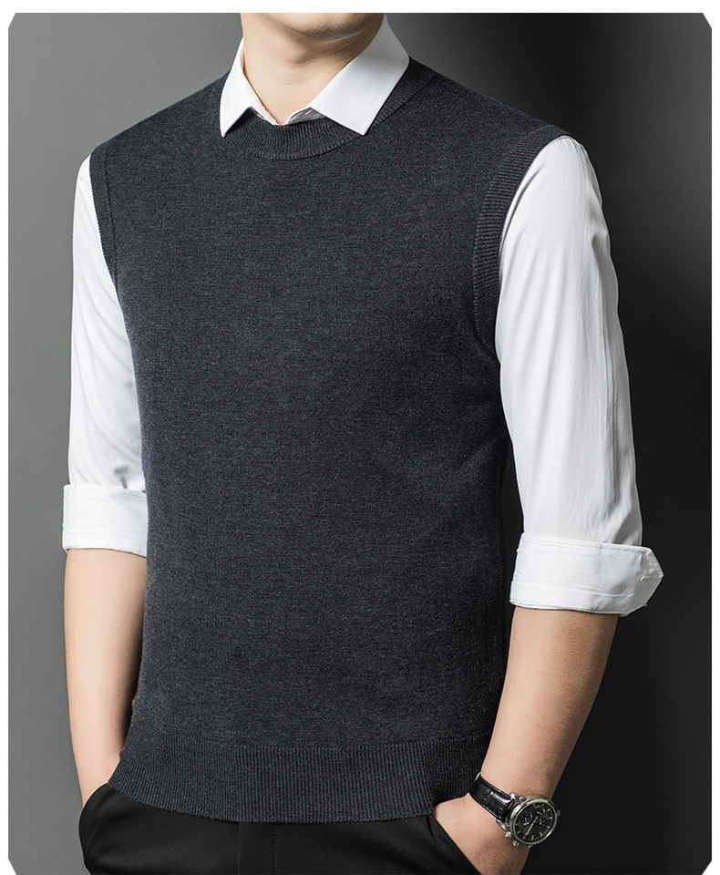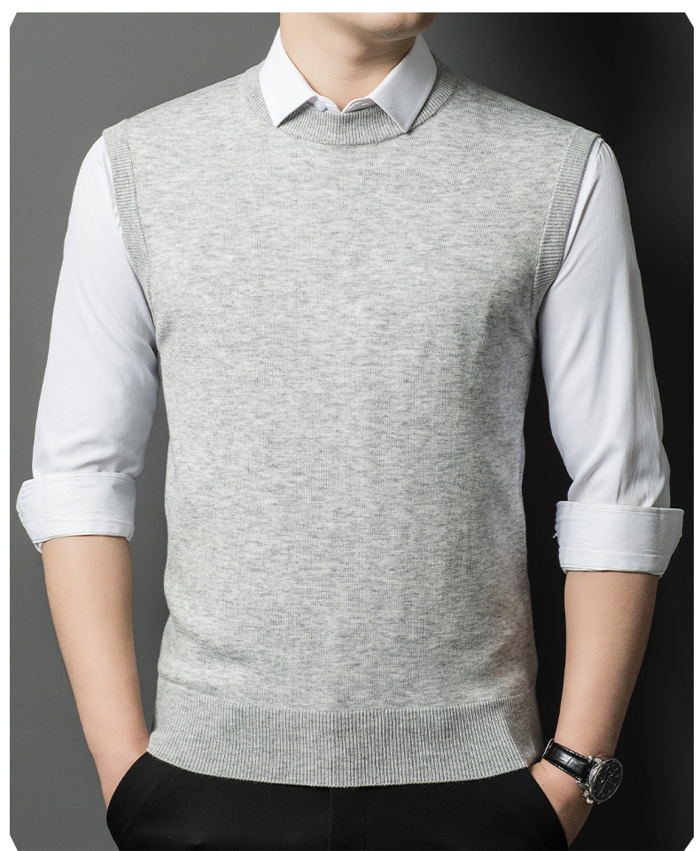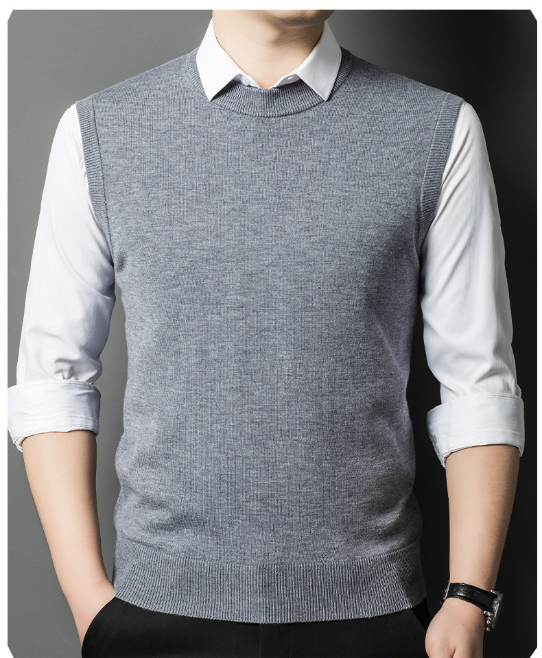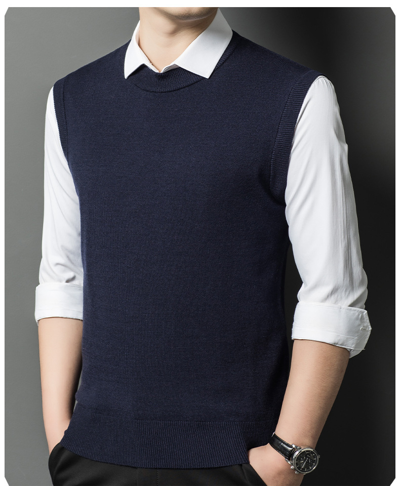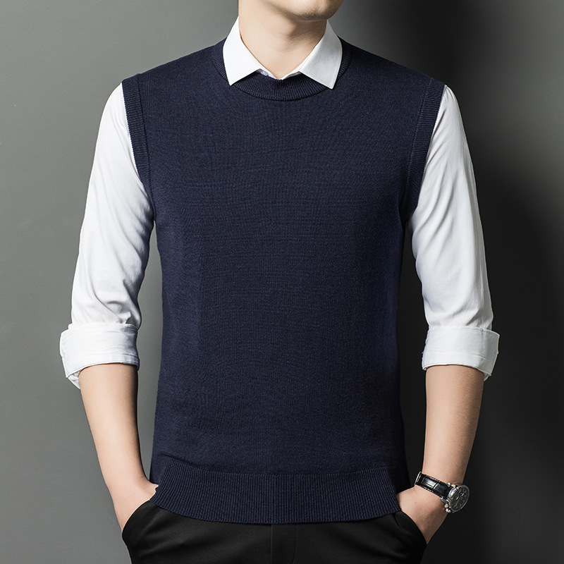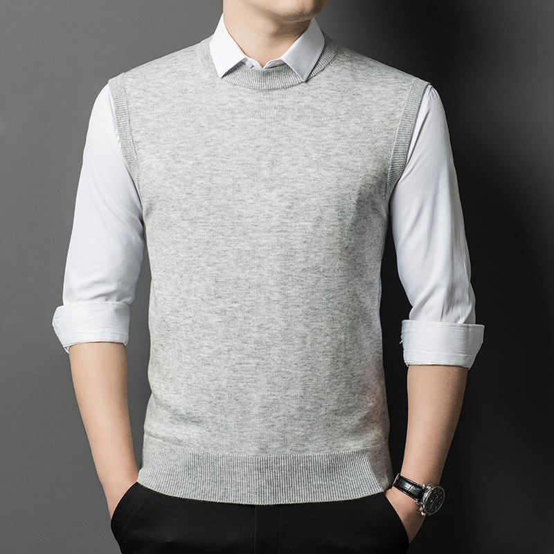Однотонный шерстяной жилет для мужчин на осень и зиму, шерстяной свитер с V-образным вырезом, утепленный свитер, жилет для мужчин среднего возраста, наряд для папы.