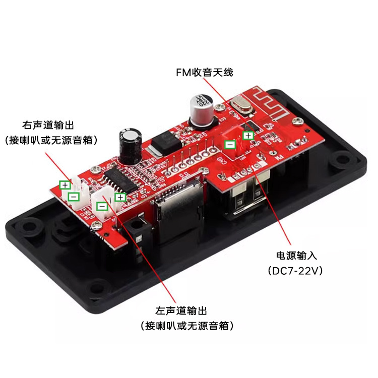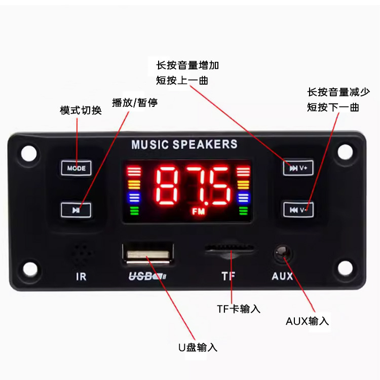2*30W蓝牙解码器立体声功放板彩屏带录音通话DIY无损音频音响音箱