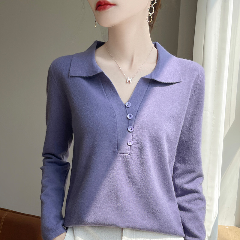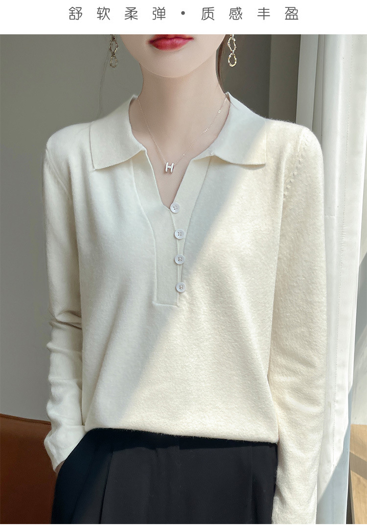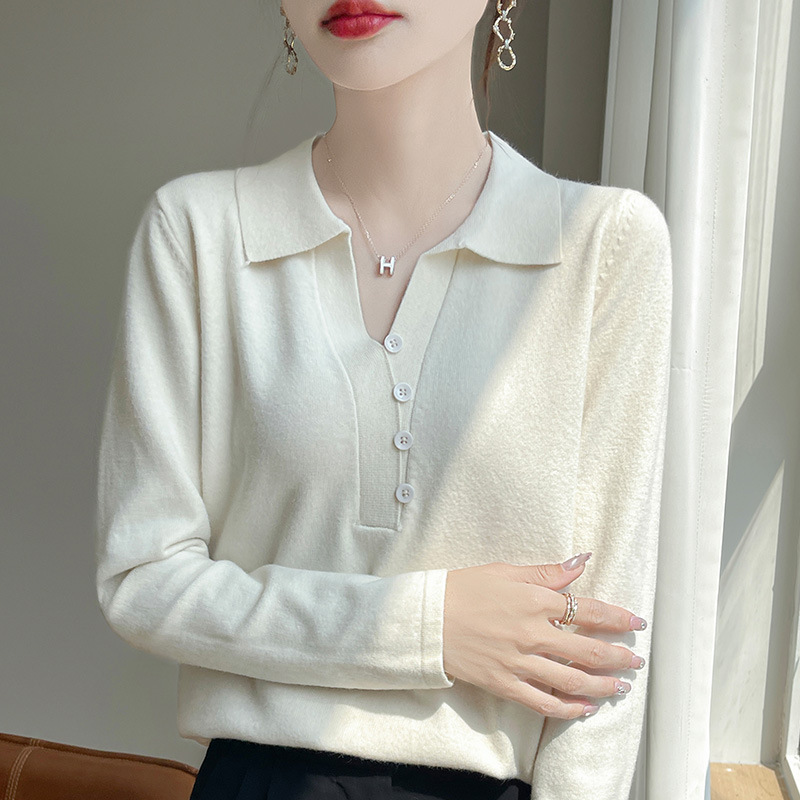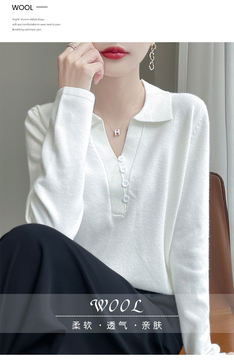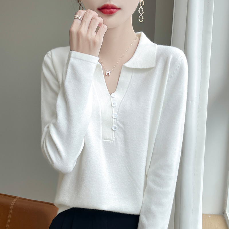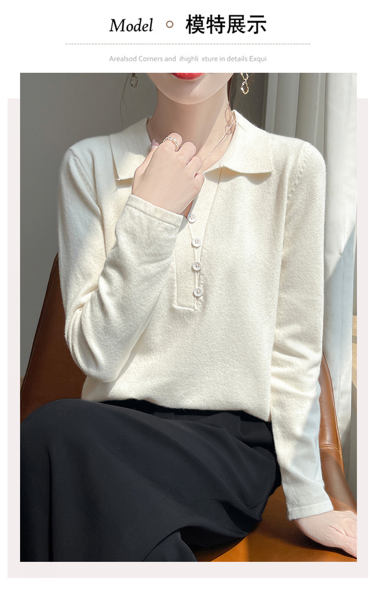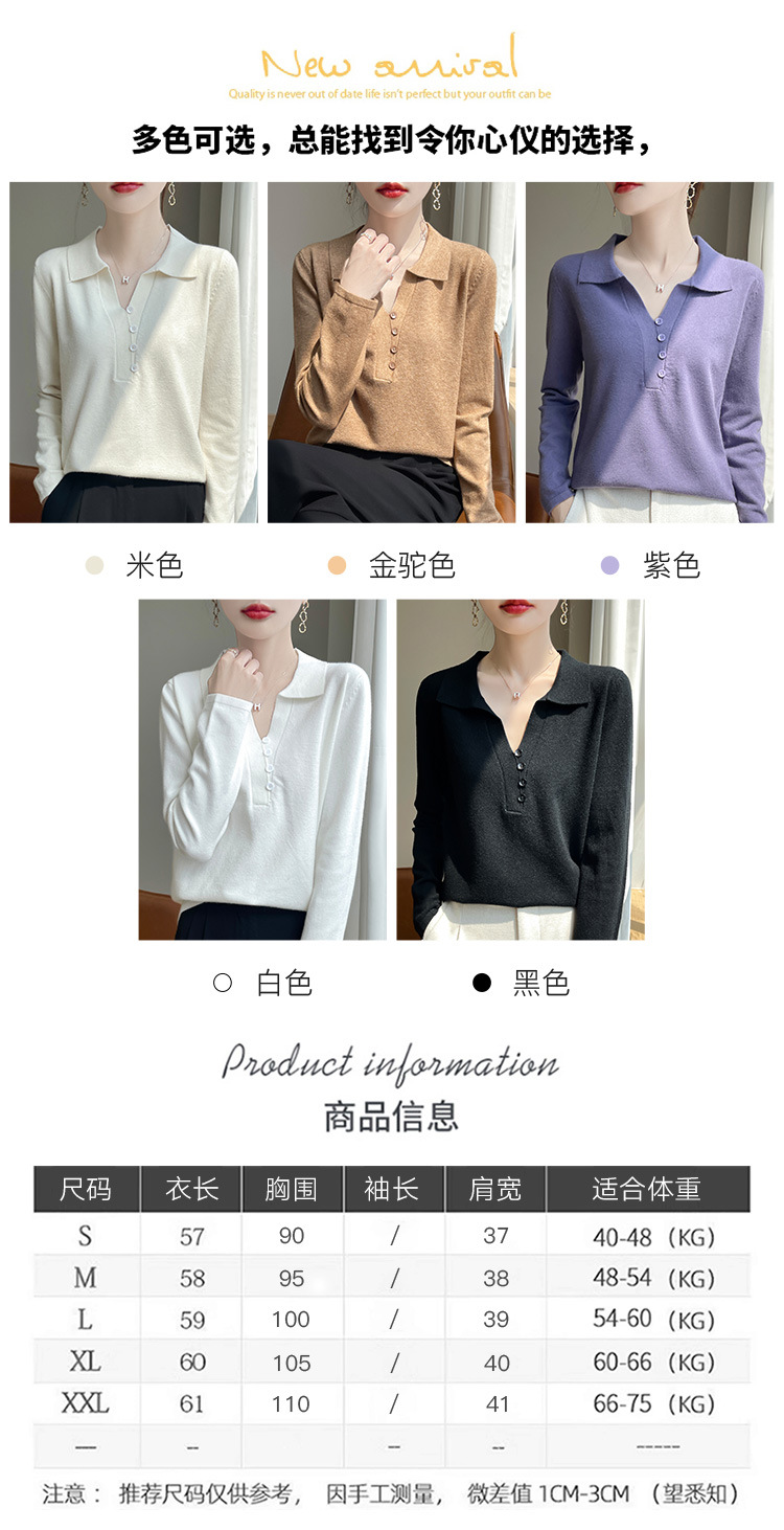 Новый 2024 осенний ветер темперамент Энди пуховой воротник POLO обычный свитер женский трикотаж