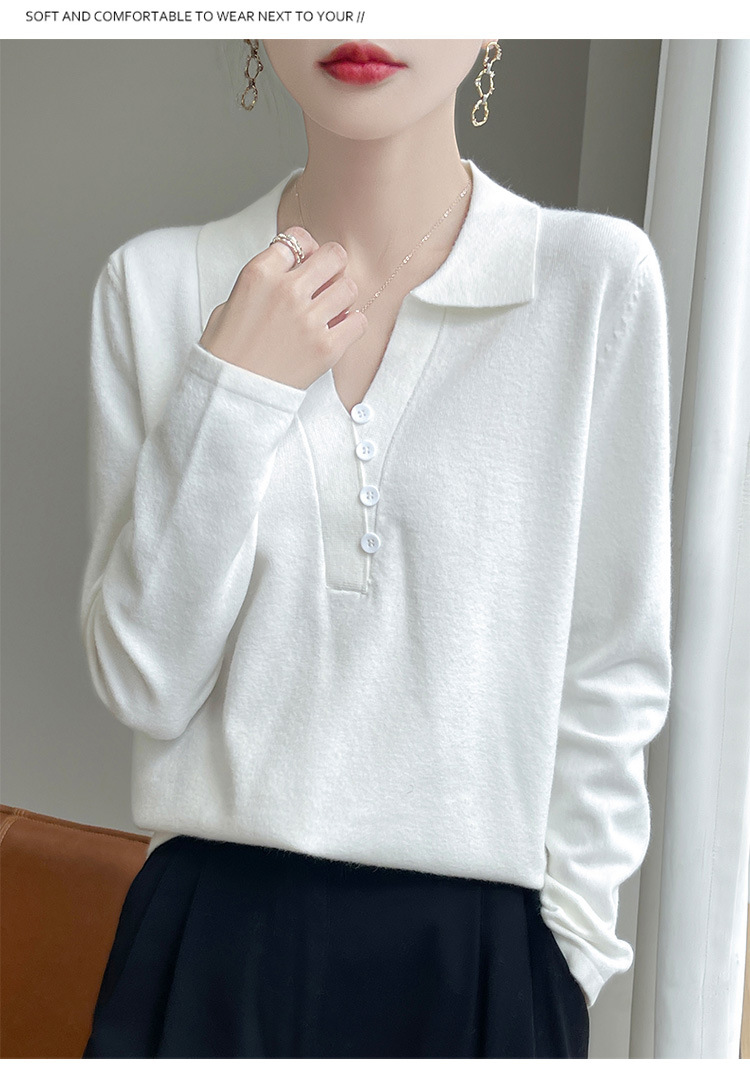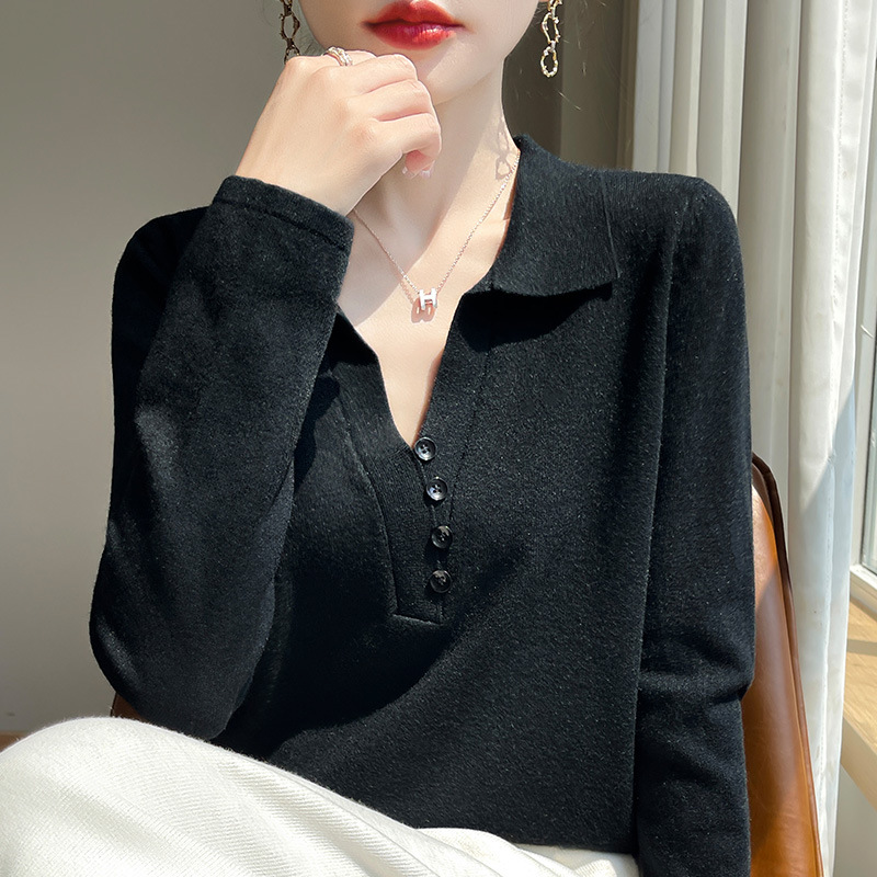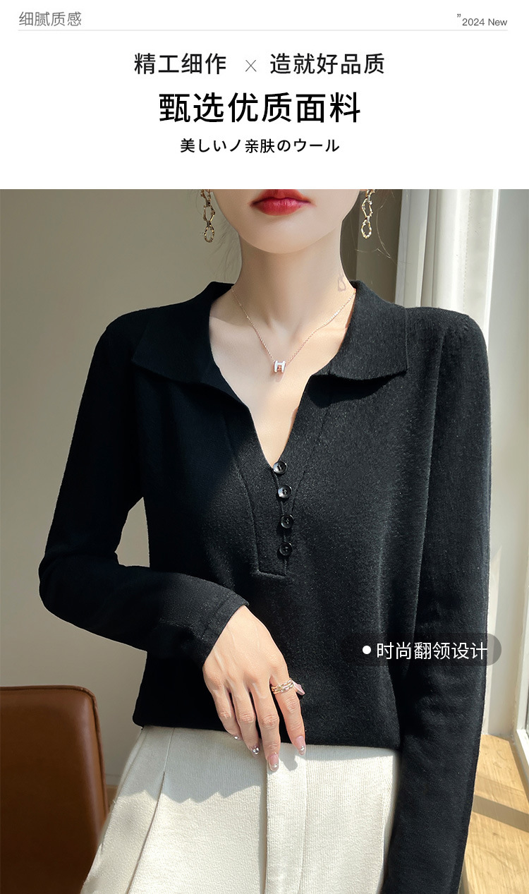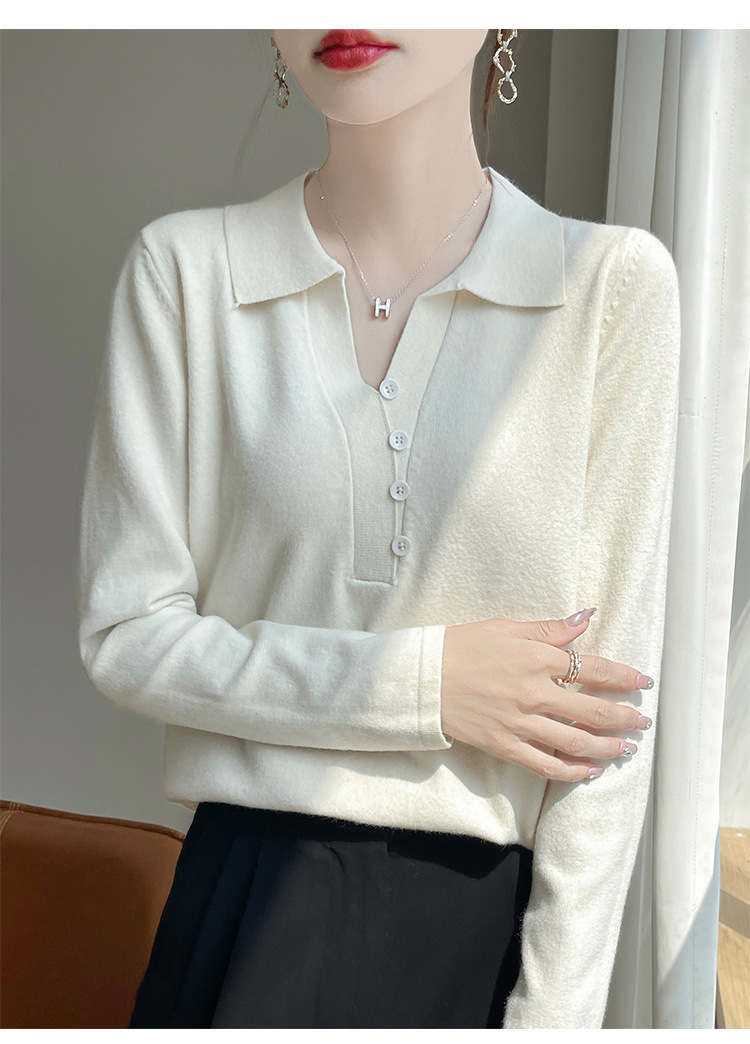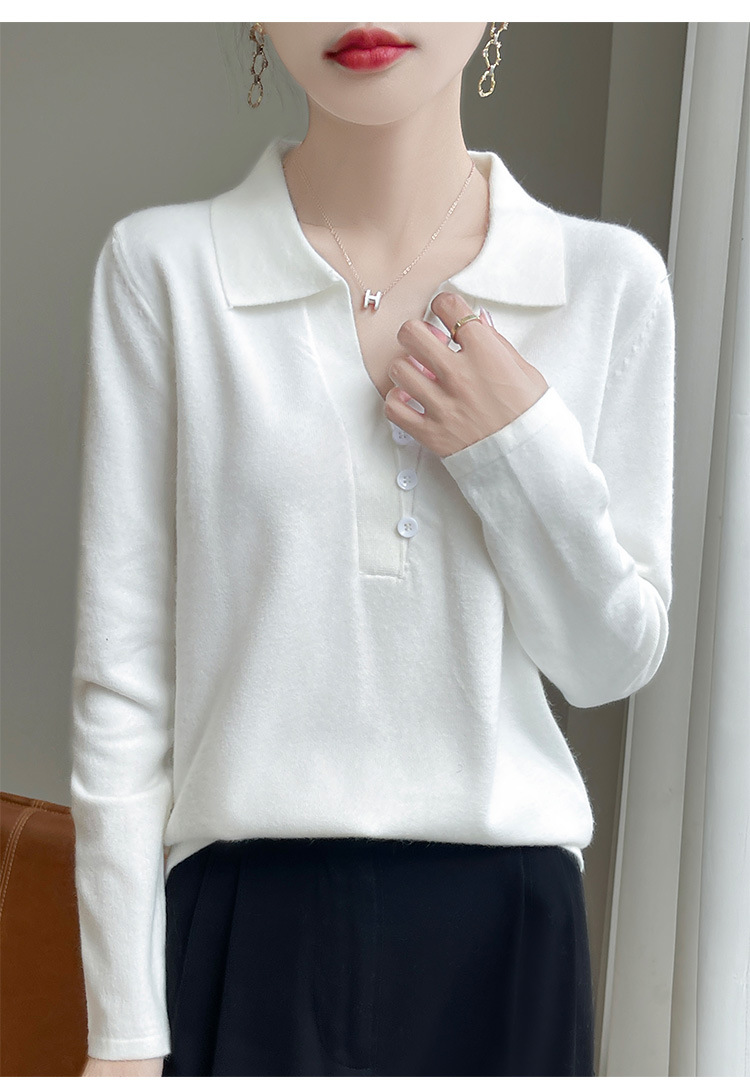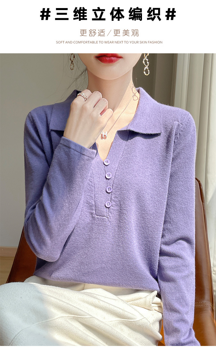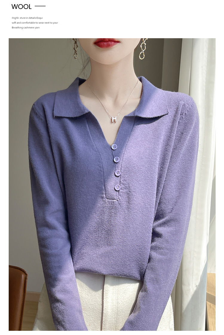 Новый 2024 осенний ветер темперамент Энди пуховой воротник POLO обычный свитер женский трикотаж