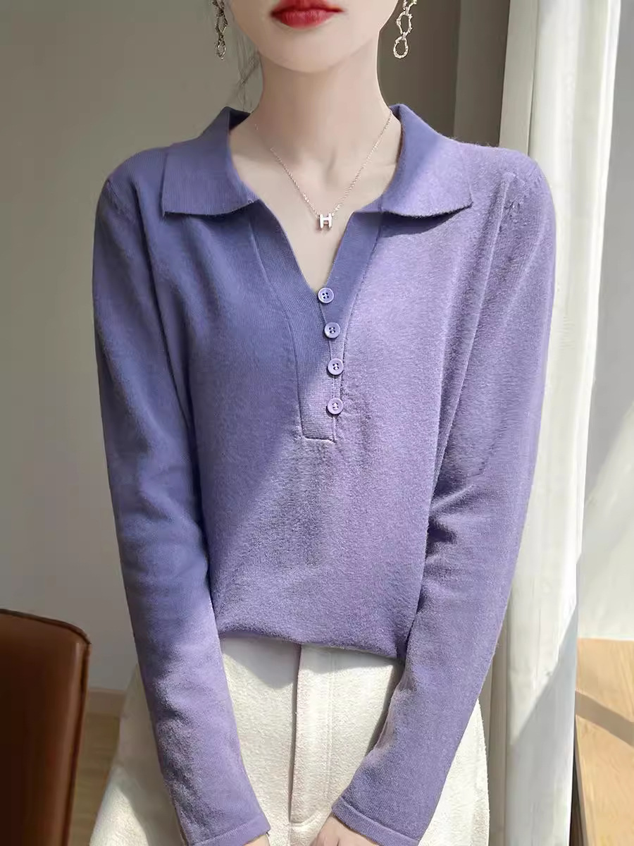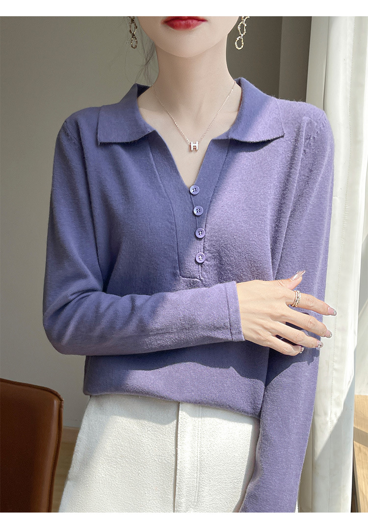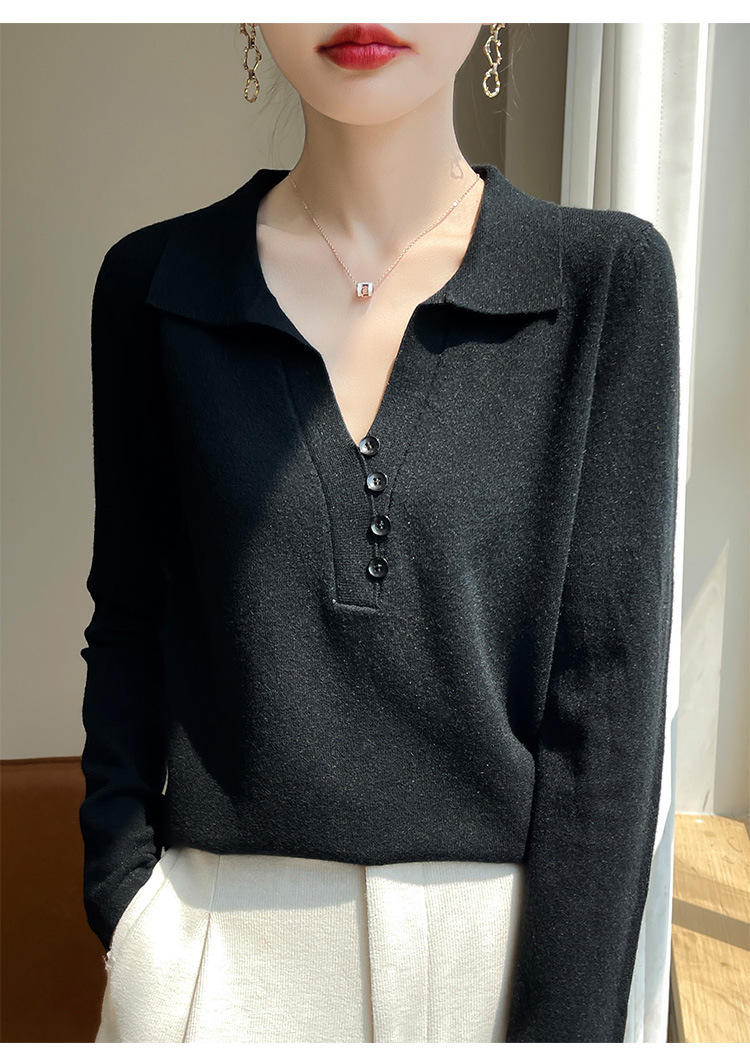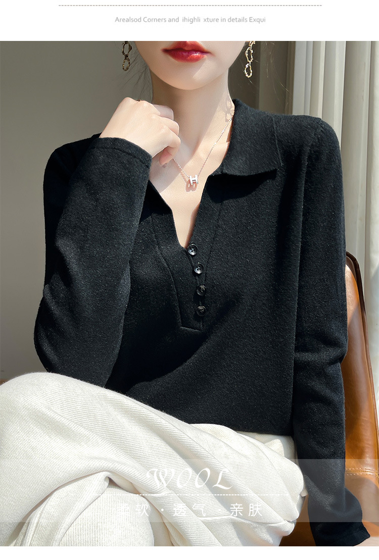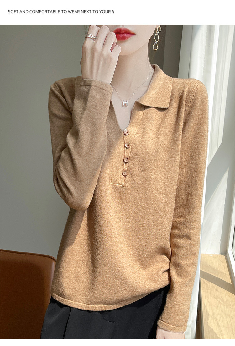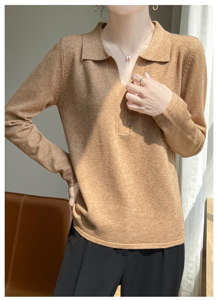 Новый 2024 осенний ветер темперамент Энди пуховой воротник POLO обычный свитер женский трикотаж