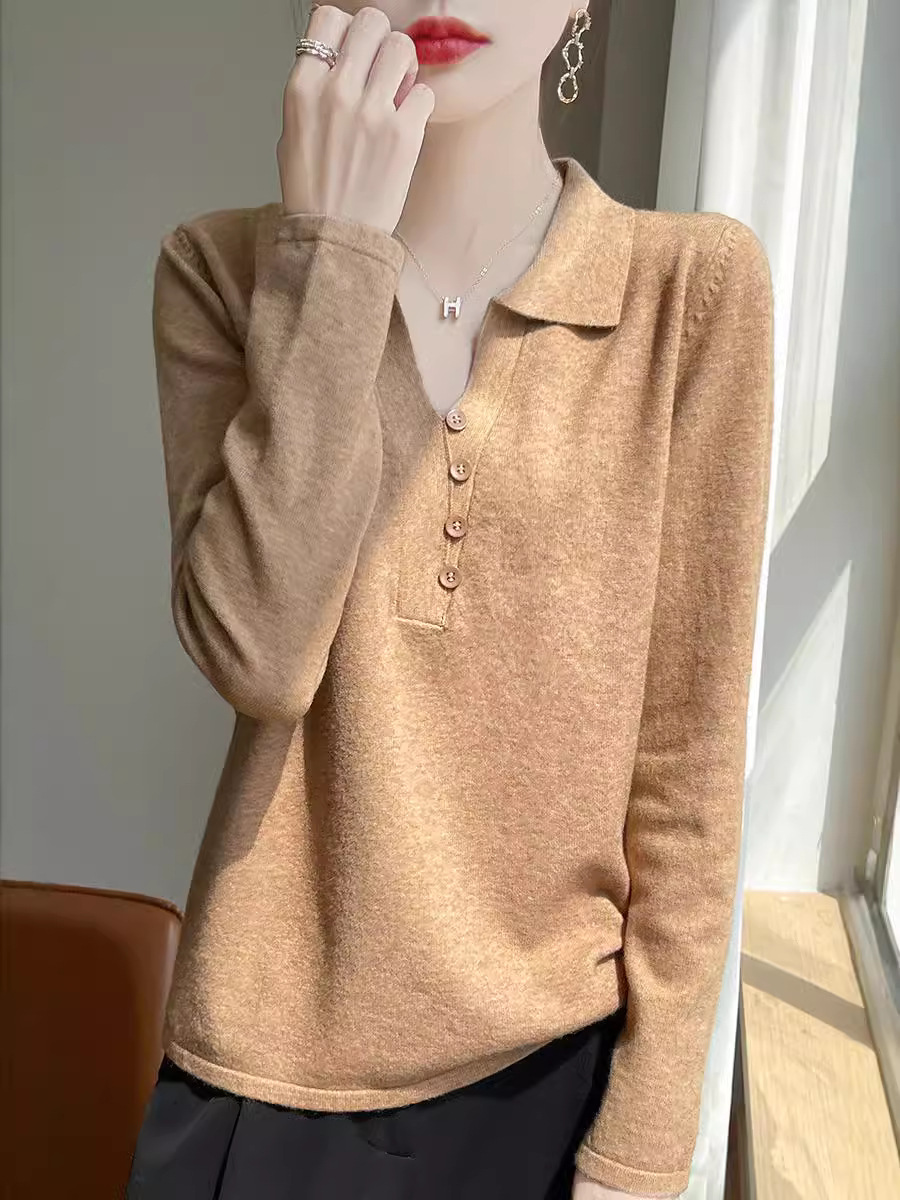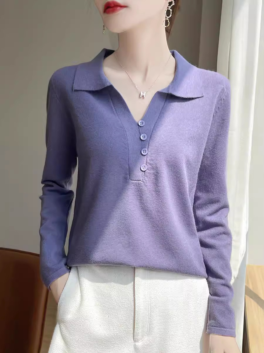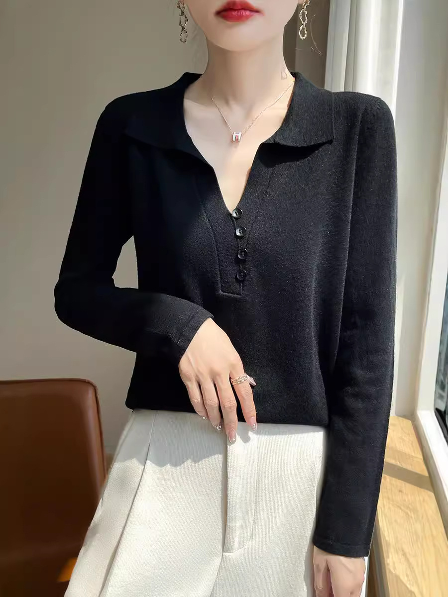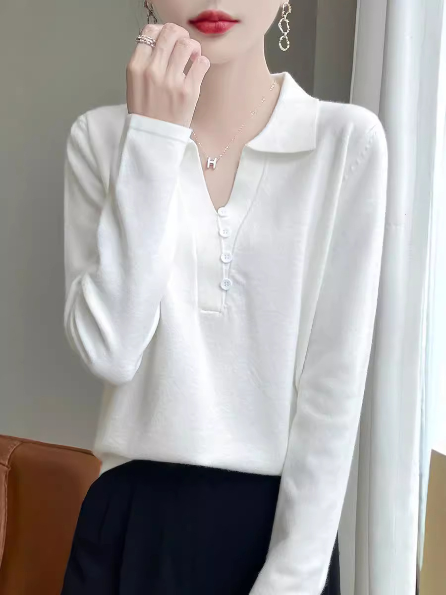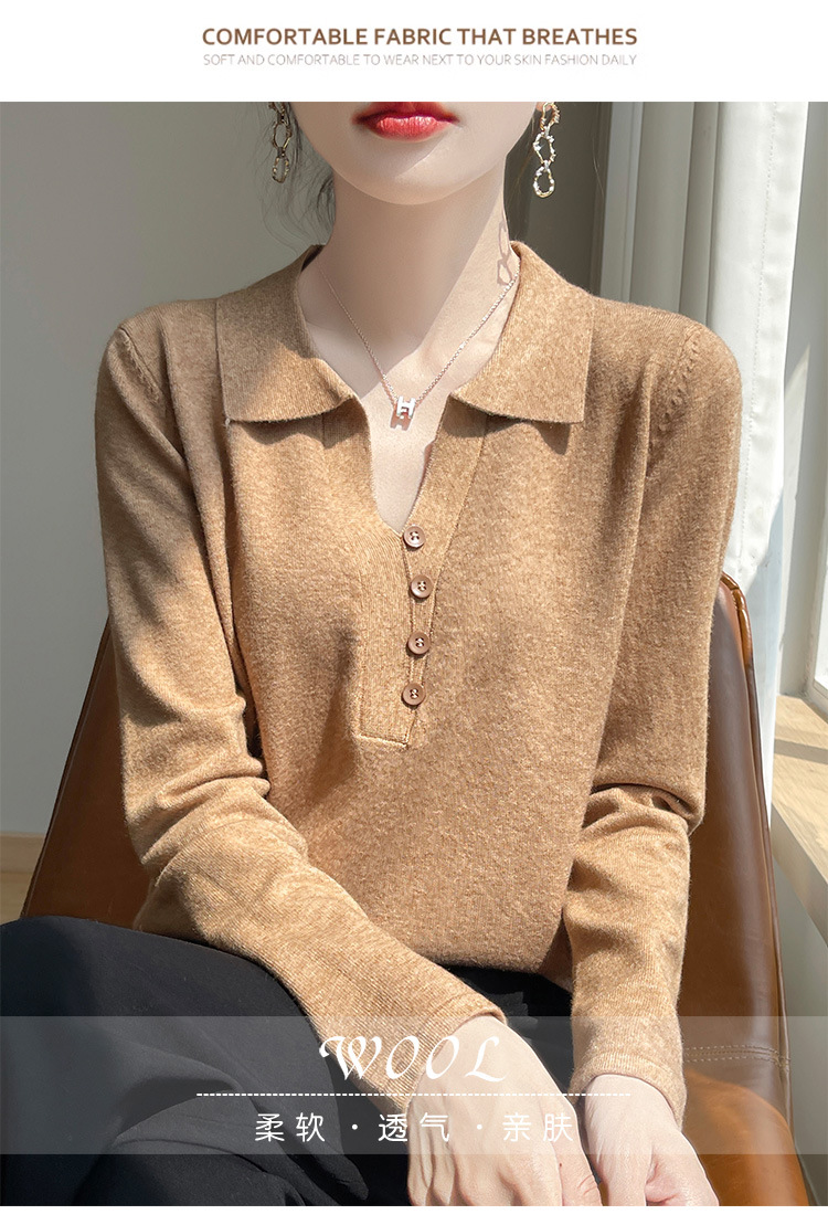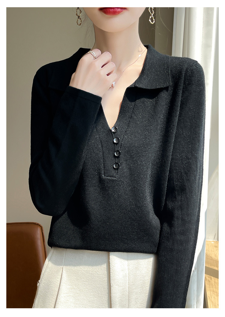 Новый 2024 осенний ветер темперамент Энди пуховой воротник POLO обычный свитер женский трикотаж