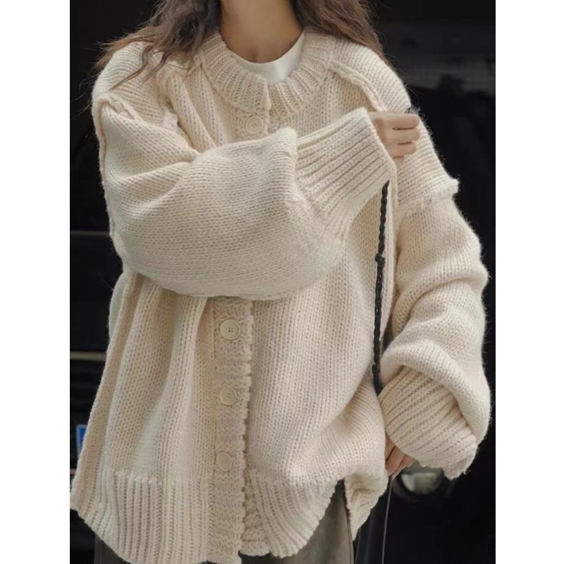 Ленивый ветер свитер кардиган куртка женский 2024 осень и зима новый нишевые средние и длинные топ трикотаж