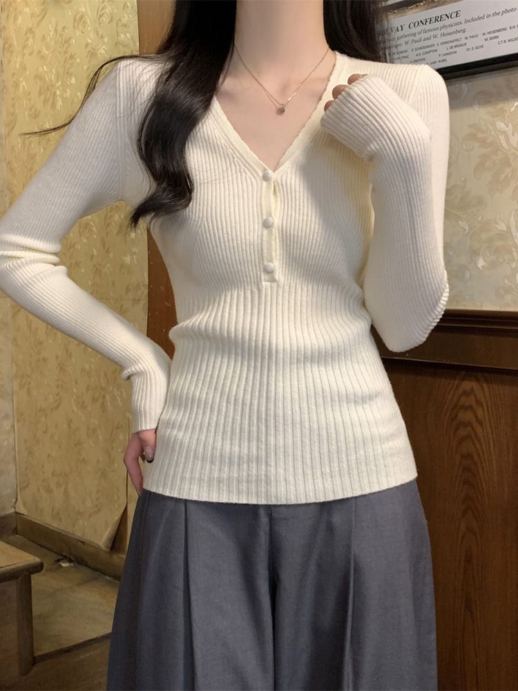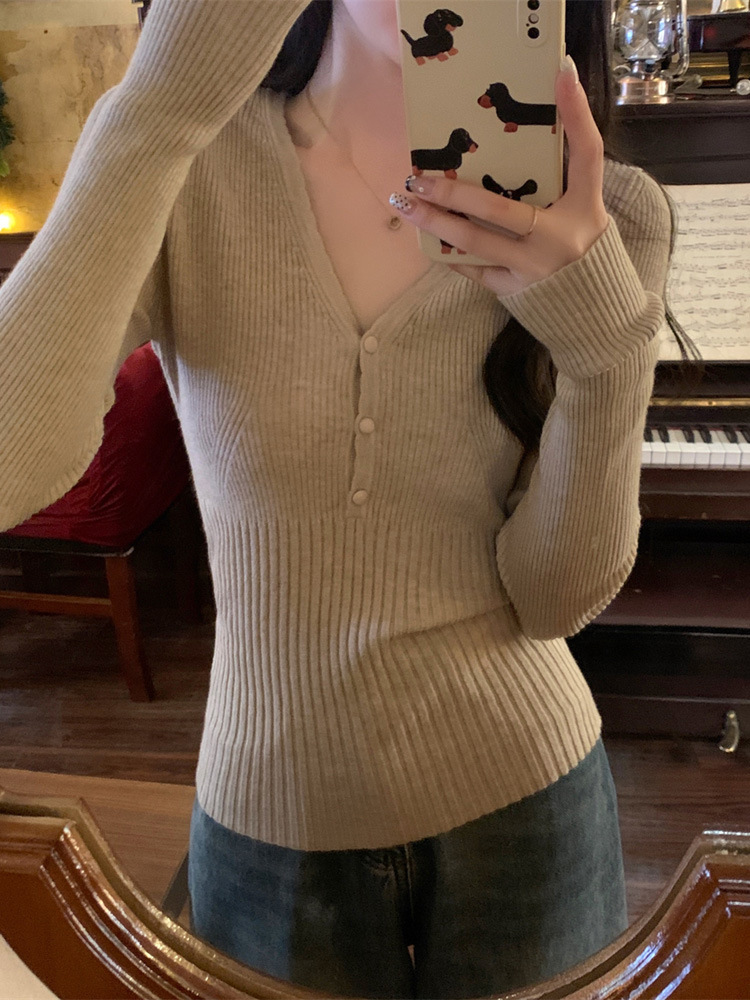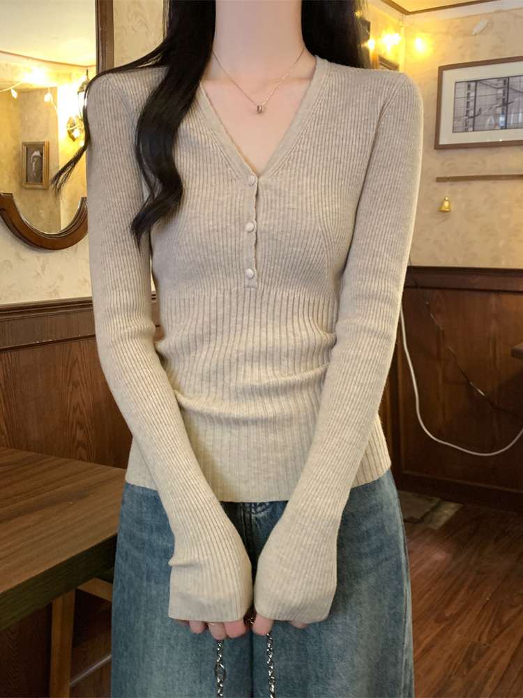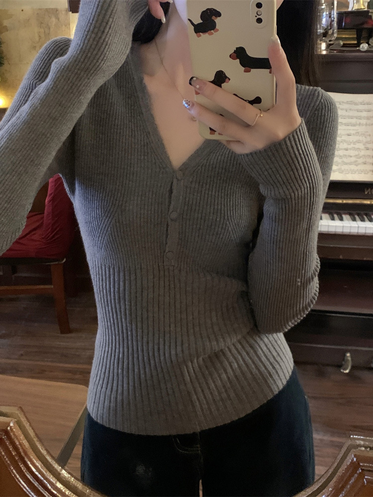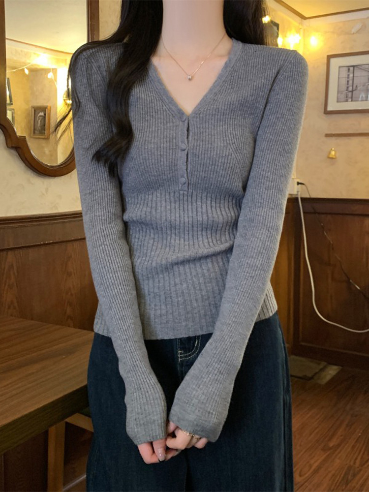 Серый свитер с v-образным вырезом нижний свитер женский 2025 новый весенний и осенний премиум тонкое чувство моды с длинными рукавами