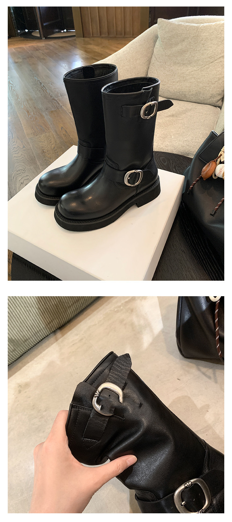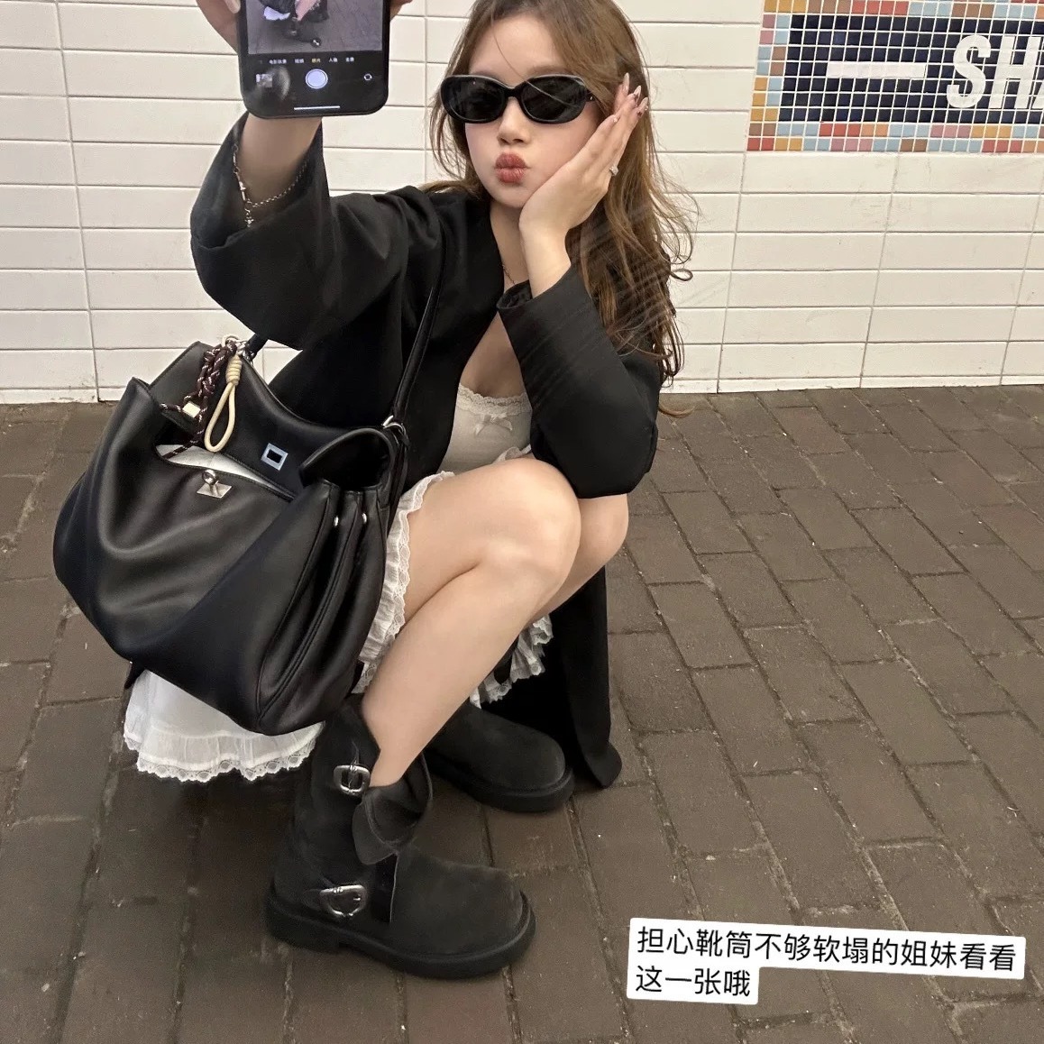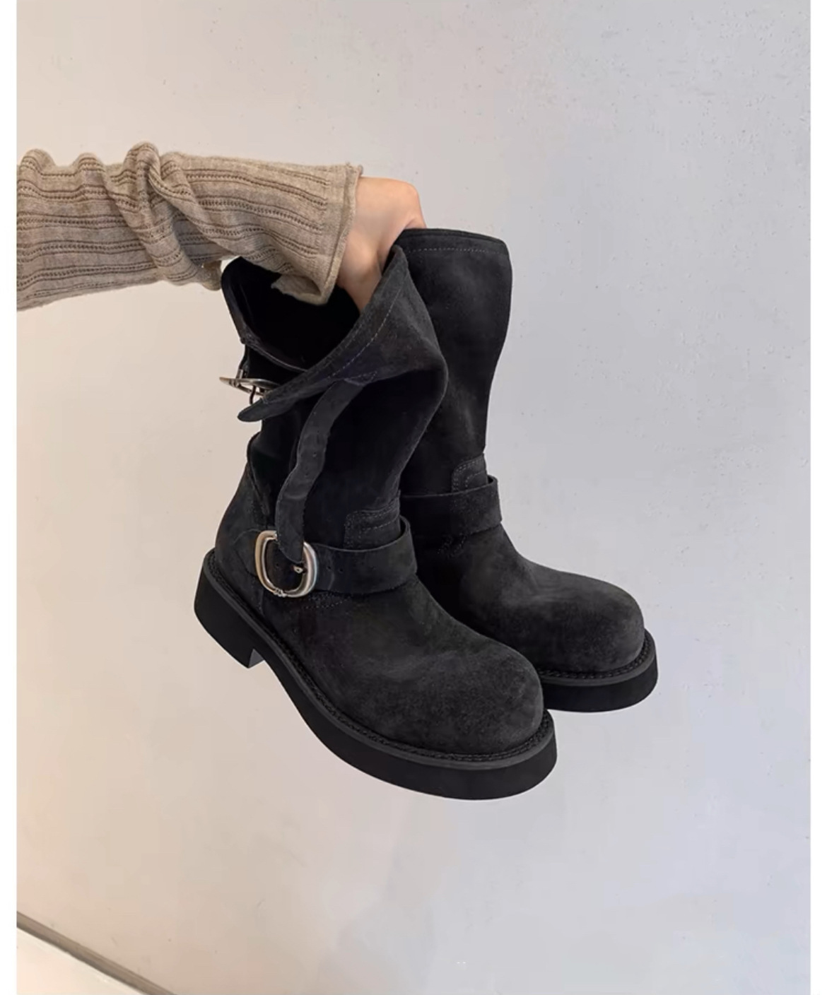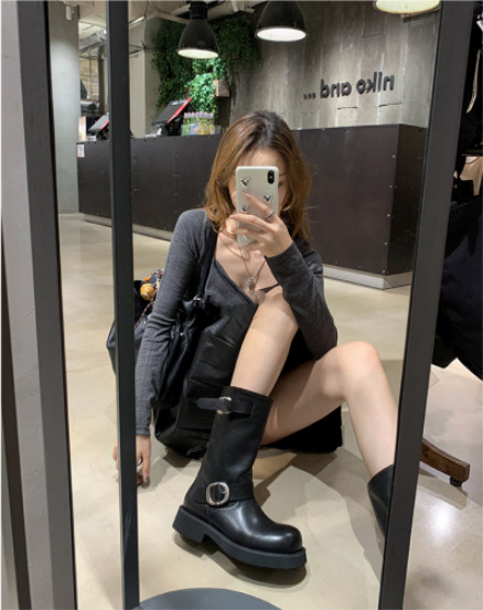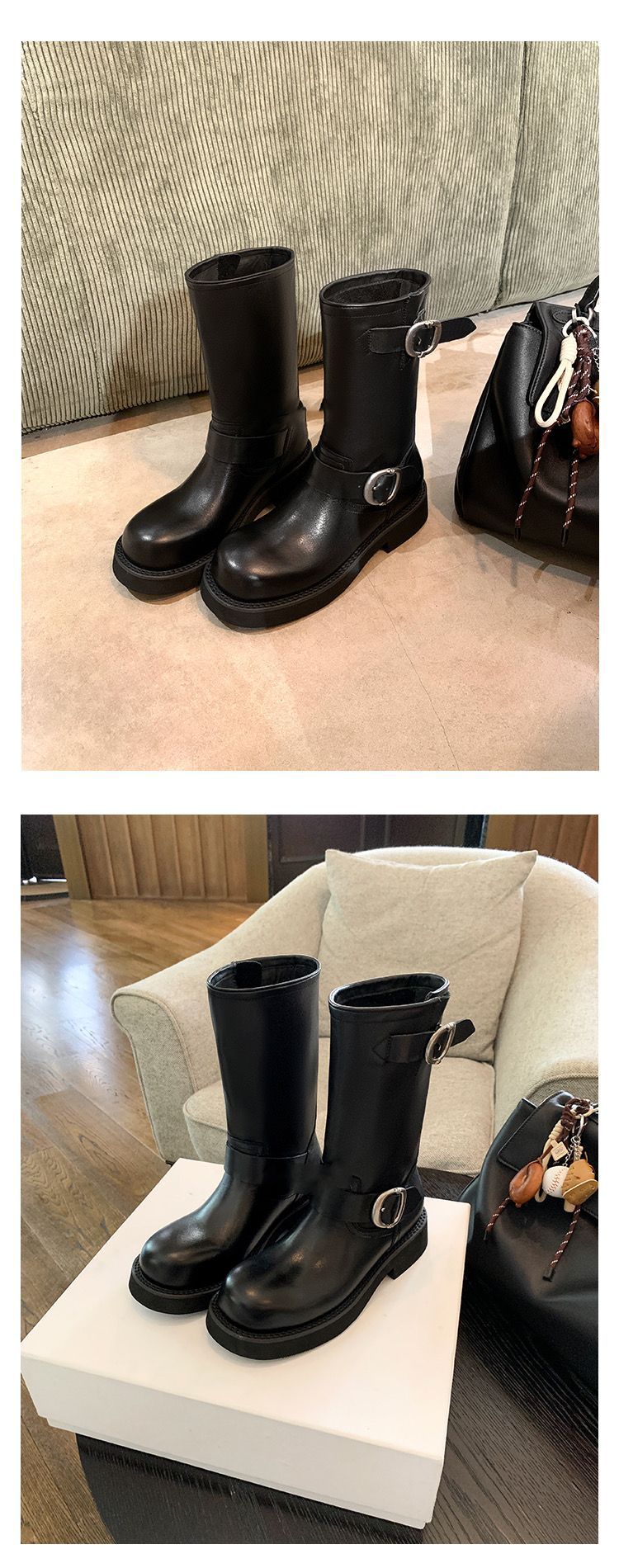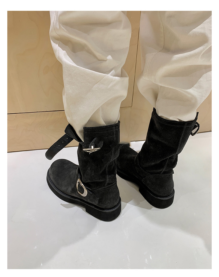 Судьба сапоги ~! INS толстая подошва увеличенный ремень пряжка с круглой головкой короткие сапоги женские мягкие кожаные сапоги Мартин куча сапоги западные сапоги