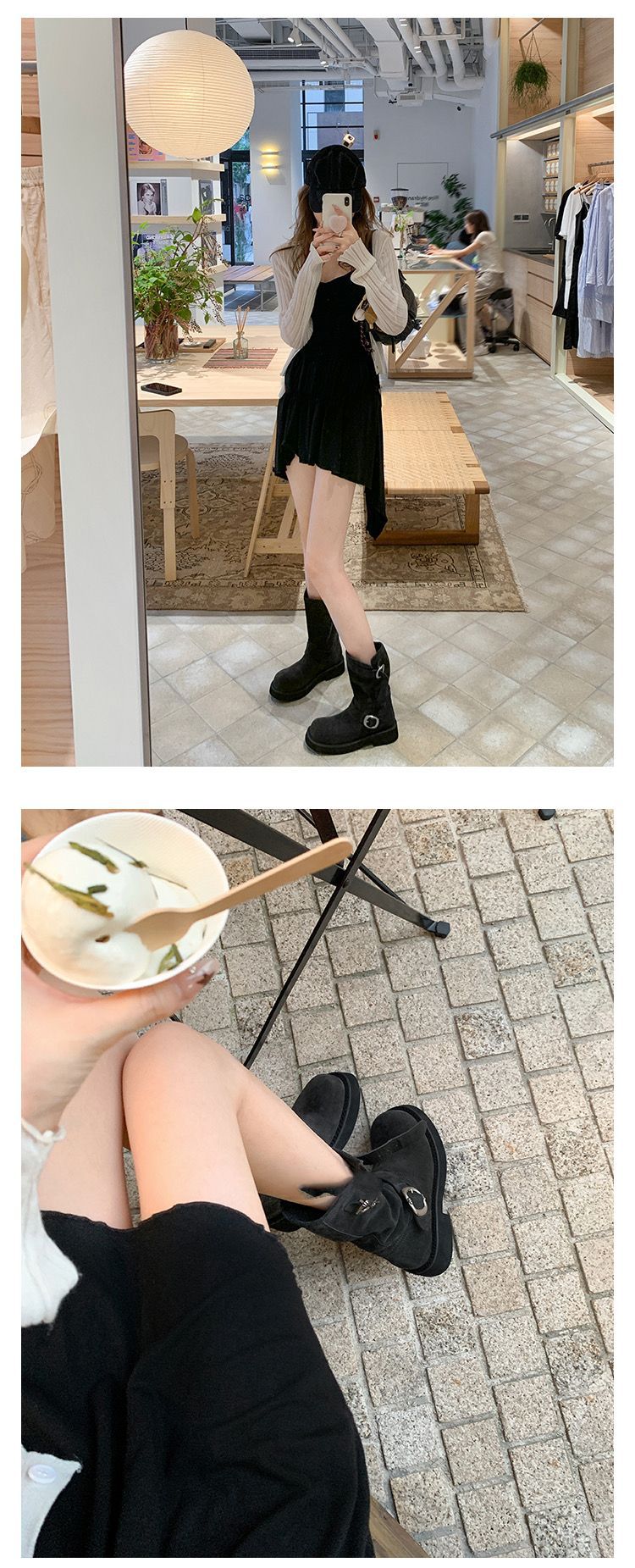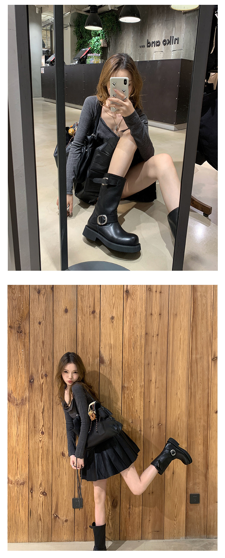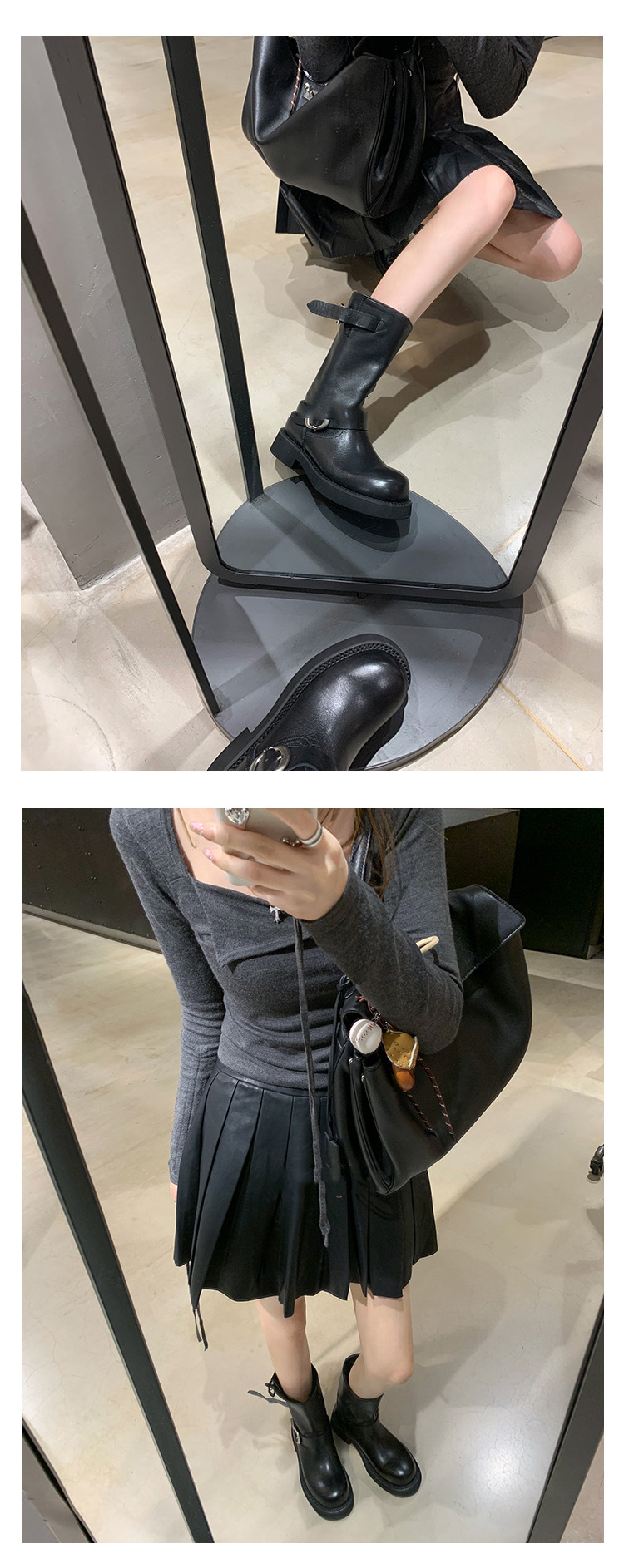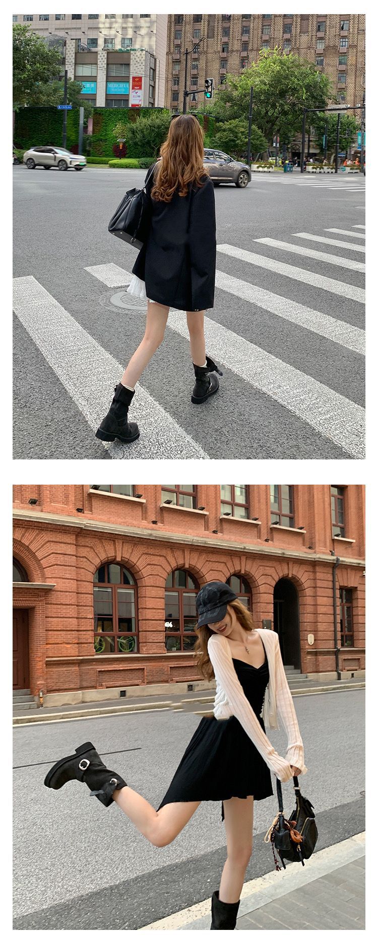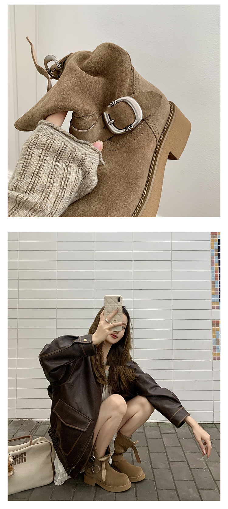 Судьба сапоги ~! INS толстая подошва увеличенный ремень пряжка с круглой головкой короткие сапоги женские мягкие кожаные сапоги Мартин куча сапоги западные сапоги