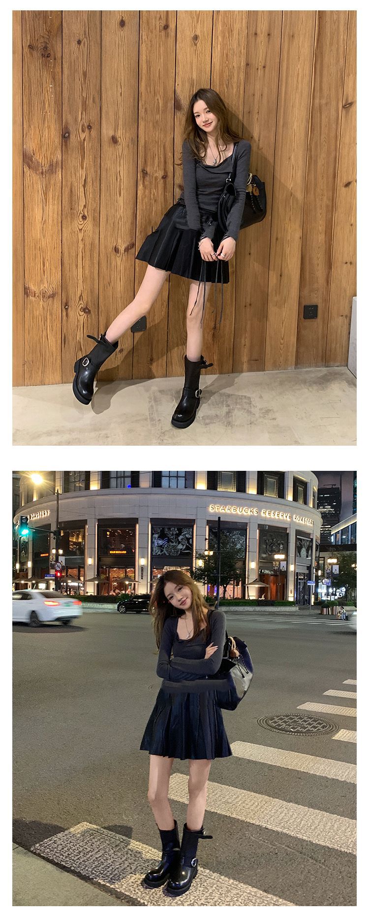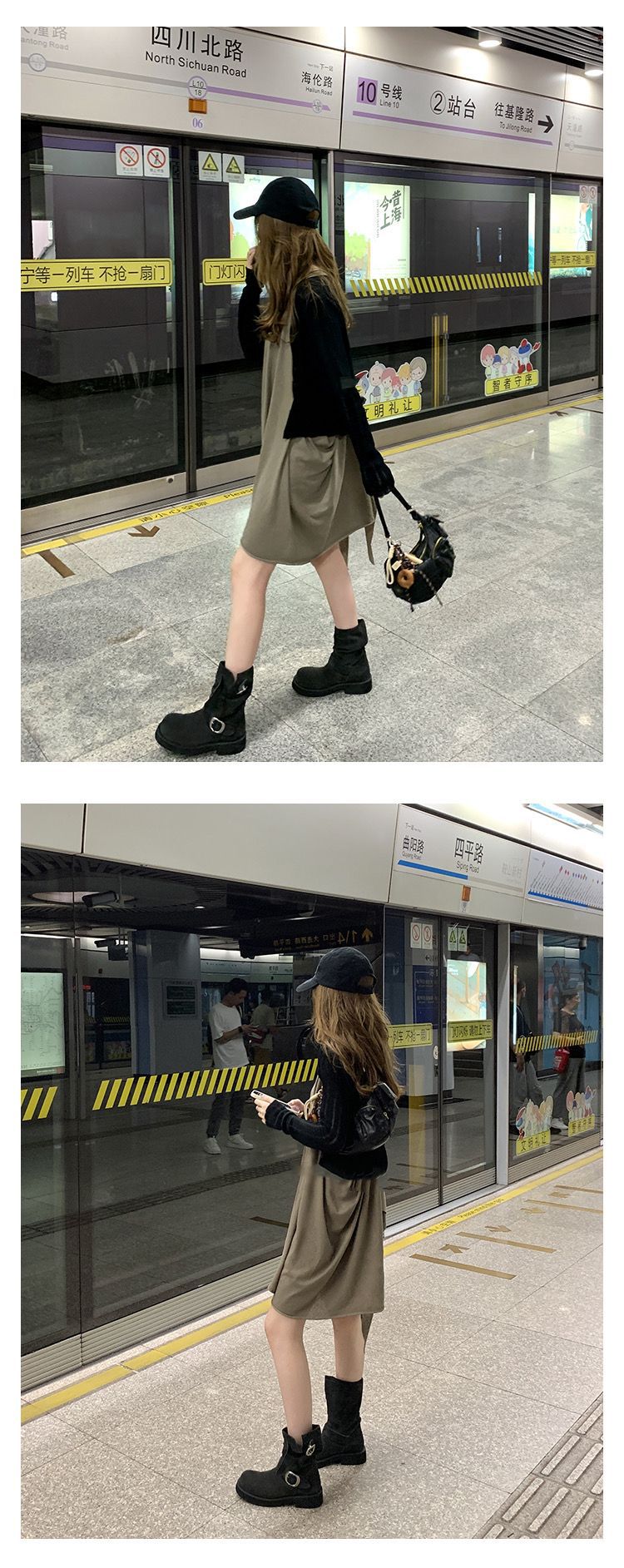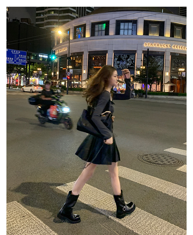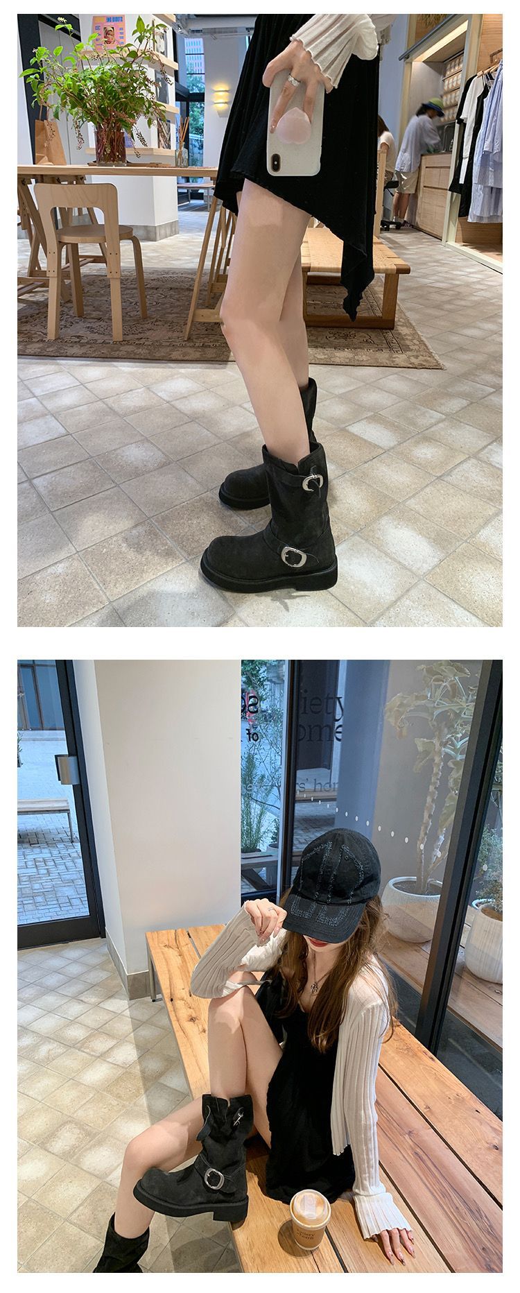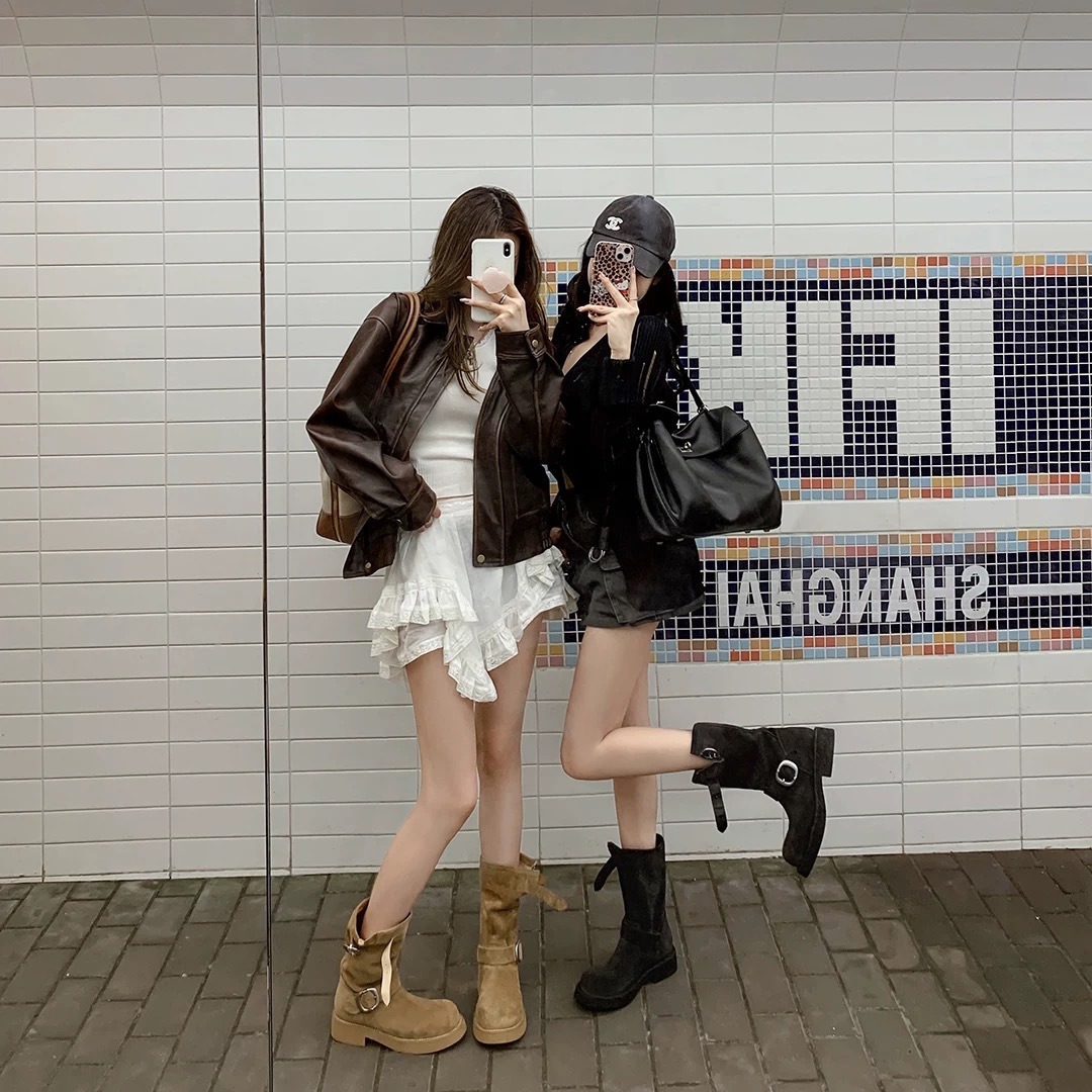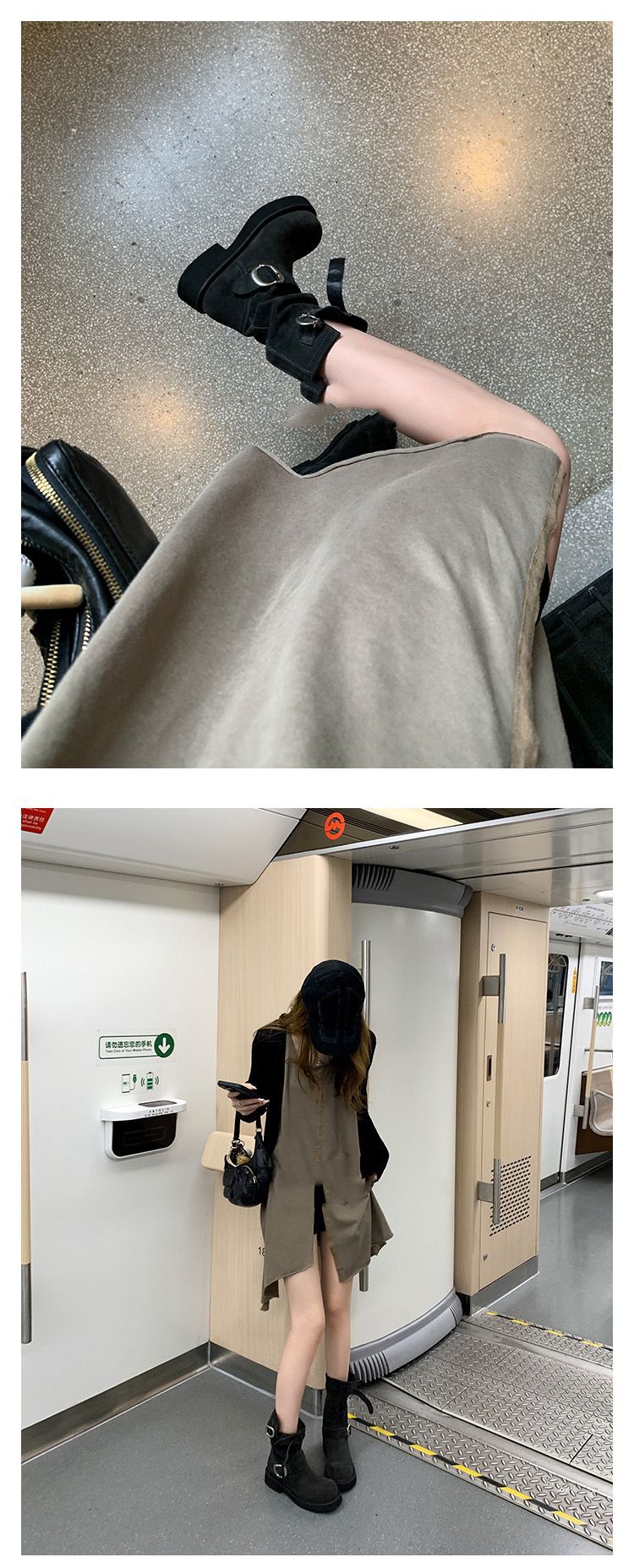 Судьба сапоги ~! INS толстая подошва увеличенный ремень пряжка с круглой головкой короткие сапоги женские мягкие кожаные сапоги Мартин куча сапоги западные сапоги