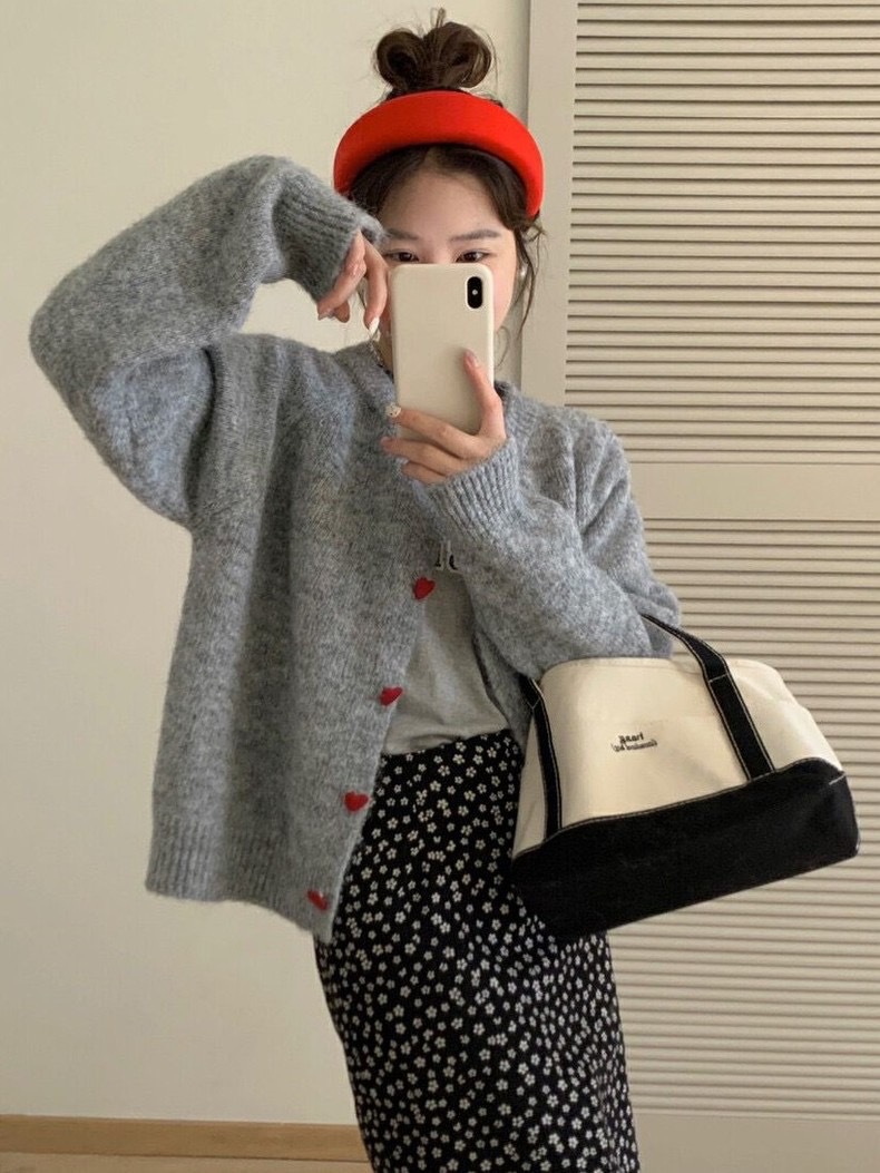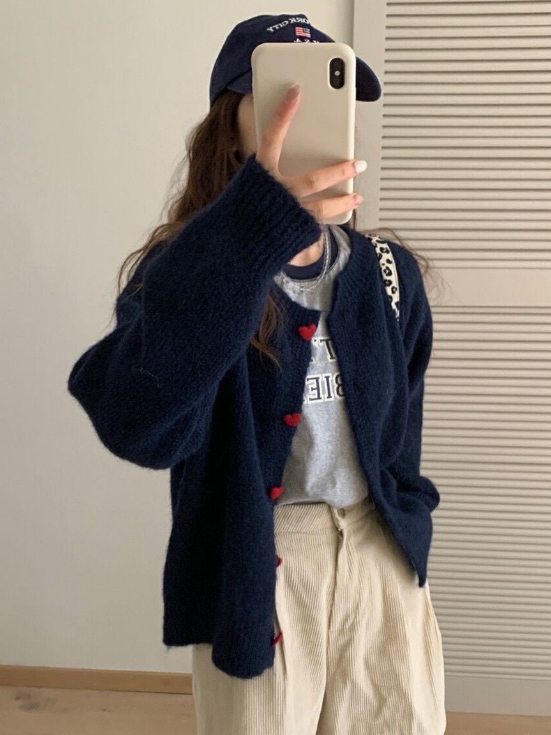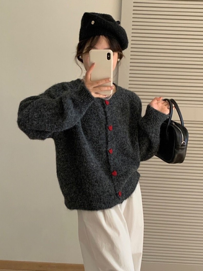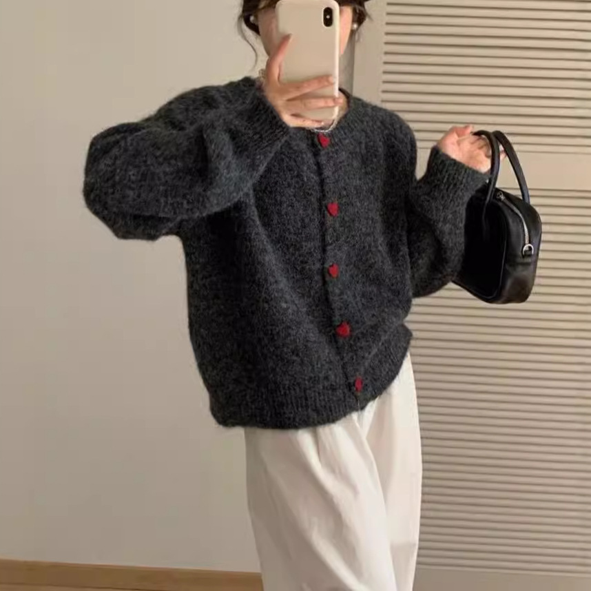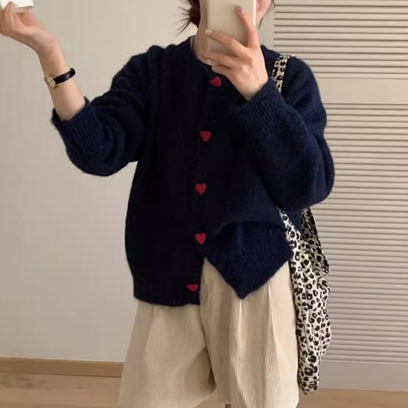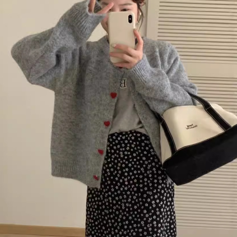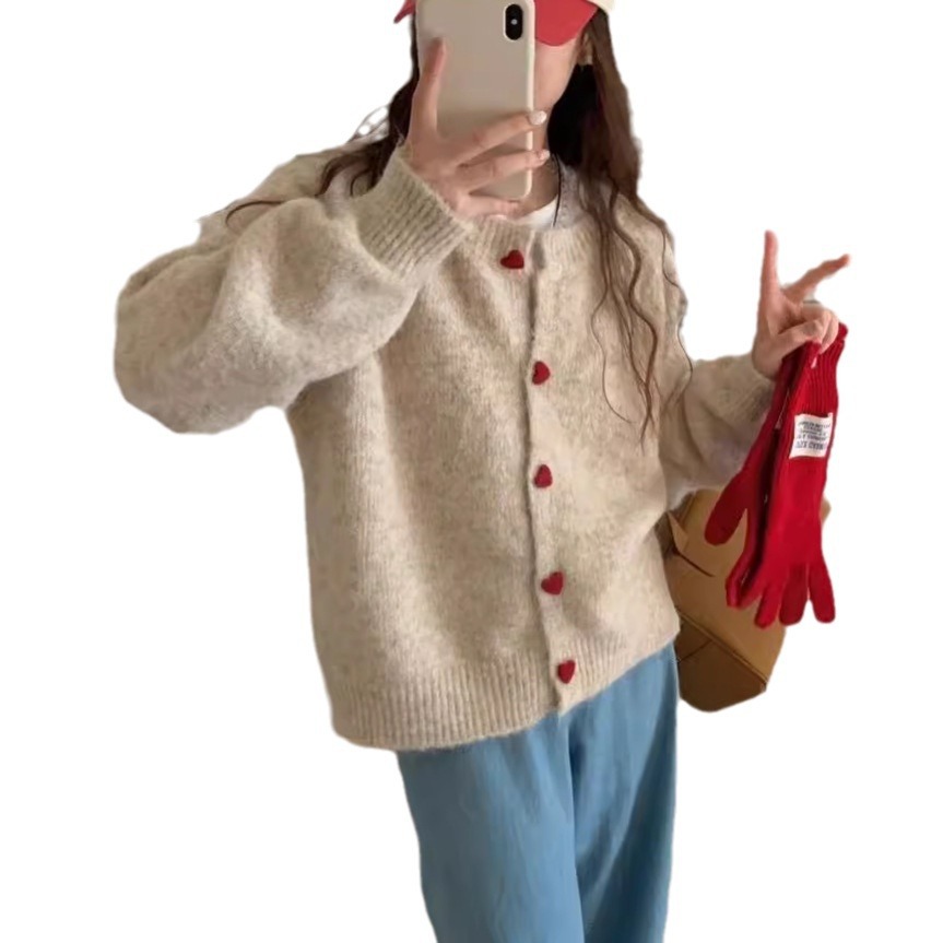 2024 осень и зима новая корейская любовь пряжка трикотажный кардиган женский ленивый ветер сладкий свитер минус пиджак