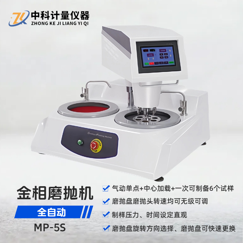 MP-5S为双盘台式自动金相试样磨抛机,是我公司依据国际标准制造的新一代高精度、制样过程自动化的研磨抛光设备。适用于对金相试样自动粗磨、精磨、粗抛光、精抛光,是用户用来制备金相试样=的设备。本机采用微处理器控制系统,具有气动中心力加载和和单点加载任意切换功能,并配有专用多试样夹持器;还可实现磨抛盘、磨抛头无级调速,以及磨抛载荷、磨抛时间、磨抛盘转向的任意设定;本机内置数据库,用户可以存储常用的10个磨抛工艺参数,以便随时调用,减少每次调整参数的烦恼。本机带有冷却装置,可以在磨抛时对试样进行冷却,以防止因试样过热而破坏金相组织。