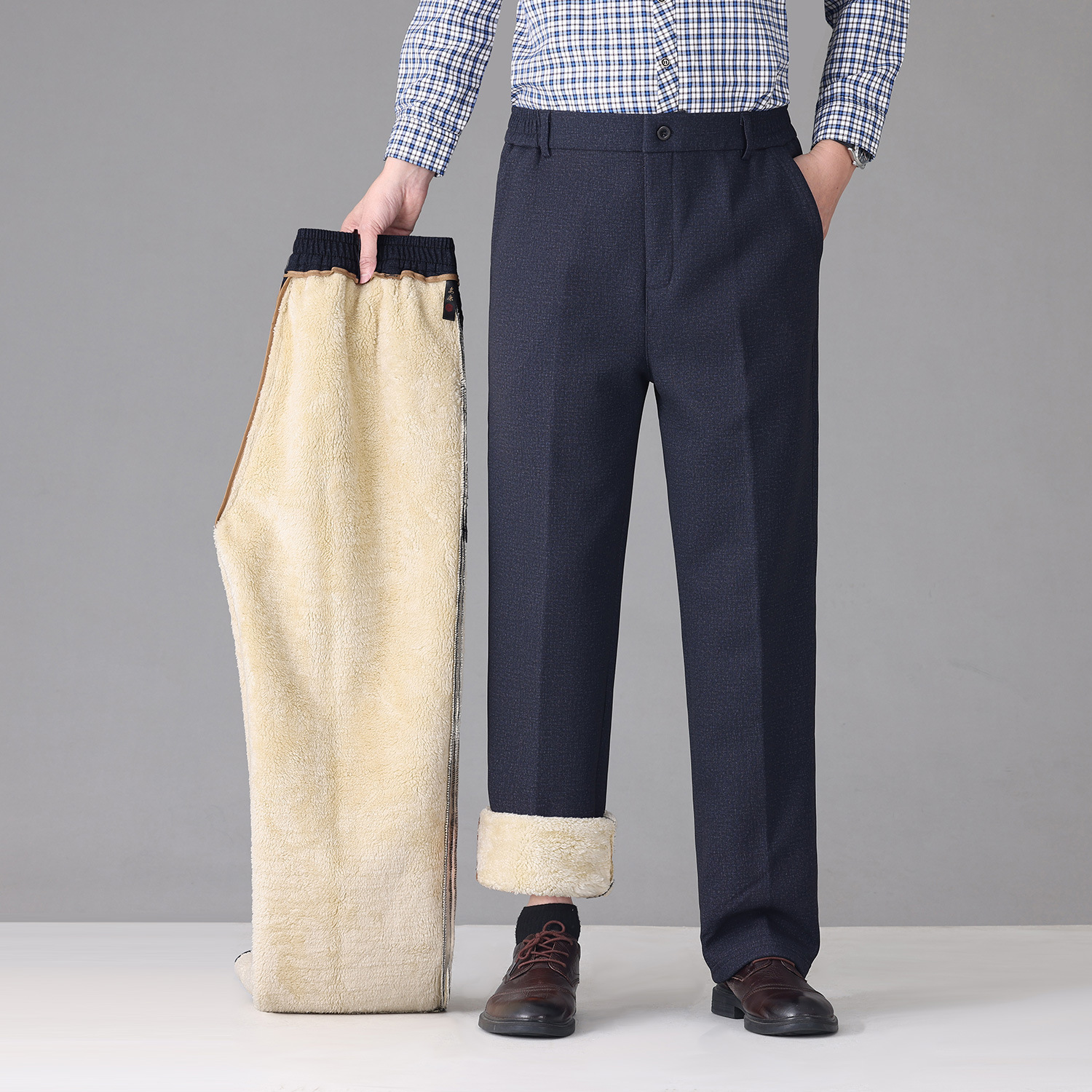 Утепленные зимние хлопковые брюки для мужчин среднего и старшего возраста, термобрюки для пожилых, брюки с высокой талией и глубоким вырезом, защищающие поясницу и утепленные для сохранения тепла.