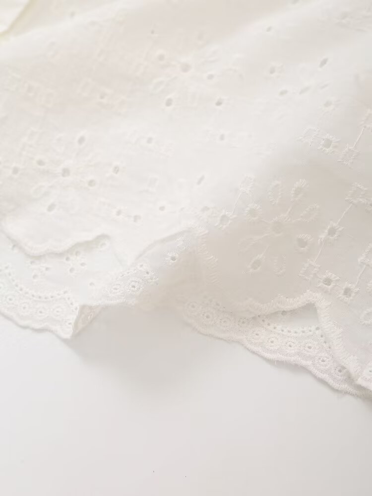 2024 Трансграничная трансграничная оптовая продажа 2024 Летняя новая европейская и американская мода женская одежда французская отворот свободная вышивка
