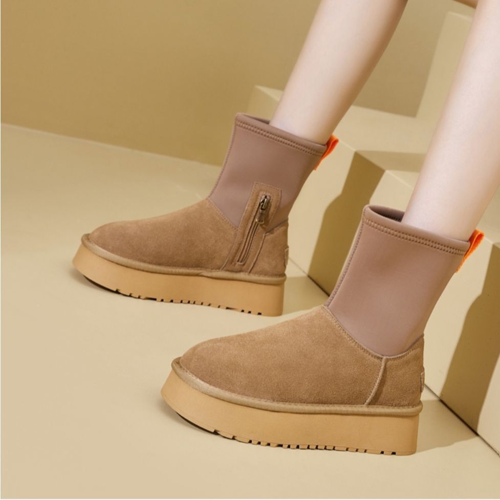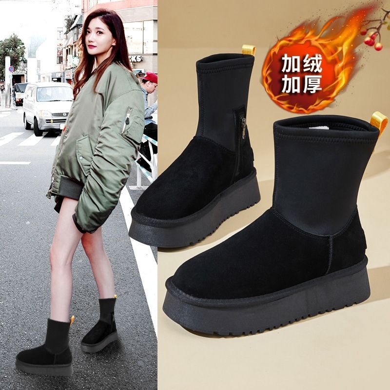 Снежные сапоги женский 2024 осень-зима новая мода простой и универсальный плюс бархатная теплая толстая подошва нескользящая повседневная хлопчатобумажная обувь