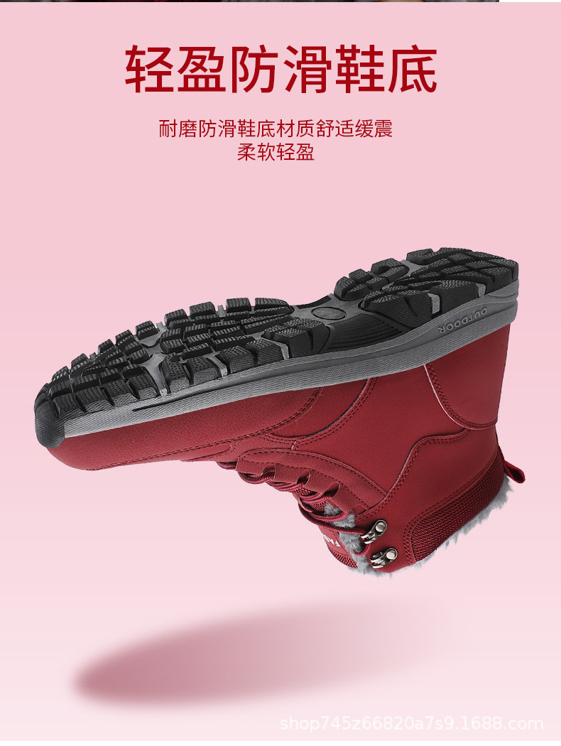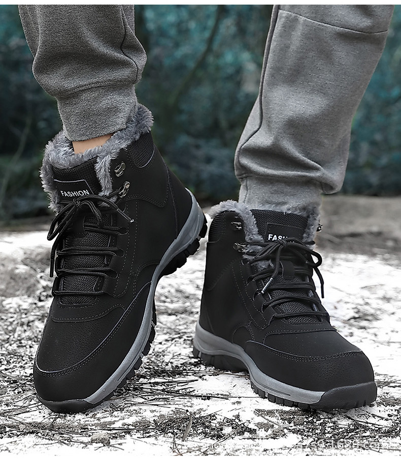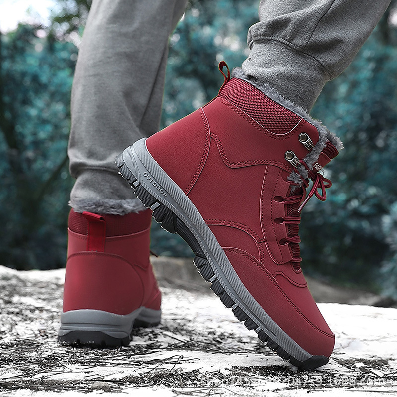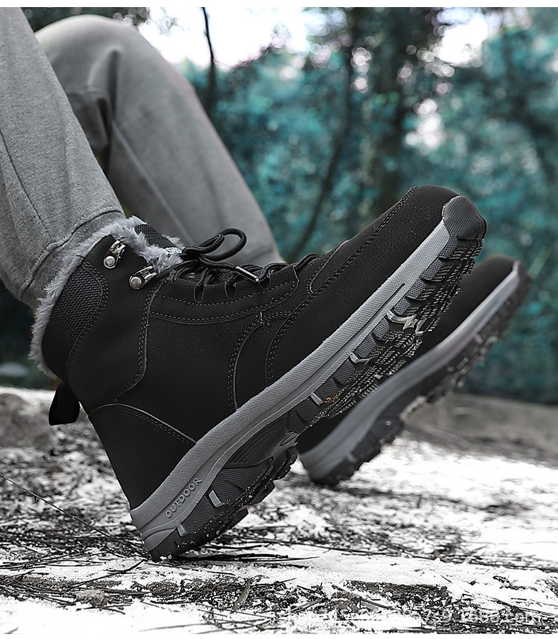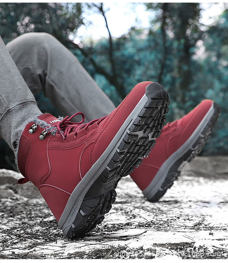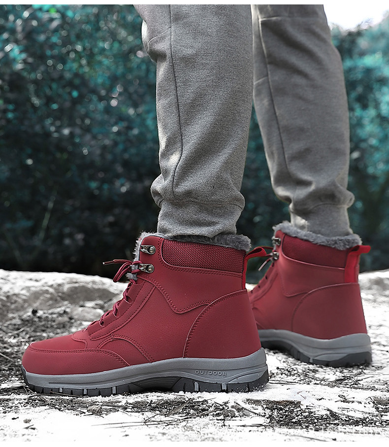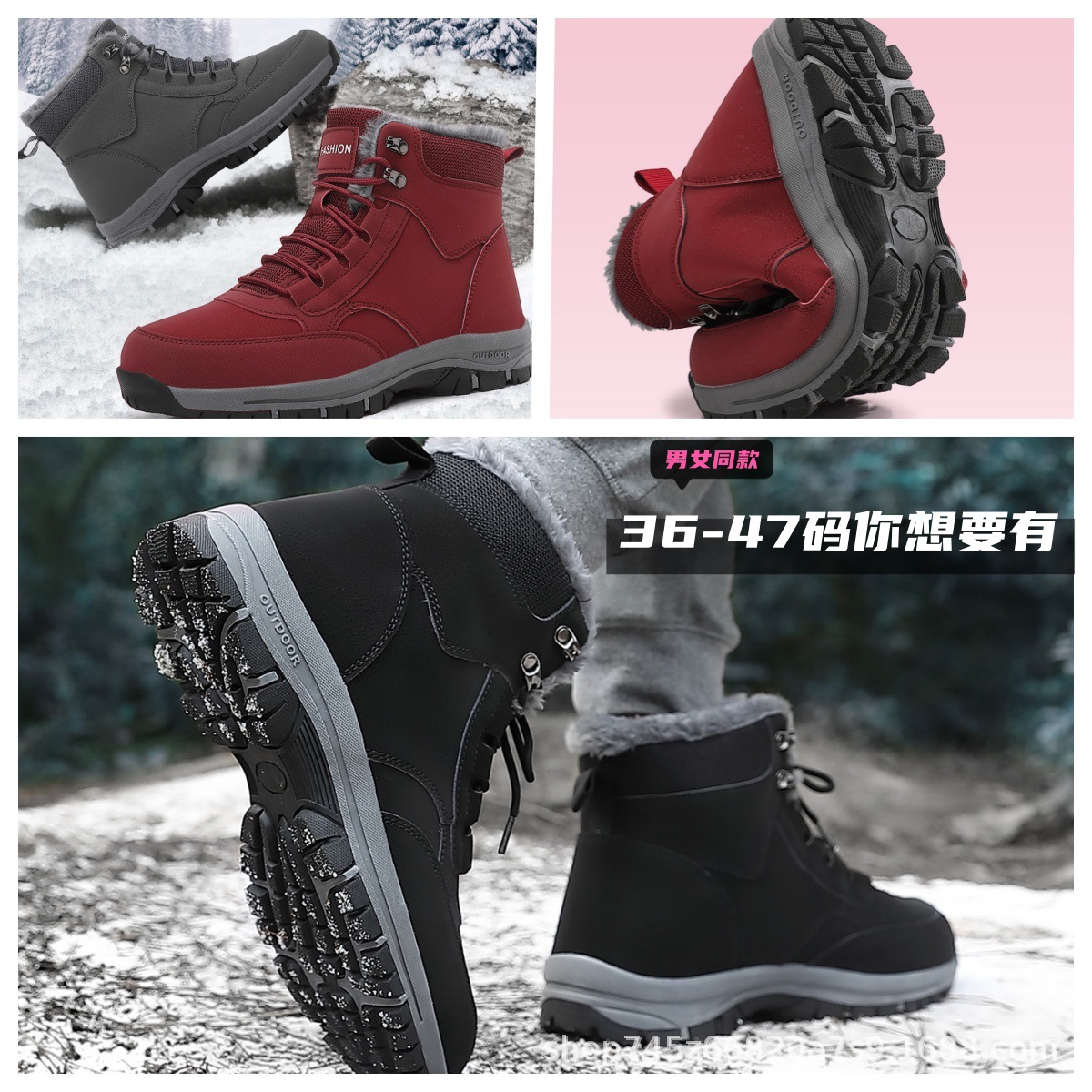 Утепленные флисом высокие хлопковые ботинки для пар 2025 года, уличные зимние сапоги большого размера для активного отдыха, нескользящие, утолщенные, теплые, универсальные походные ботинки