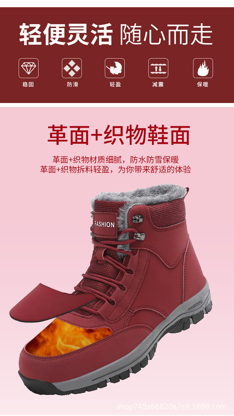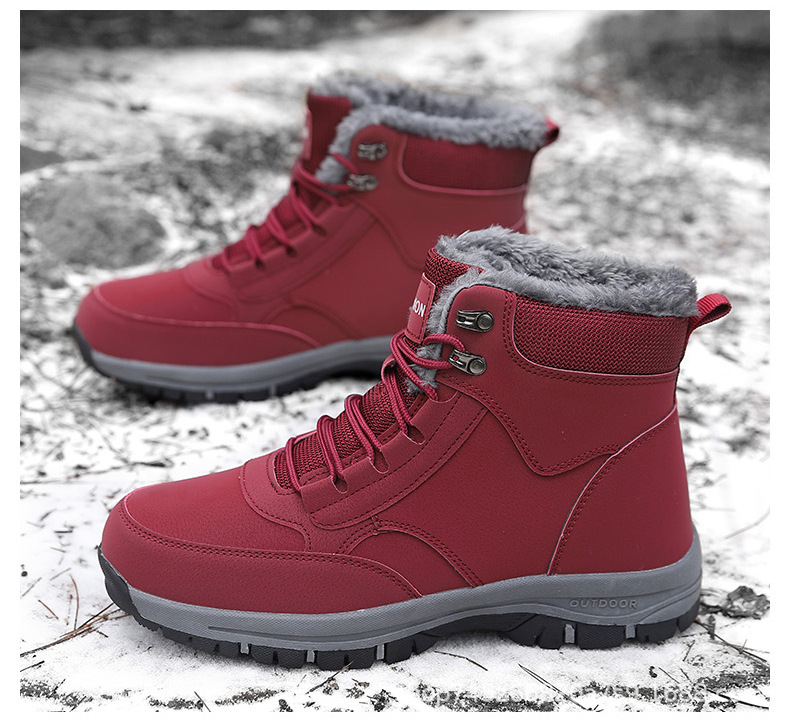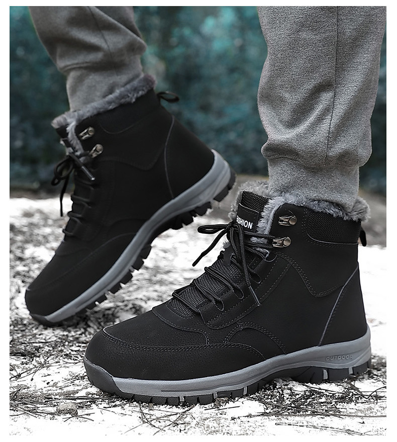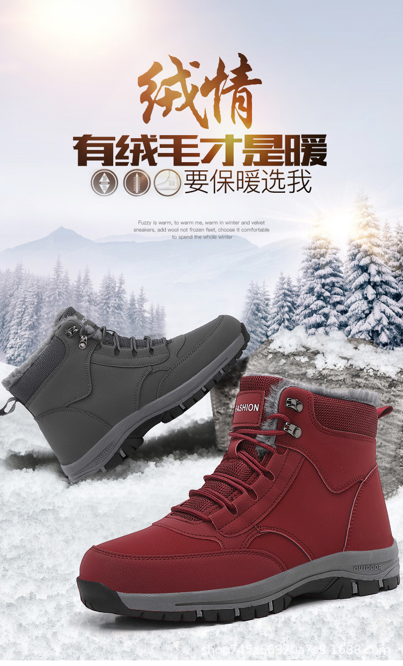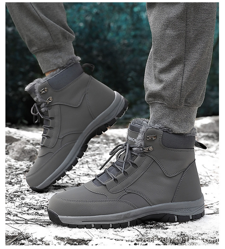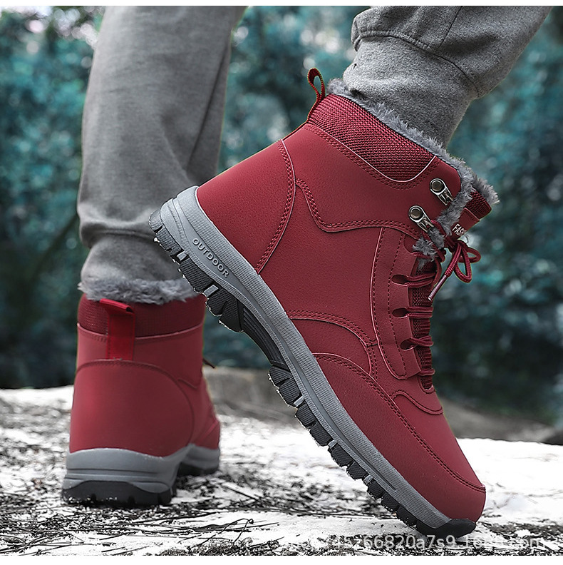 Утепленные флисом высокие хлопковые ботинки для пар 2025 года, уличные зимние сапоги большого размера для активного отдыха, нескользящие, утолщенные, теплые, универсальные походные ботинки
