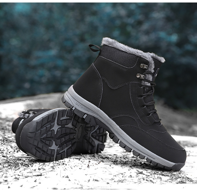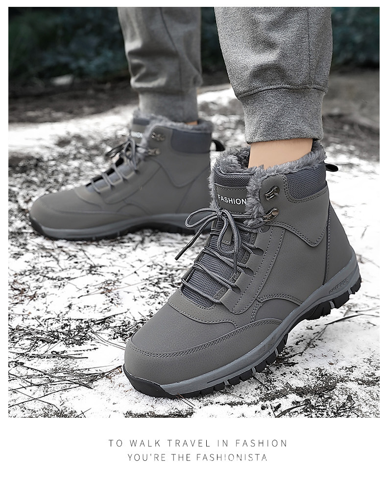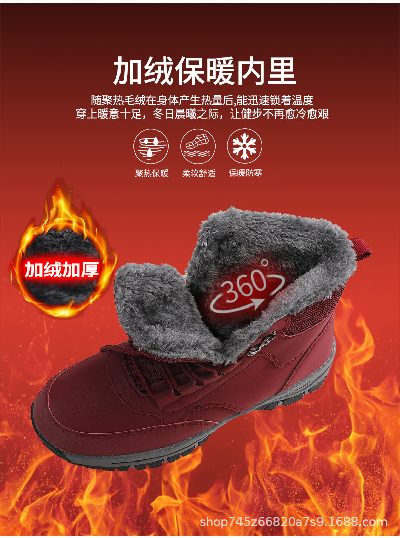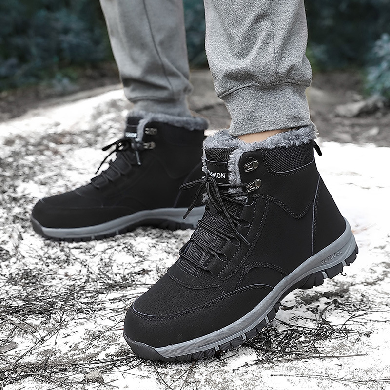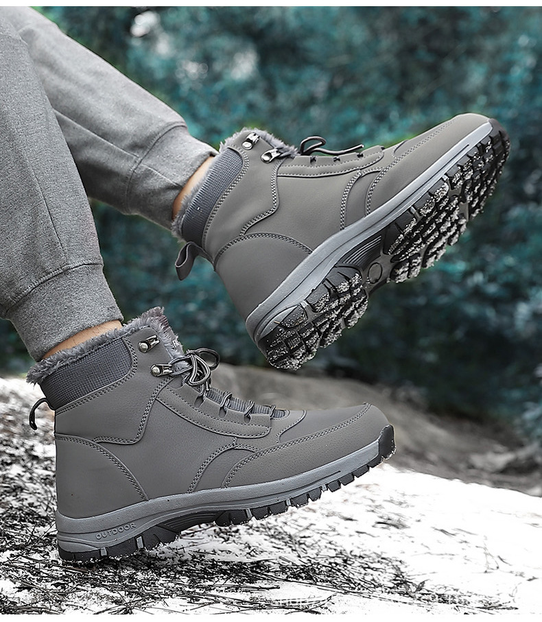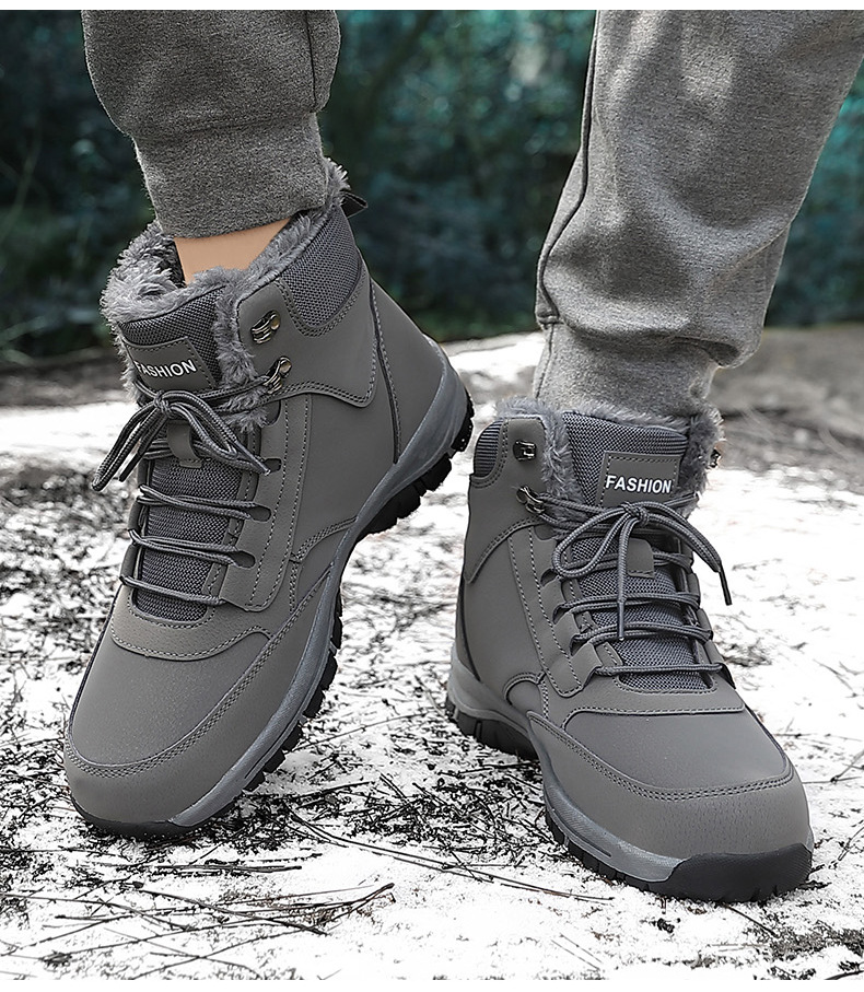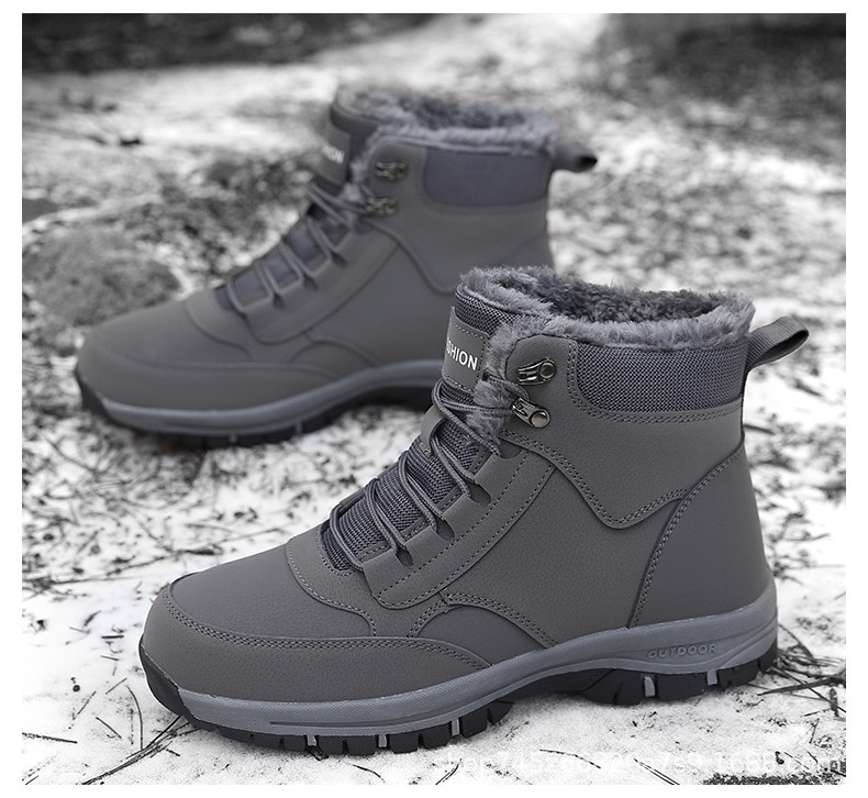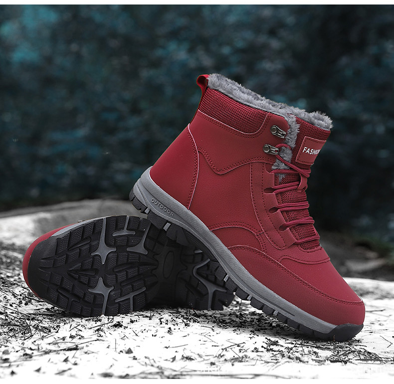Утепленные флисом высокие хлопковые ботинки для пар 2025 года, уличные зимние сапоги большого размера для активного отдыха, нескользящие, утолщенные, теплые, универсальные походные ботинки