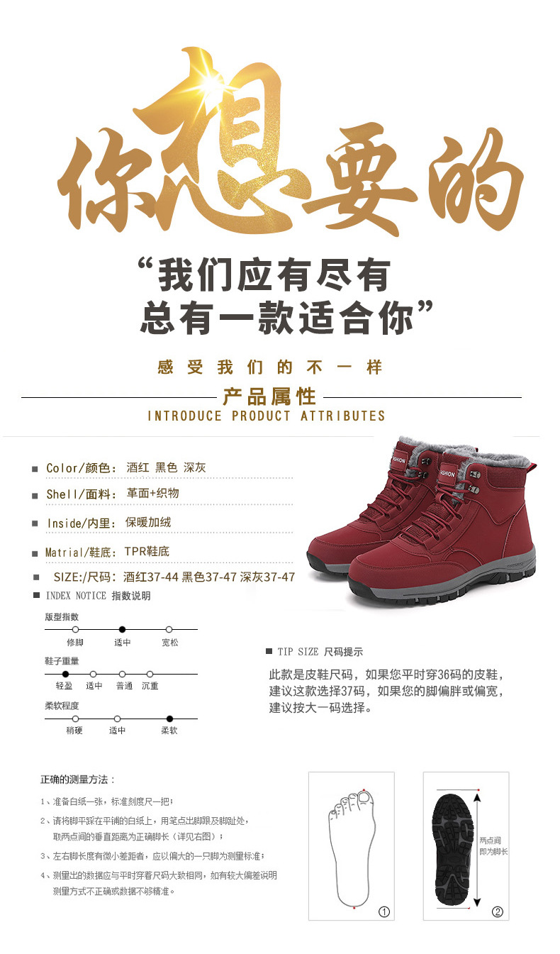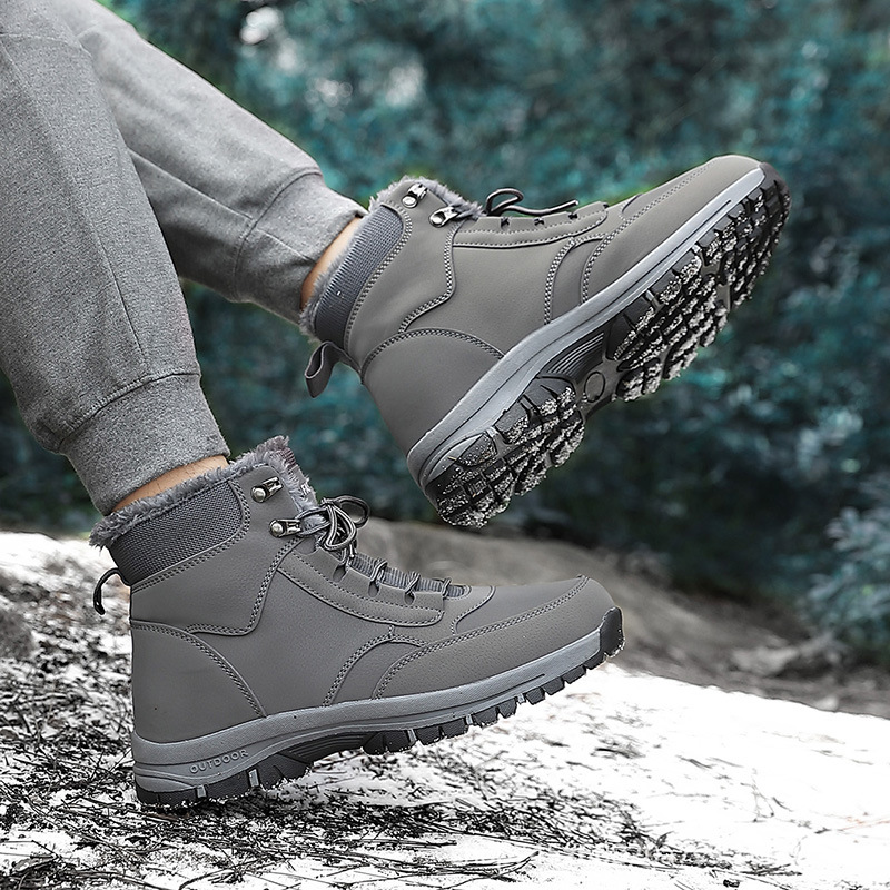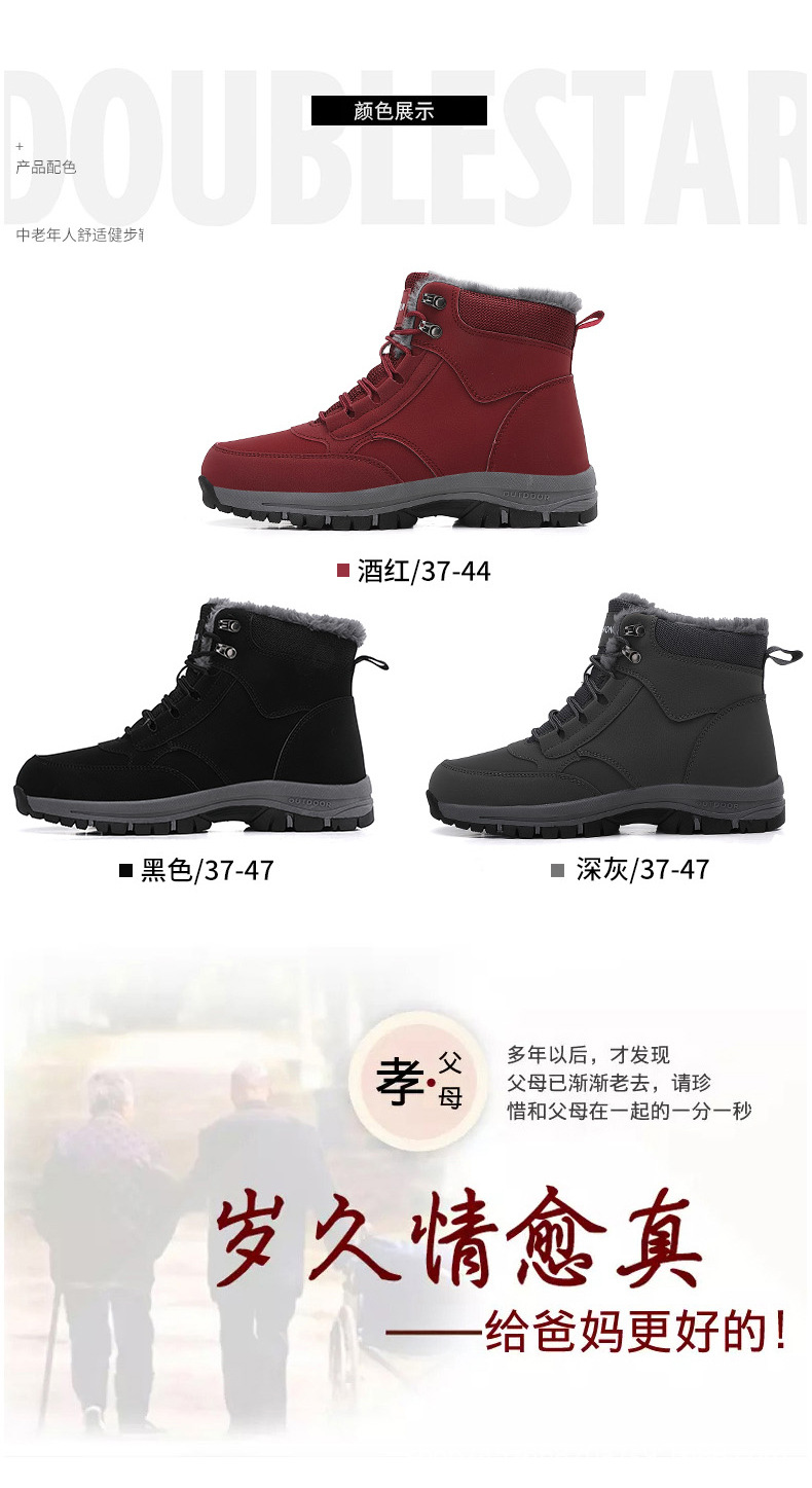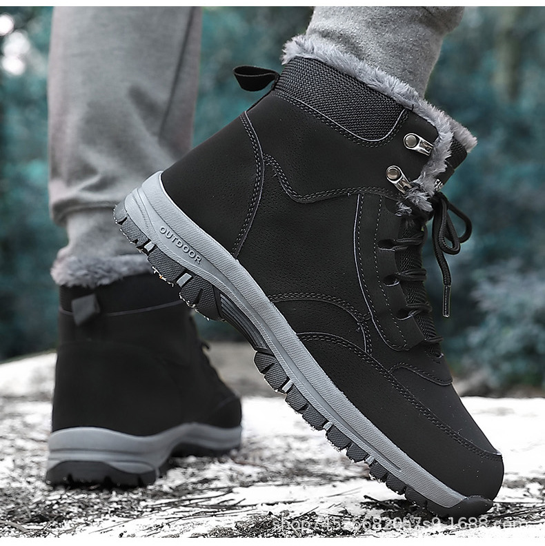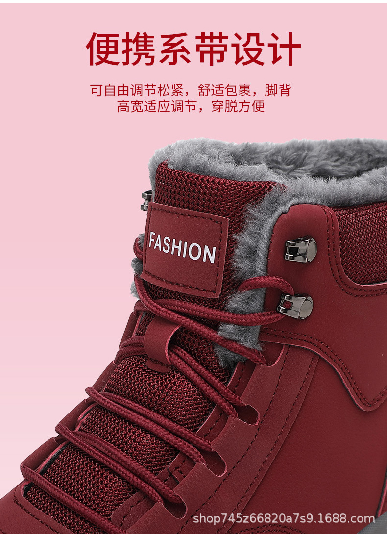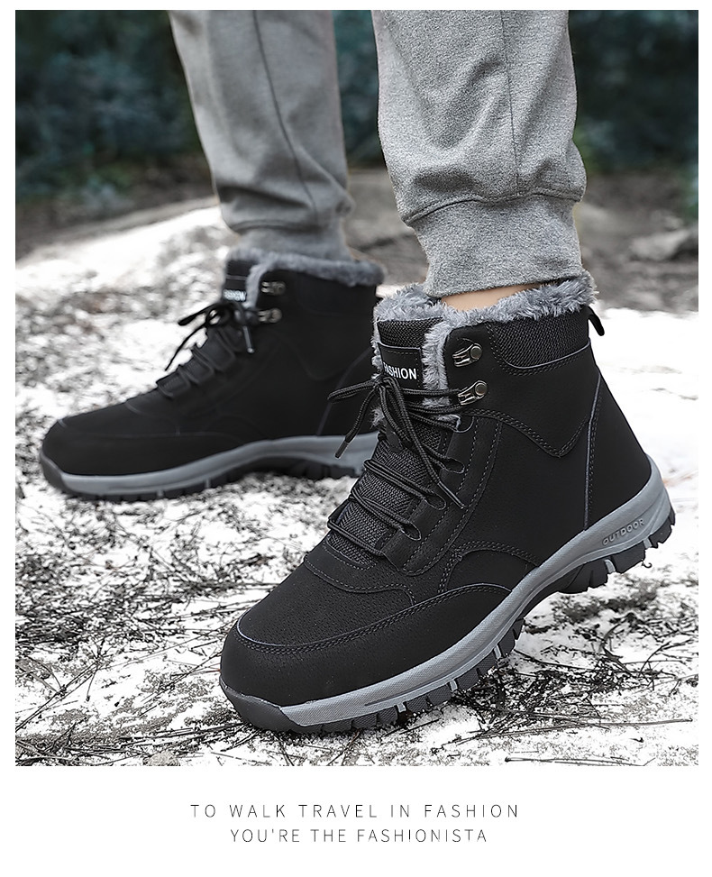 Утепленные флисом высокие хлопковые ботинки для пар 2025 года, уличные зимние сапоги большого размера для активного отдыха, нескользящие, утолщенные, теплые, универсальные походные ботинки