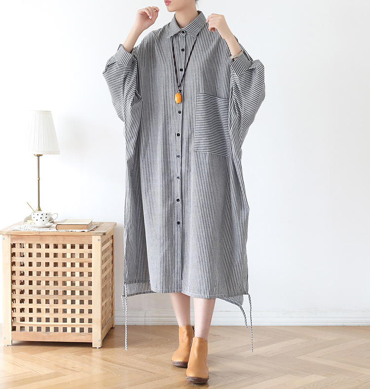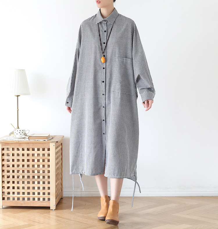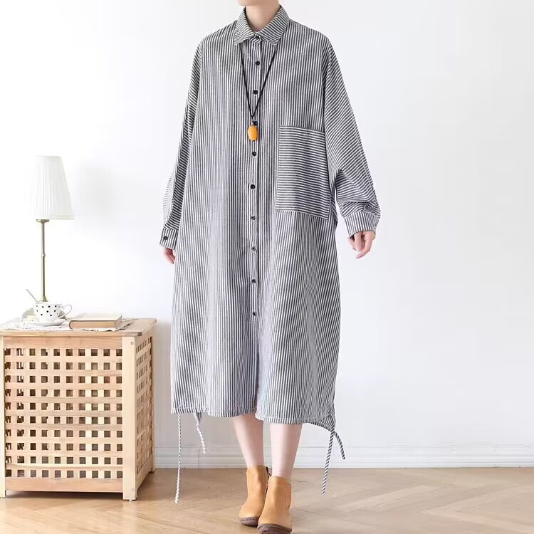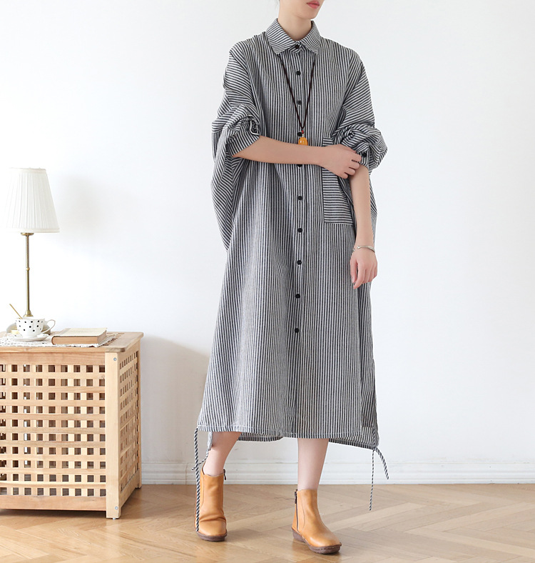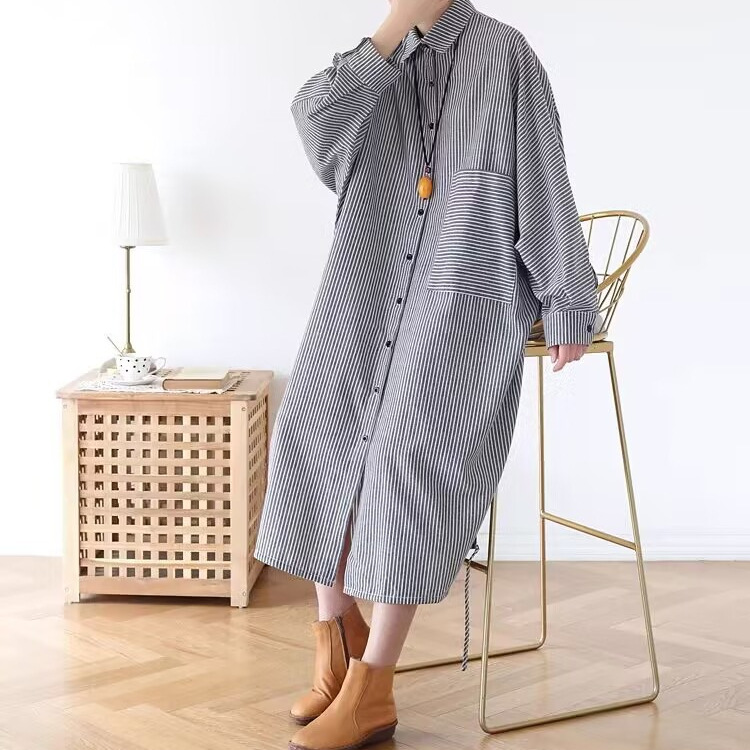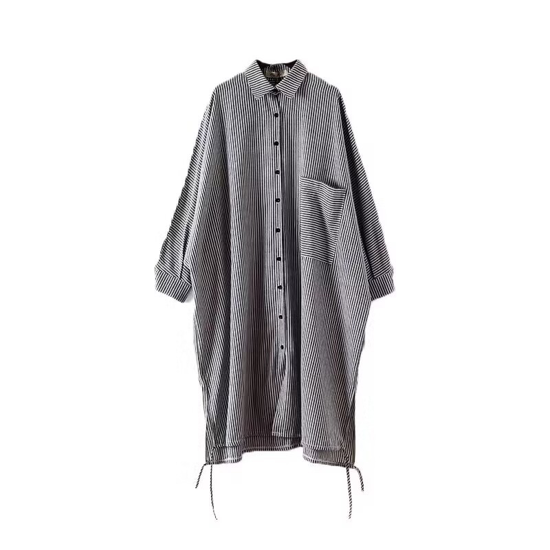 Осенний оригинальный дизайн свободный большой размер длинная полосатая рубашка женская платье с длинными рукавами