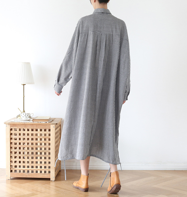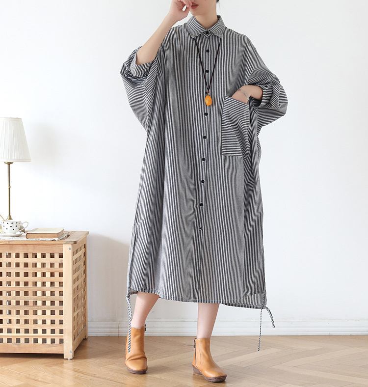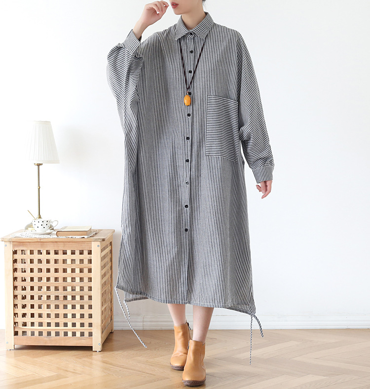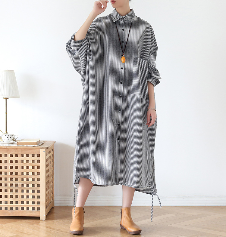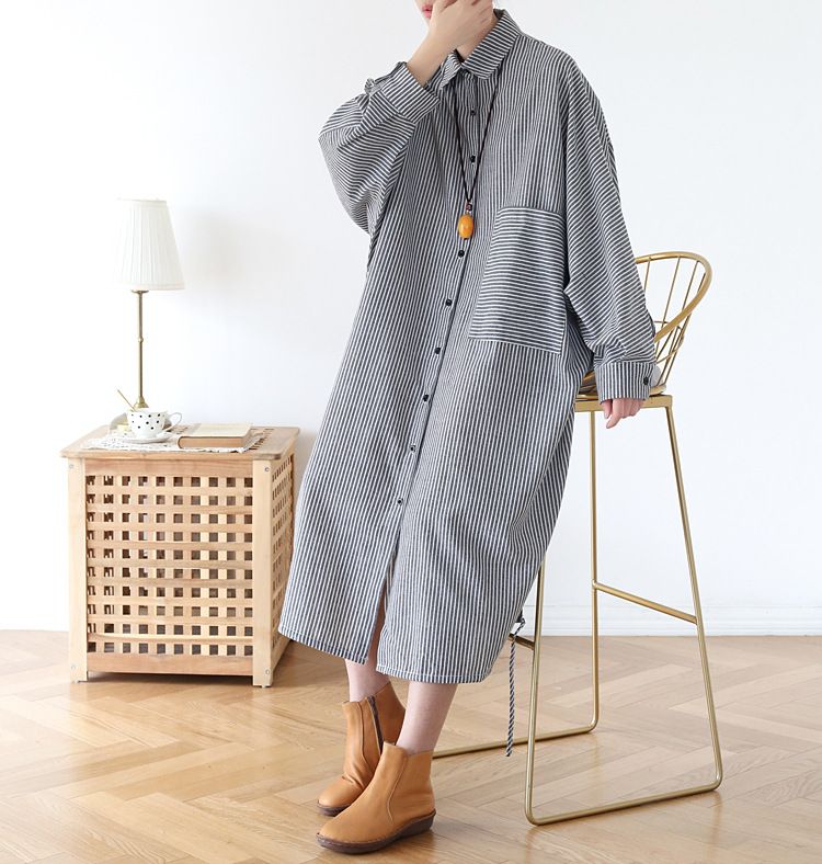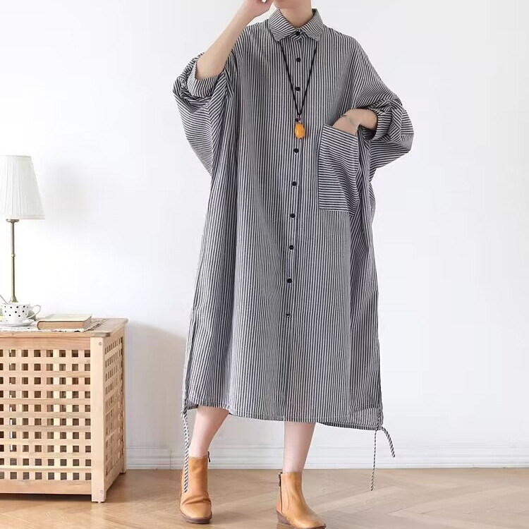 Осенний оригинальный дизайн свободный большой размер длинная полосатая рубашка женская платье с длинными рукавами