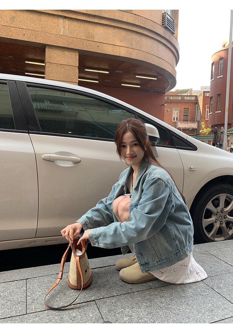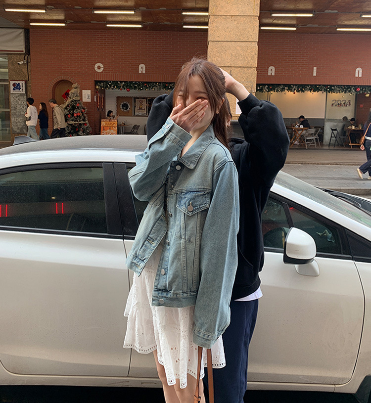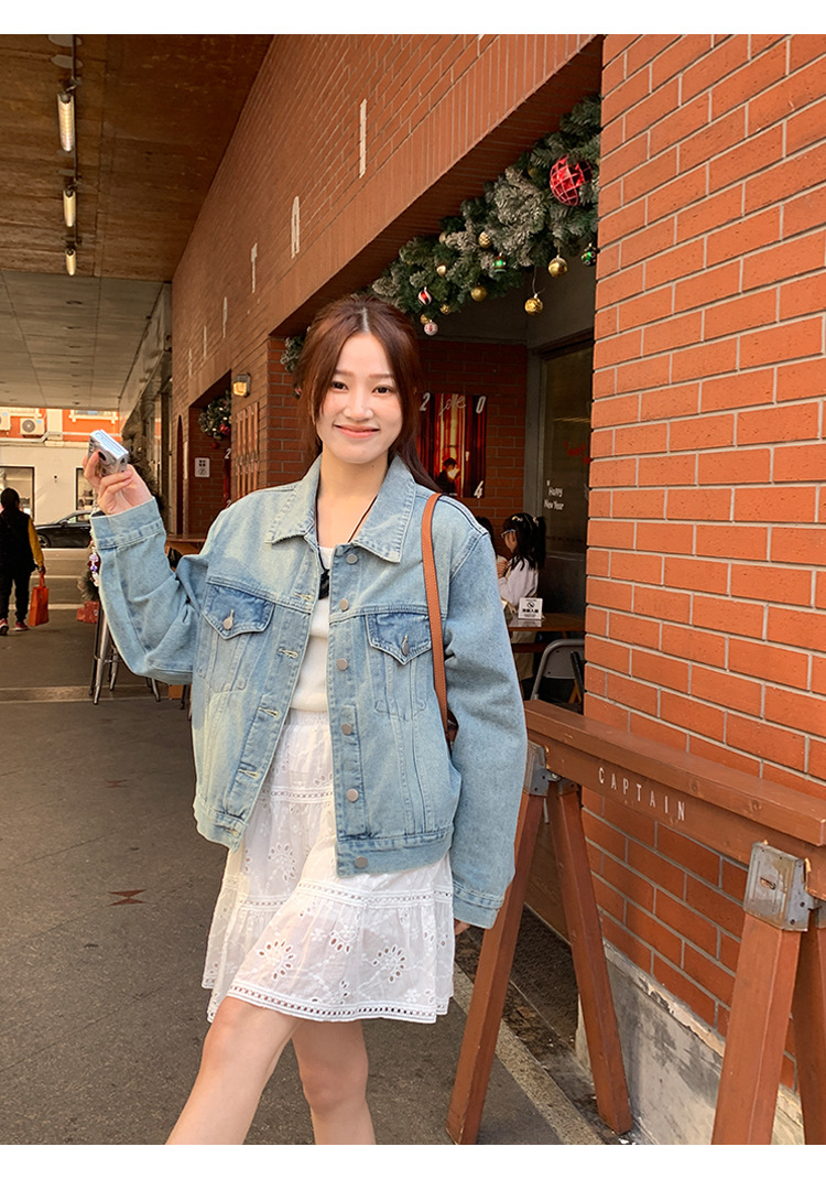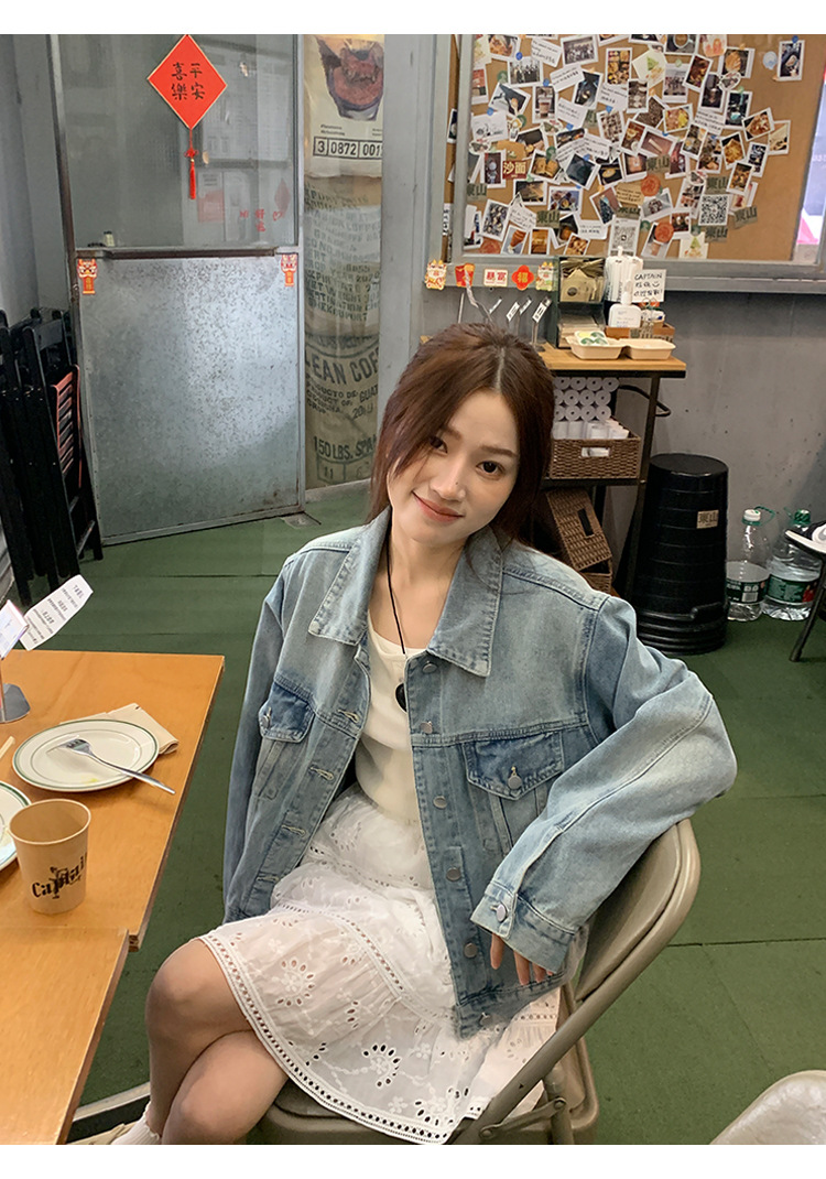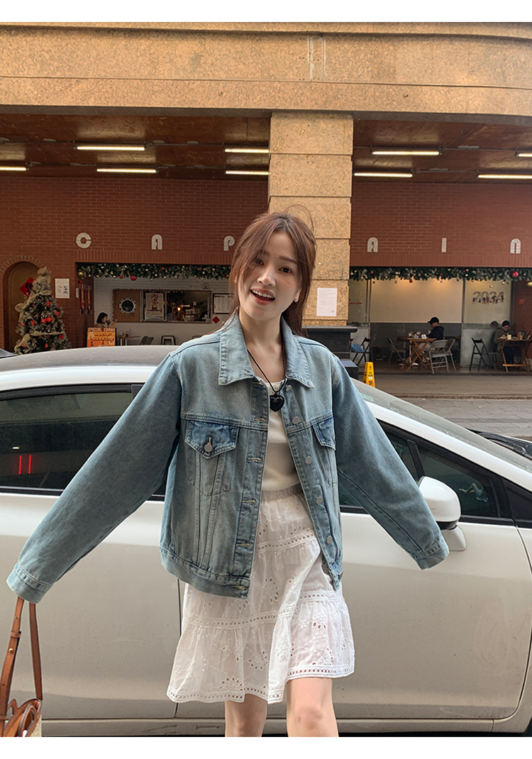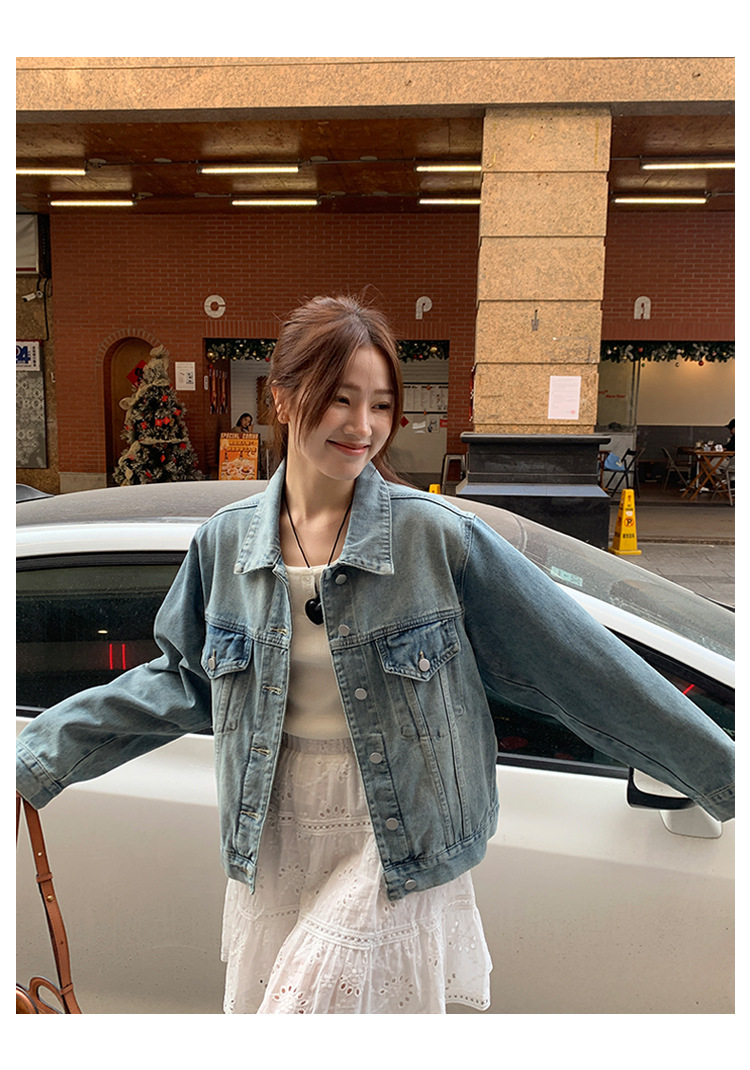 Распродажа: Светлая универсальная джинсовая куртка для женщин, новая осенняя модель, свободный крой в корейском стиле, укороченный топ с длинным рукавом