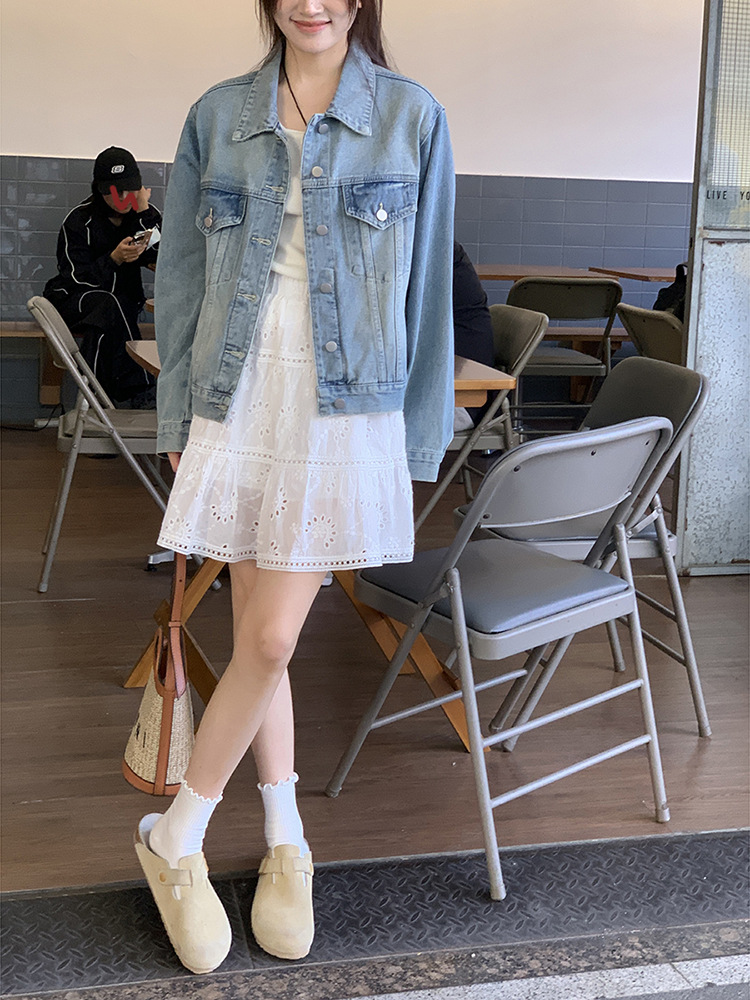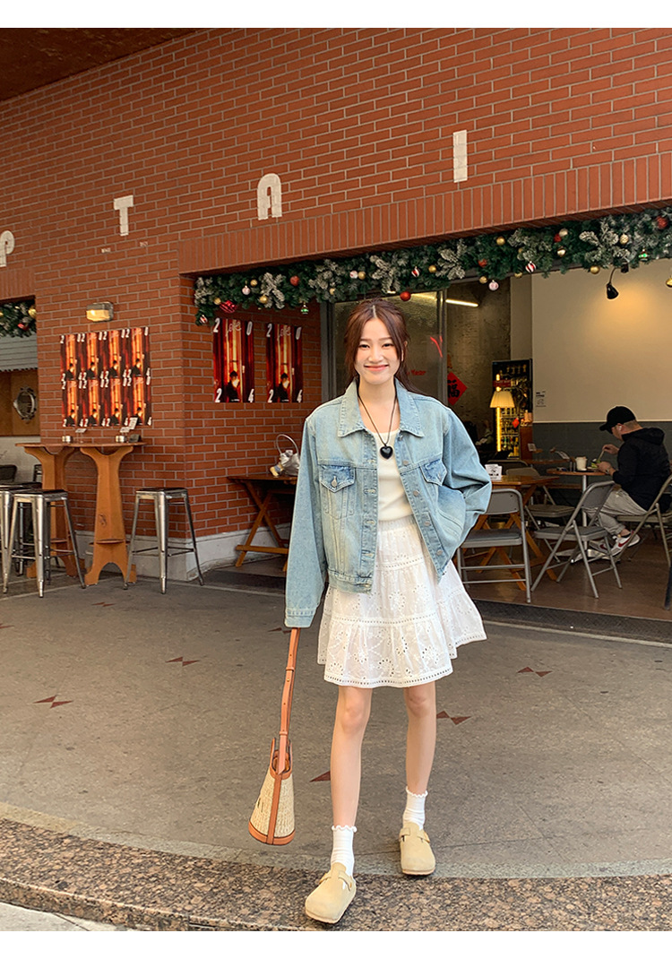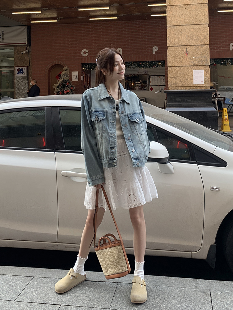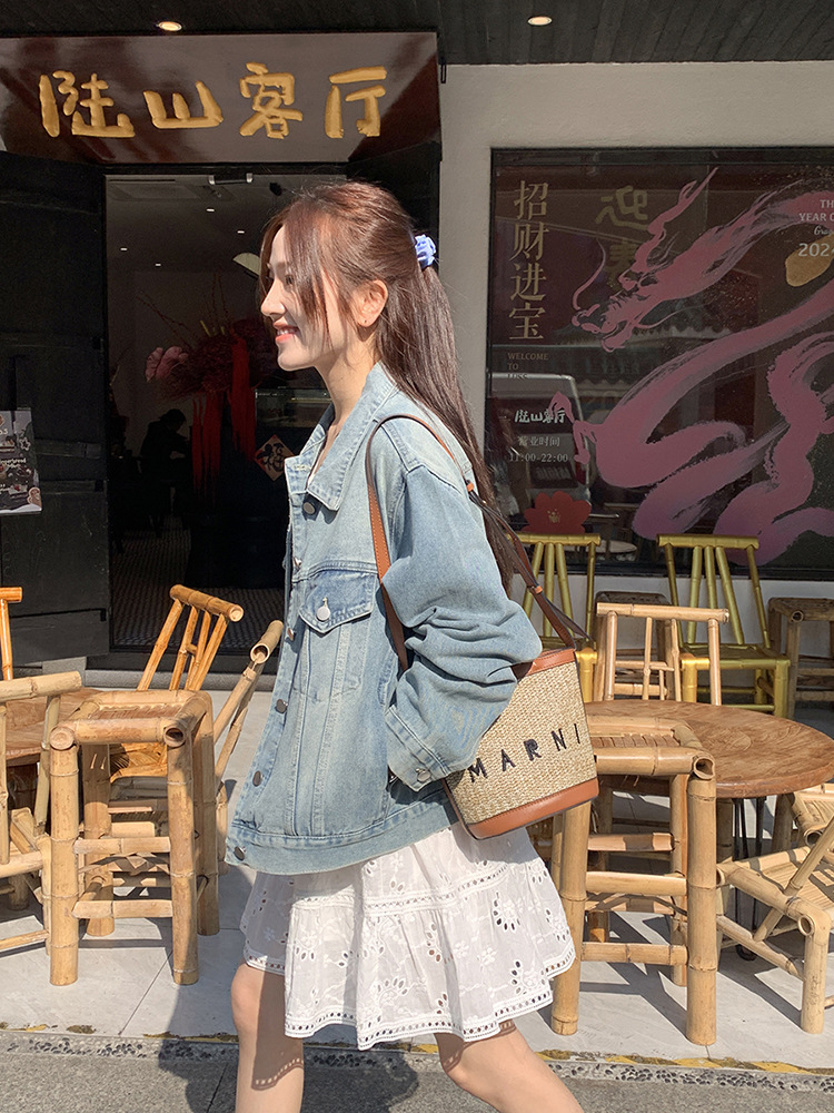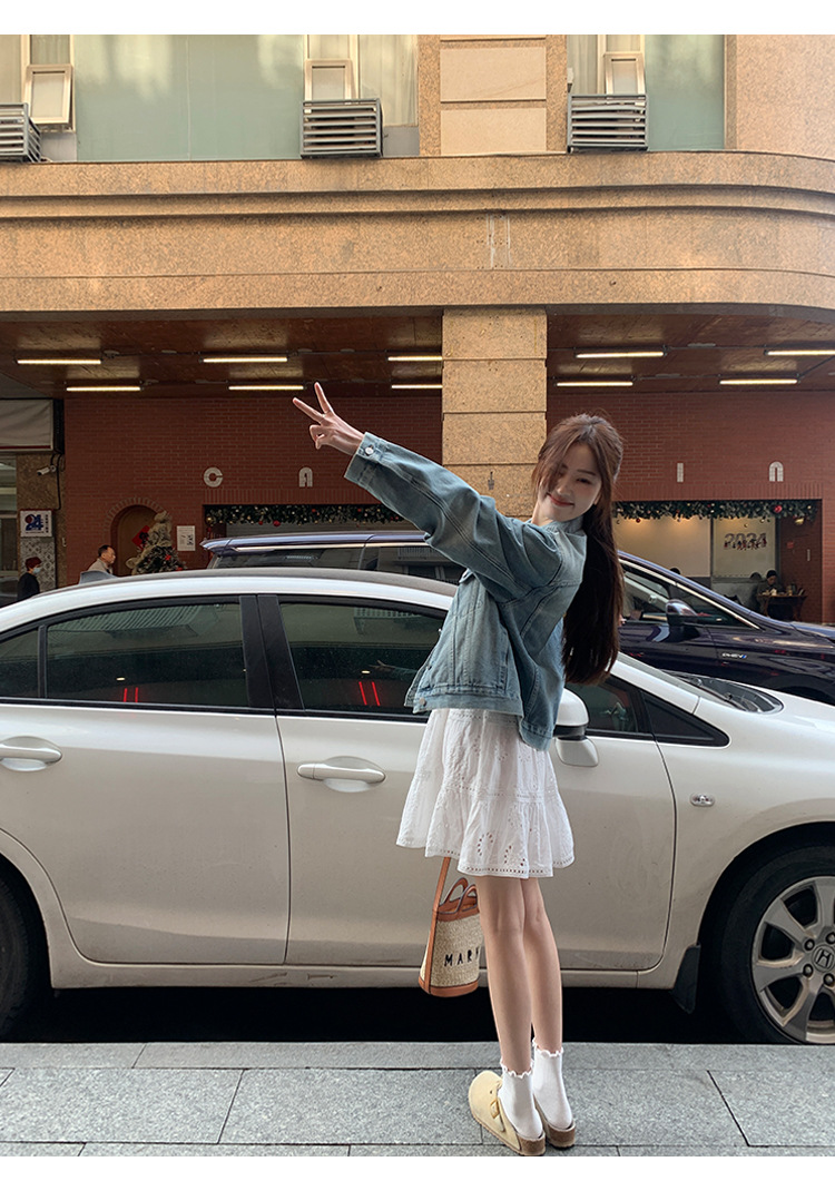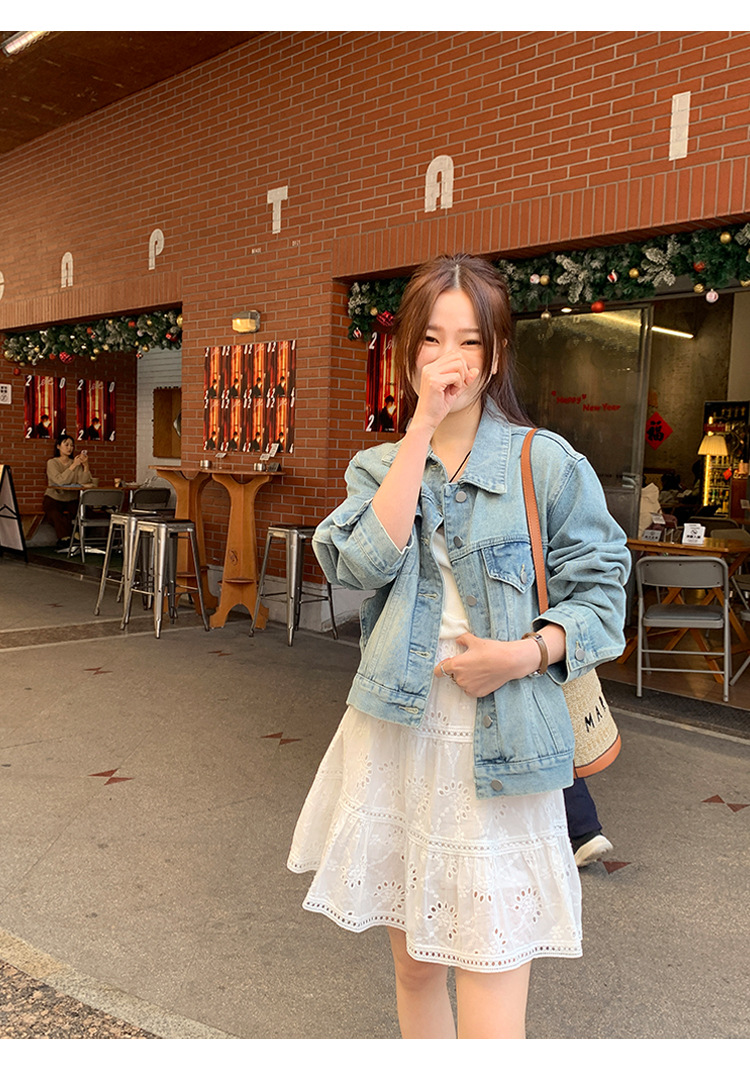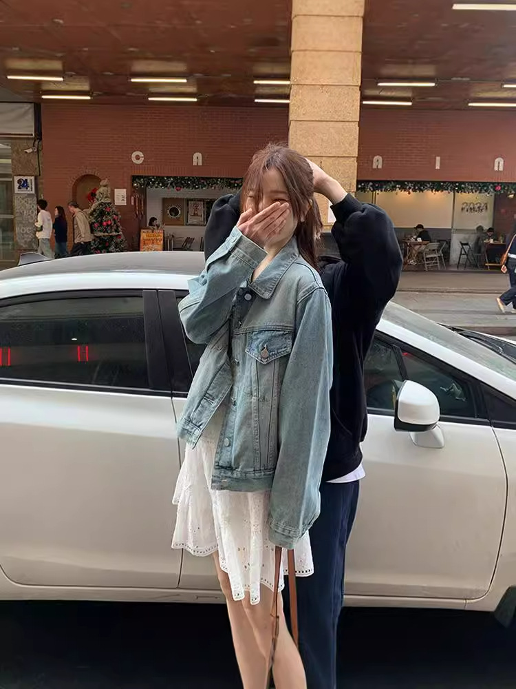 Распродажа: Светлая универсальная джинсовая куртка для женщин, новая осенняя модель, свободный крой в корейском стиле, укороченный топ с длинным рукавом