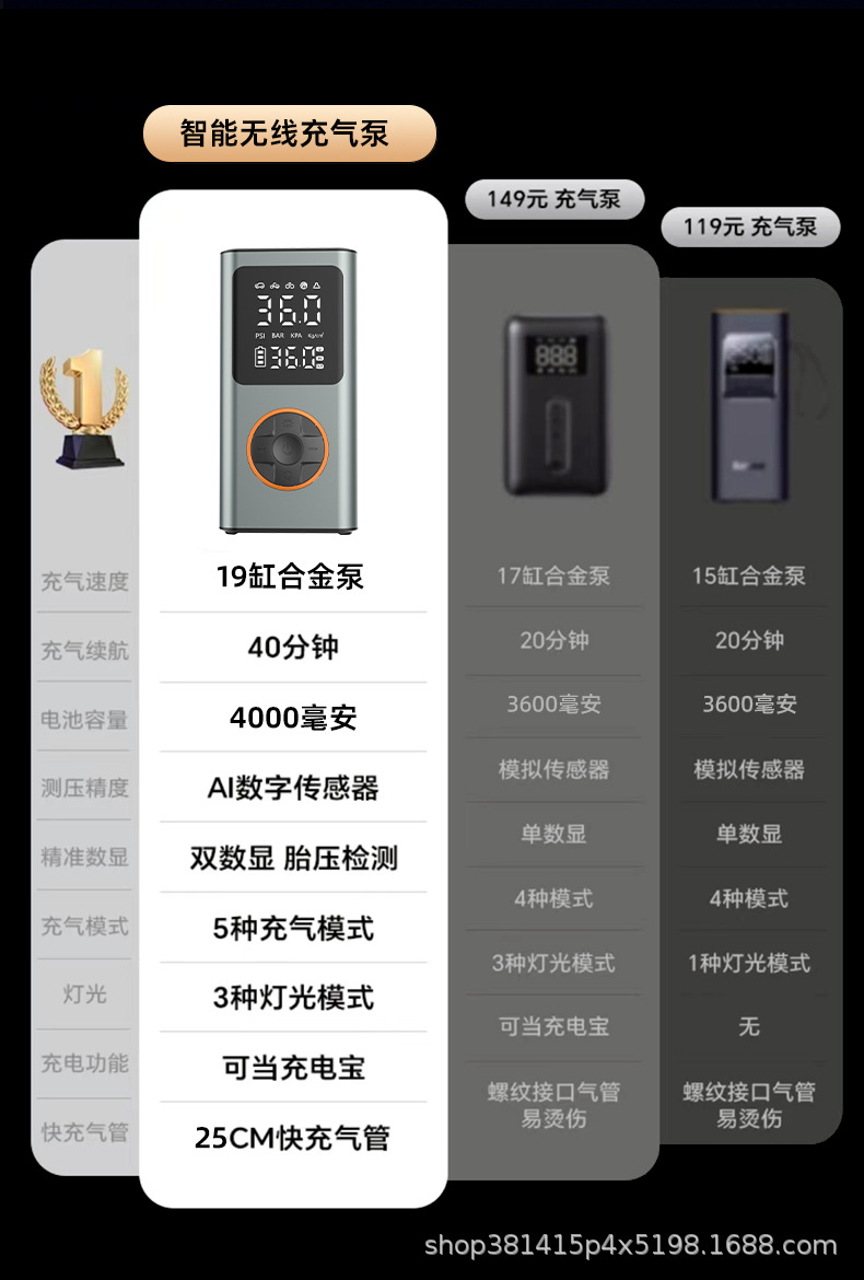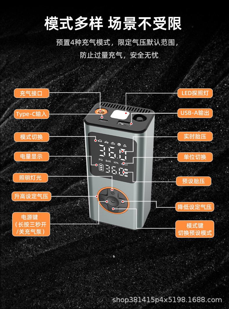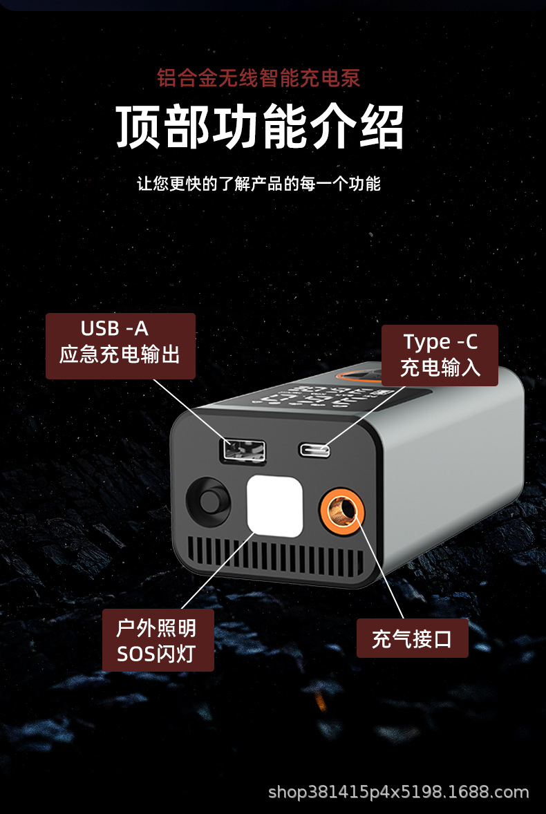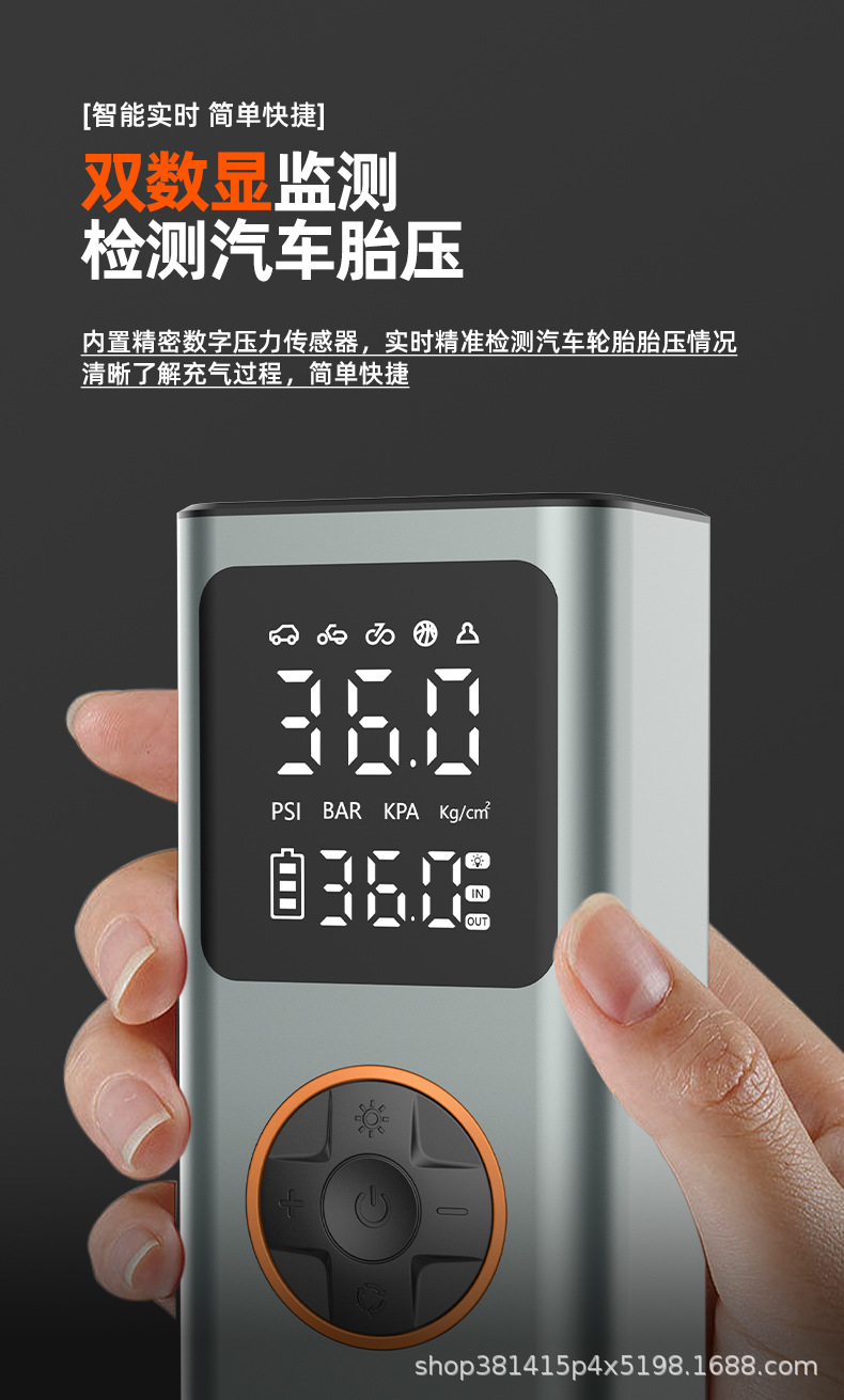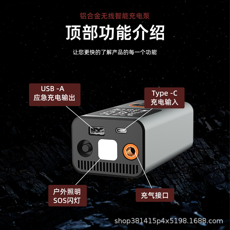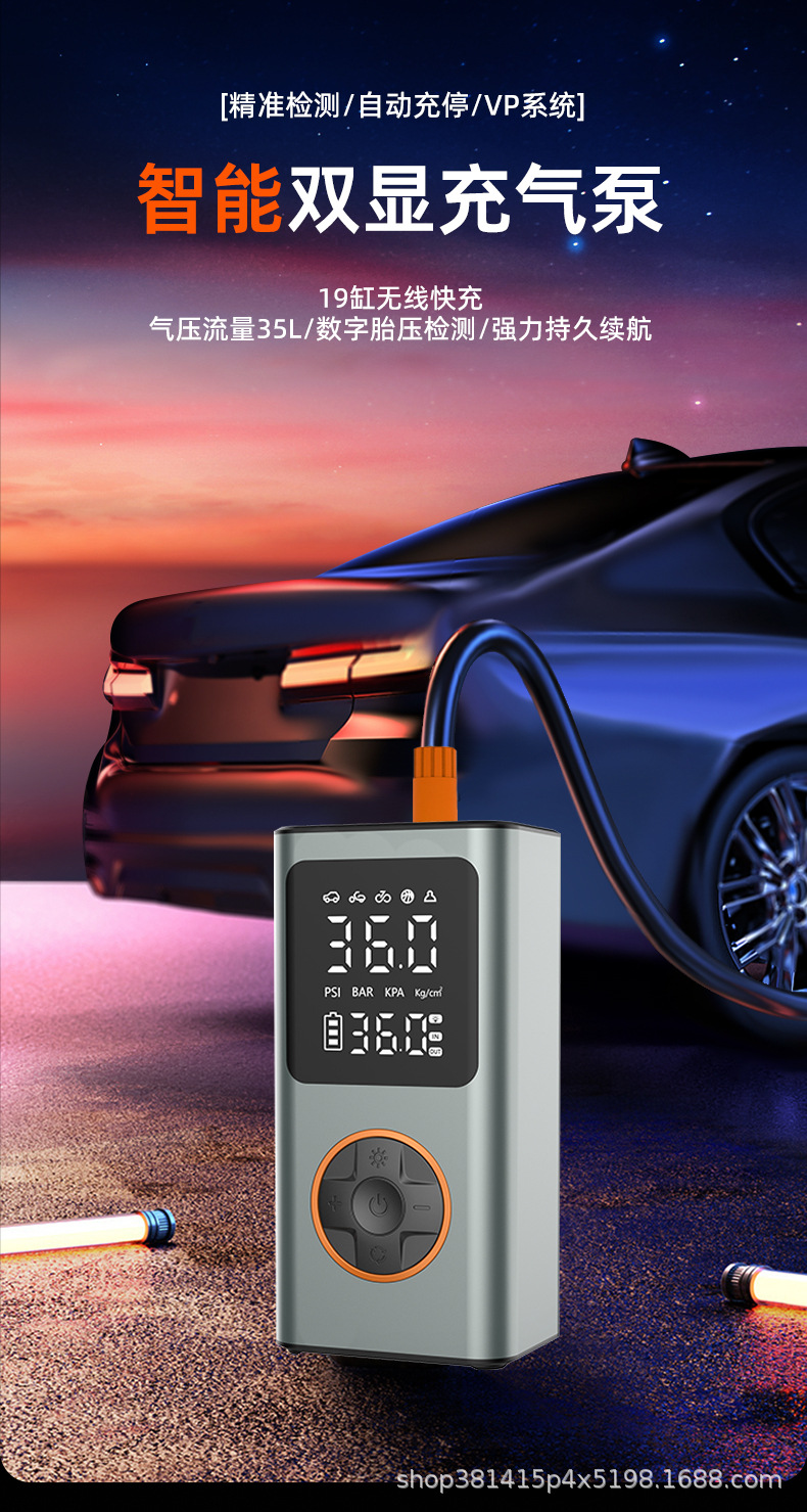 Трансграничный беспроводной автомобильный портативный надувной насос электромобиль надувной цилиндр алюминиевый сплав двойной цифровой дисплей автомобильный надувной насос