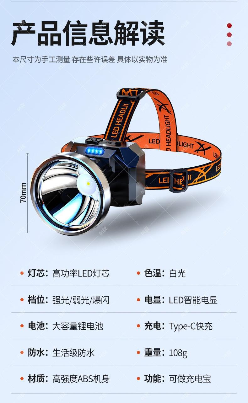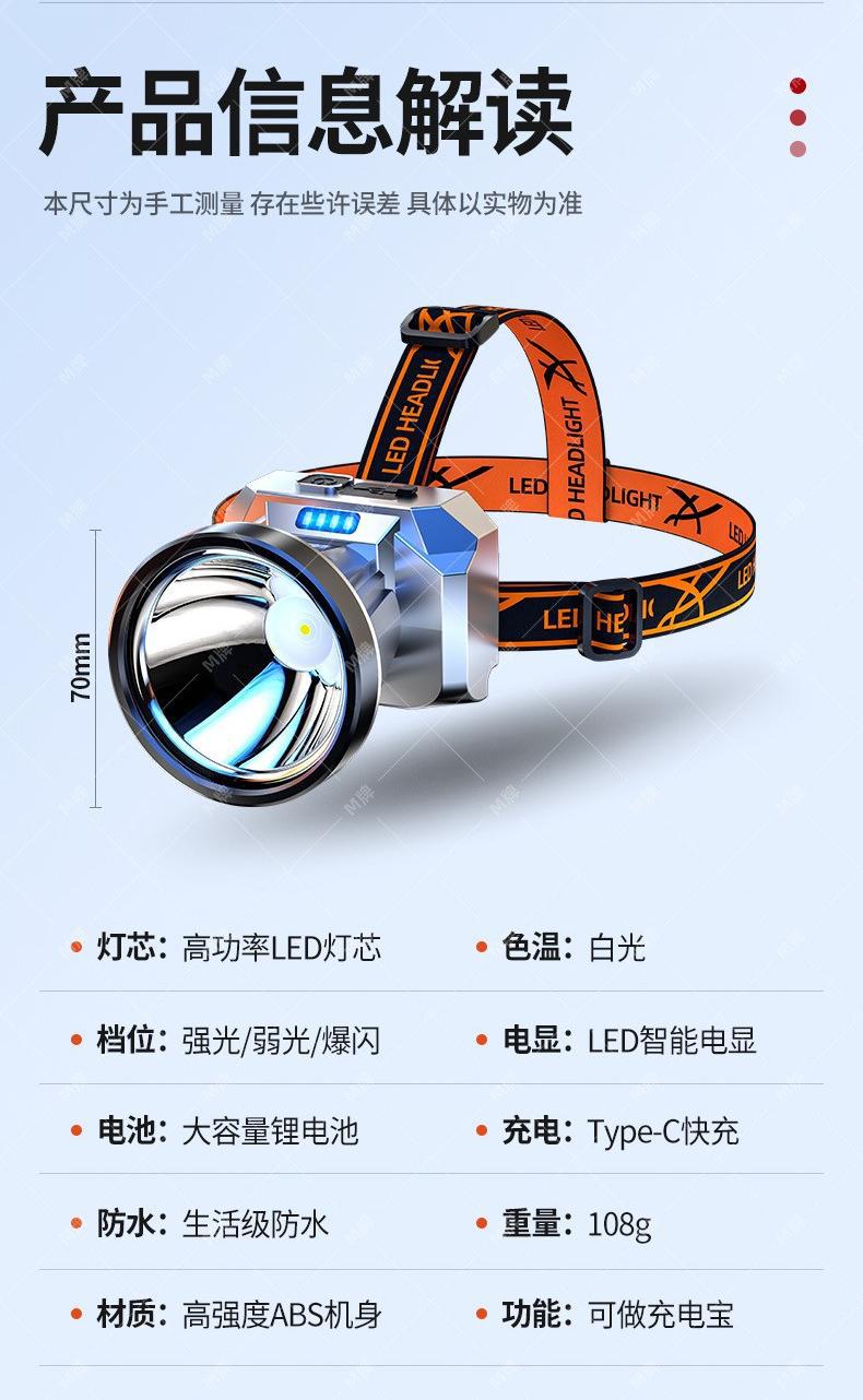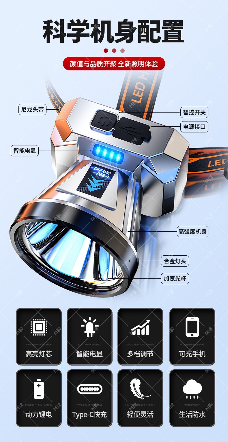 Шахтерская лампа в стиле кемпинга, сильный свет, высокий люмен, длительное время автономной работы, зарядка литиевой батареи, специальный светодиодный налобный фонарь для рыбалки на открытом воздухе.