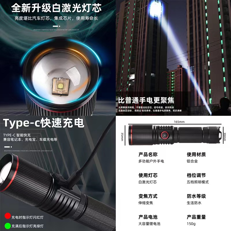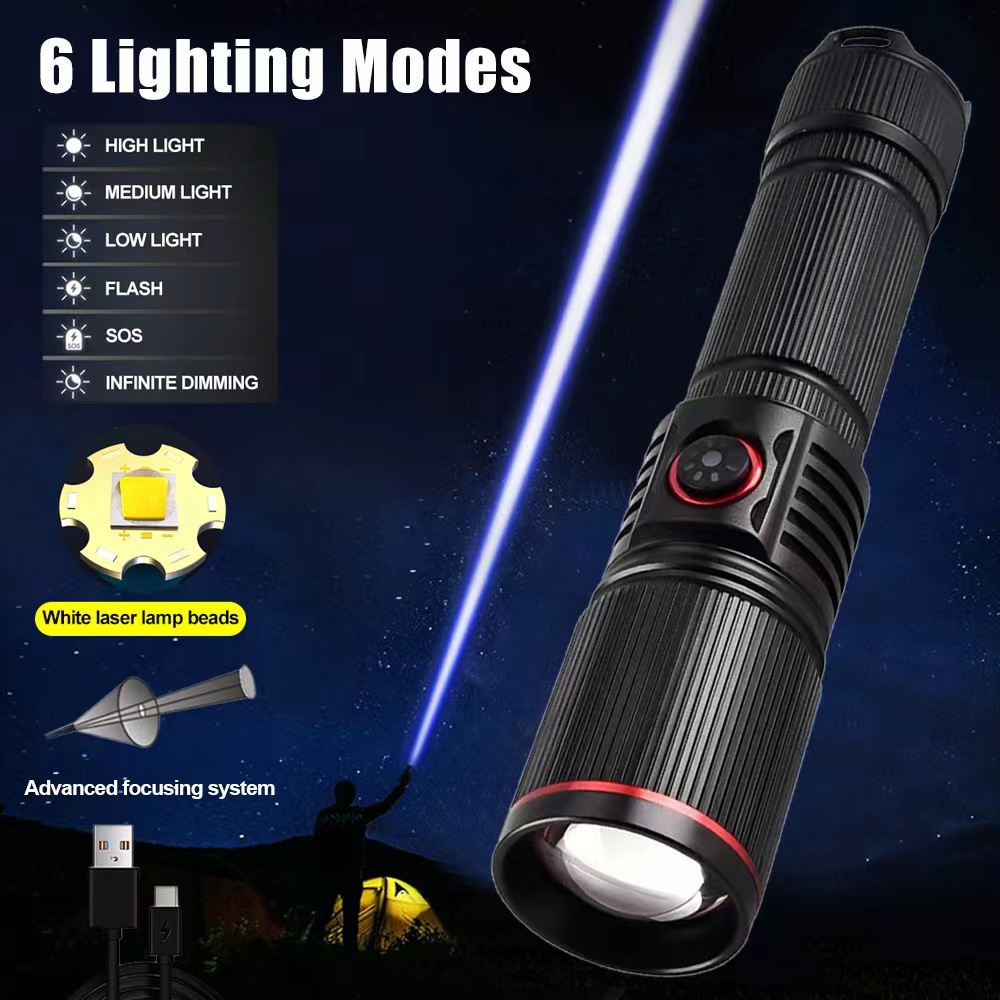 Трансграничный новый открытый тактический белый лазерный фонарик телескопический зум зарядный сильный свет дальний свет алюминиевый фонарик