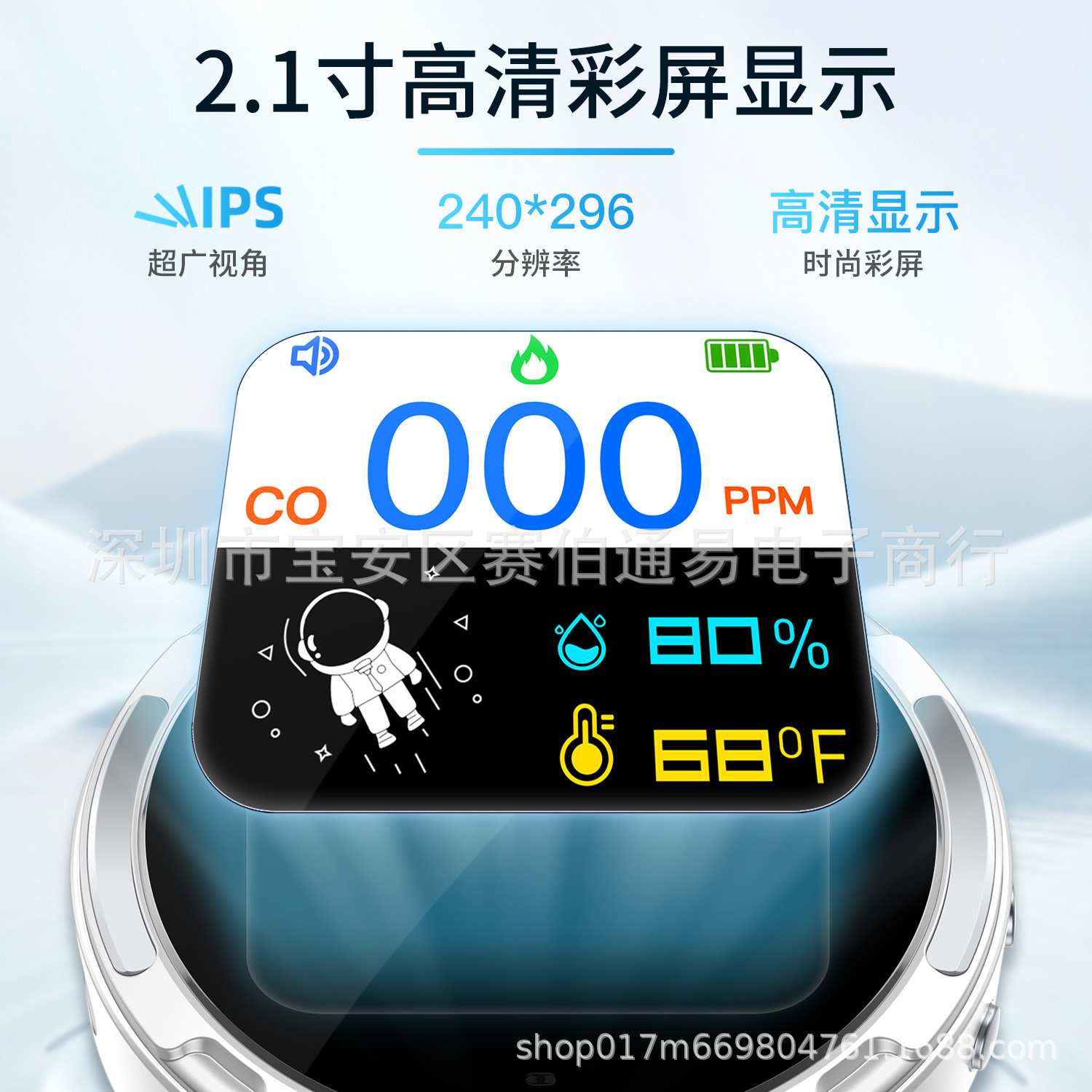 显示模式:超高清彩屏。数值达到50ppm滴滴声循环报警,3分钟一次。