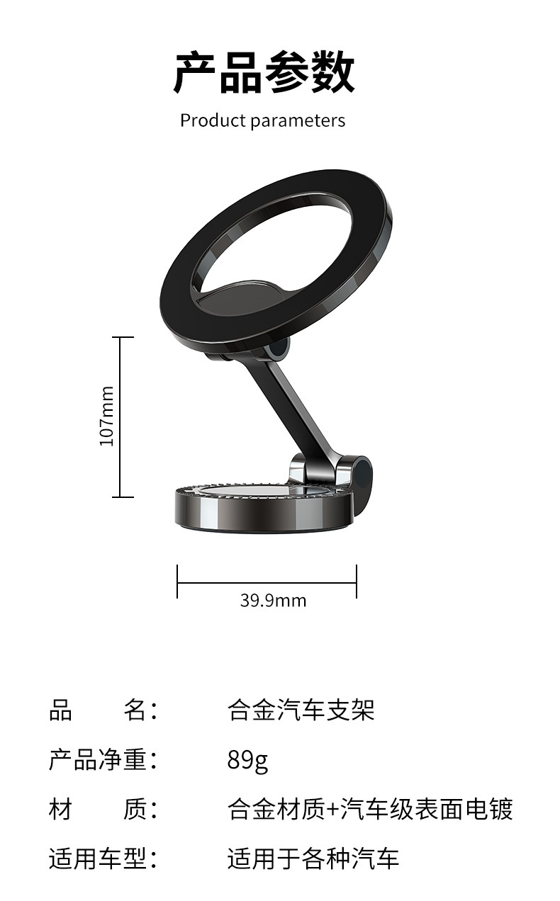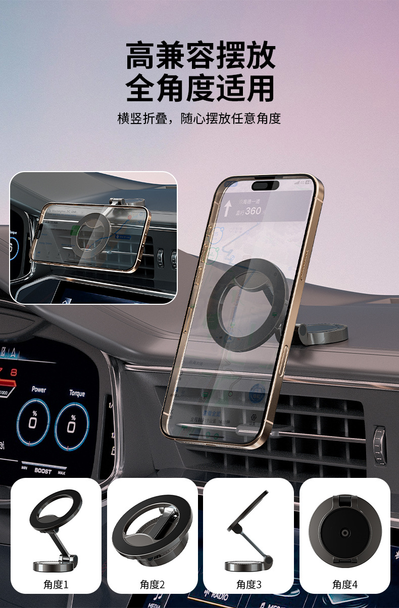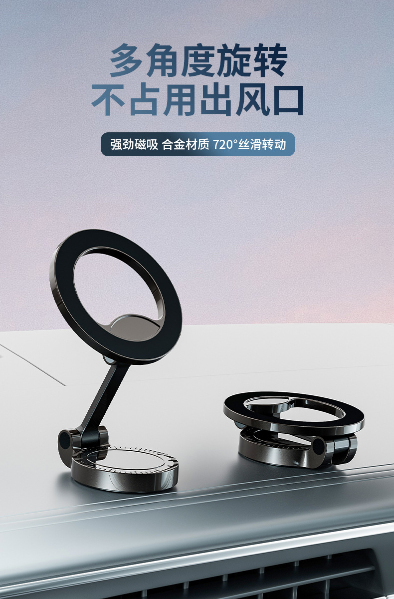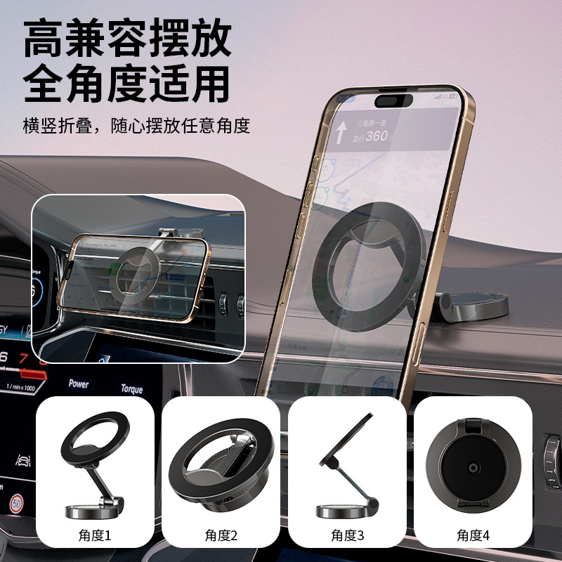 Magsafe All-Alloy Foldable Magnetic Car Mount Phone Holder for Navigation - Wholesale Cross-Border