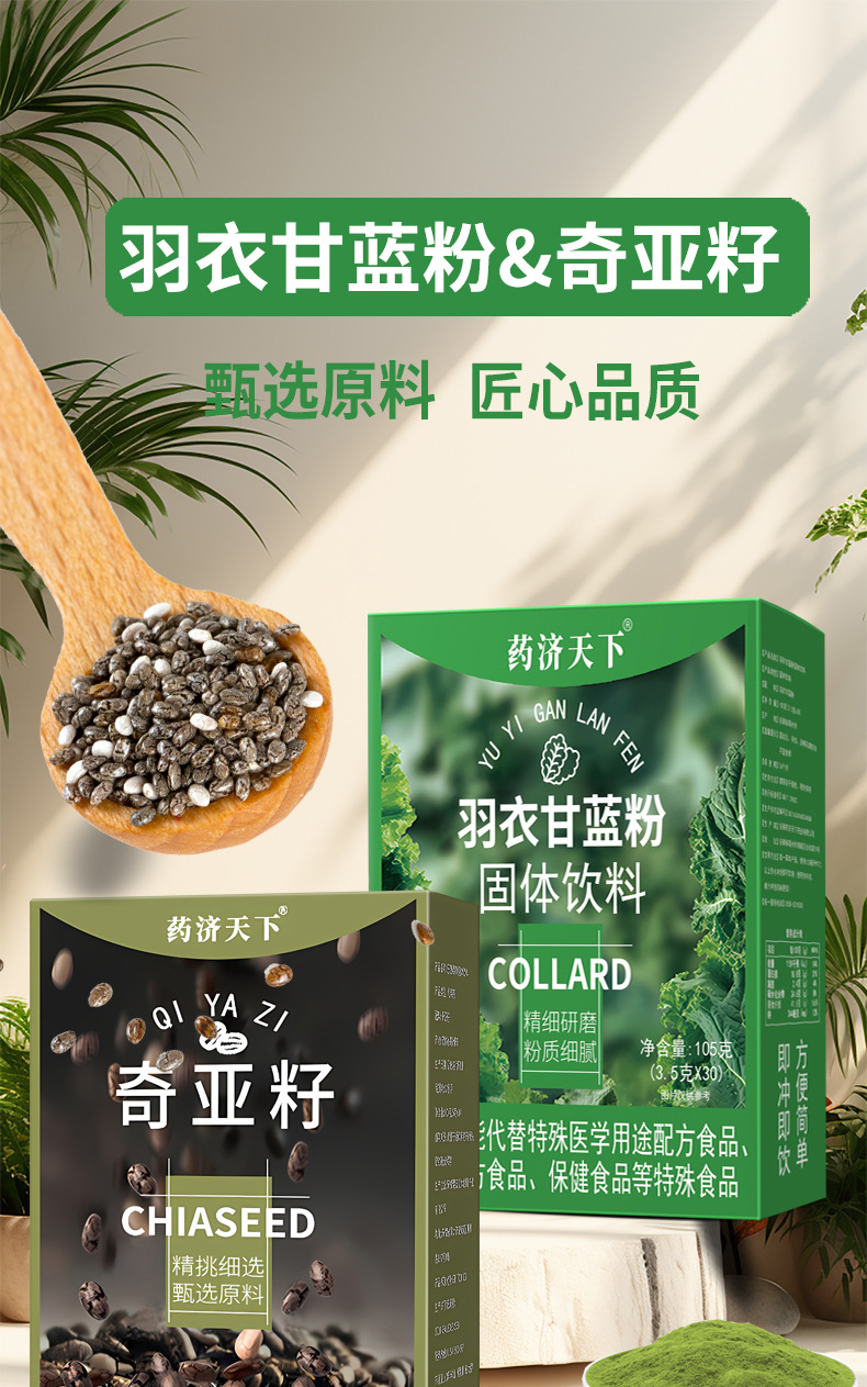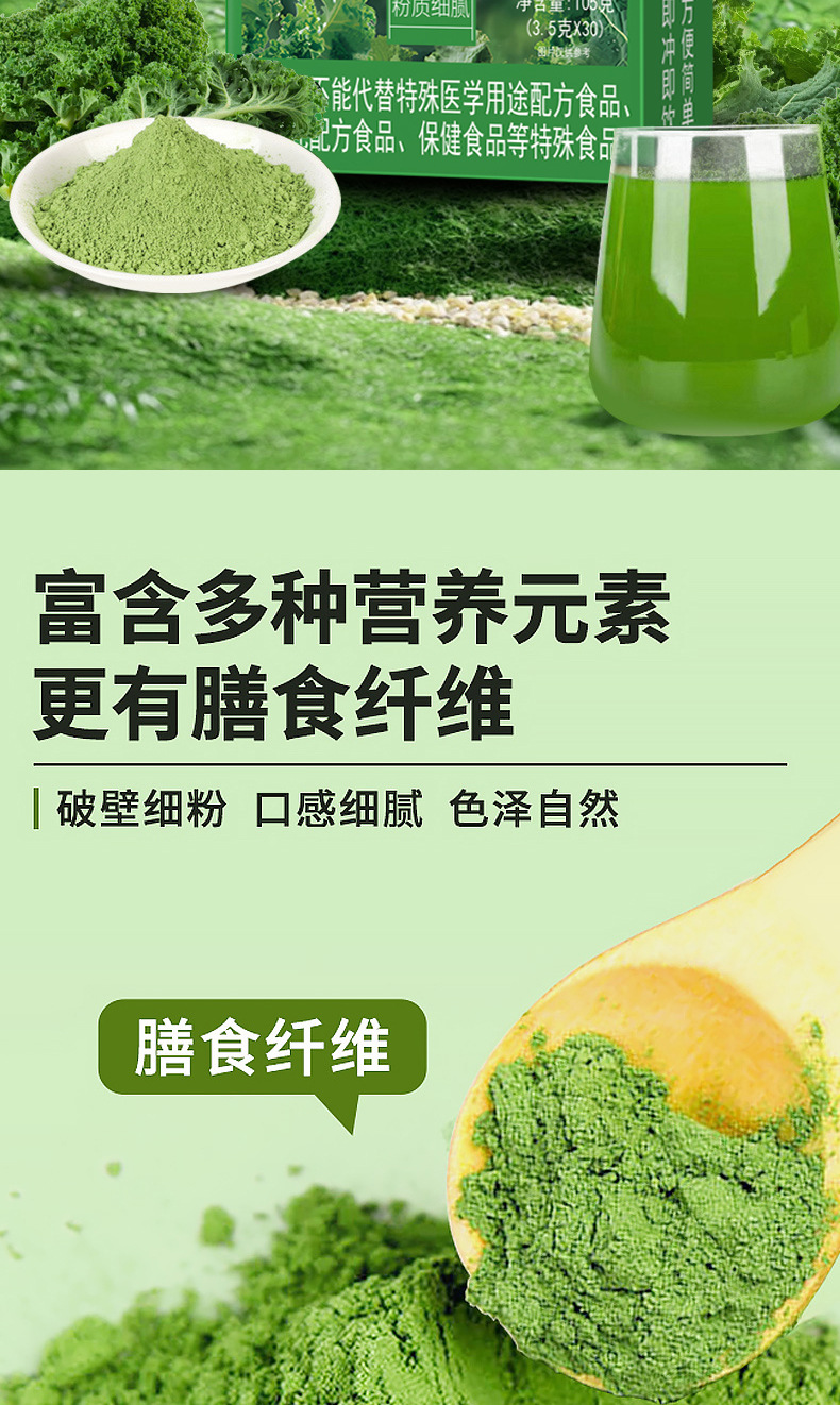 Комбинация порошка кале и семян чиа 105 г, заваренный завтрак, готовый к употреблению полноценный заменитель пищи, высокое содержание пищевых волокон, оптом
