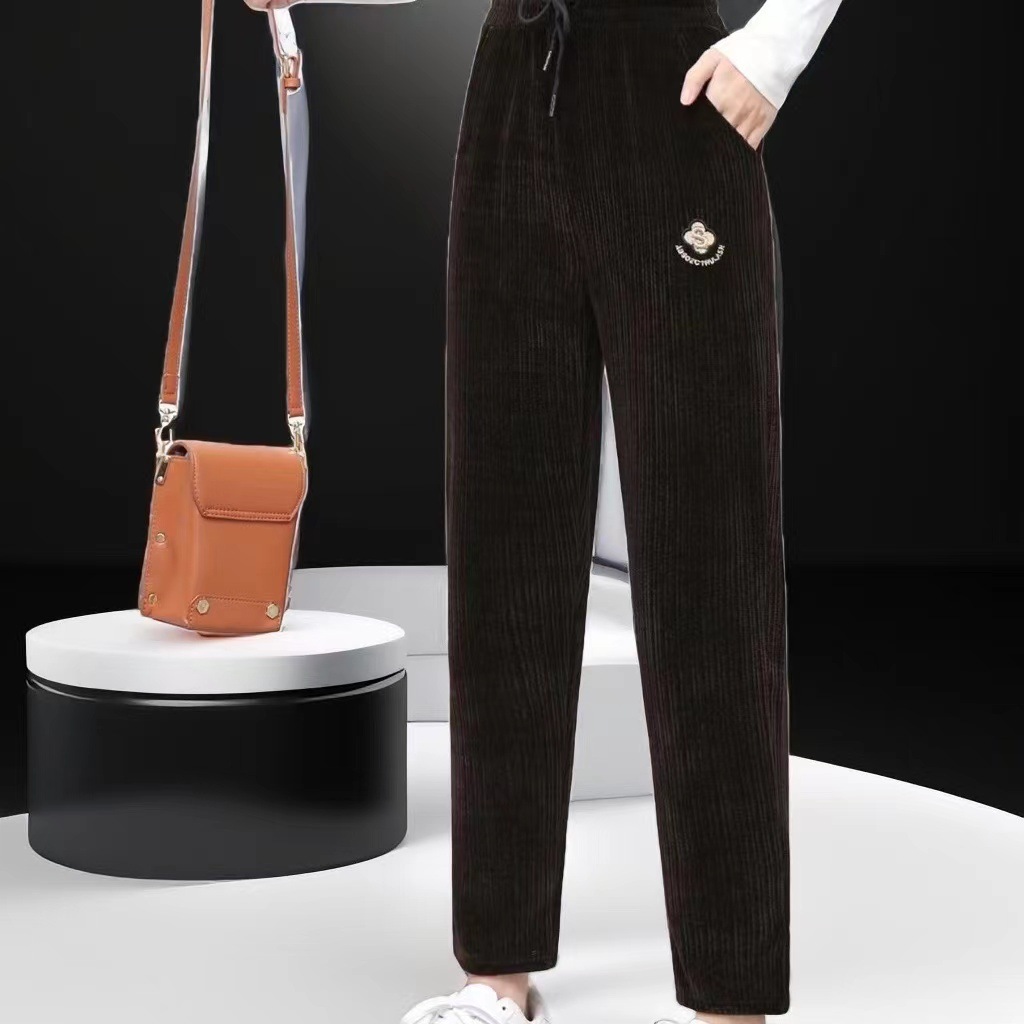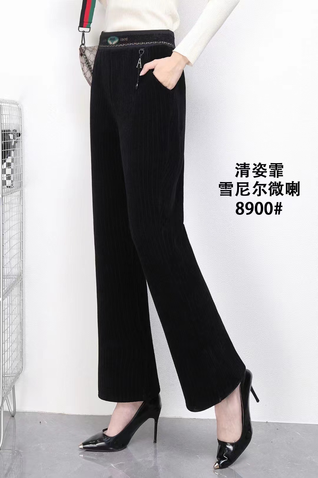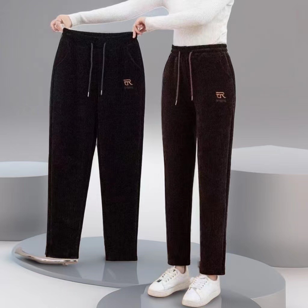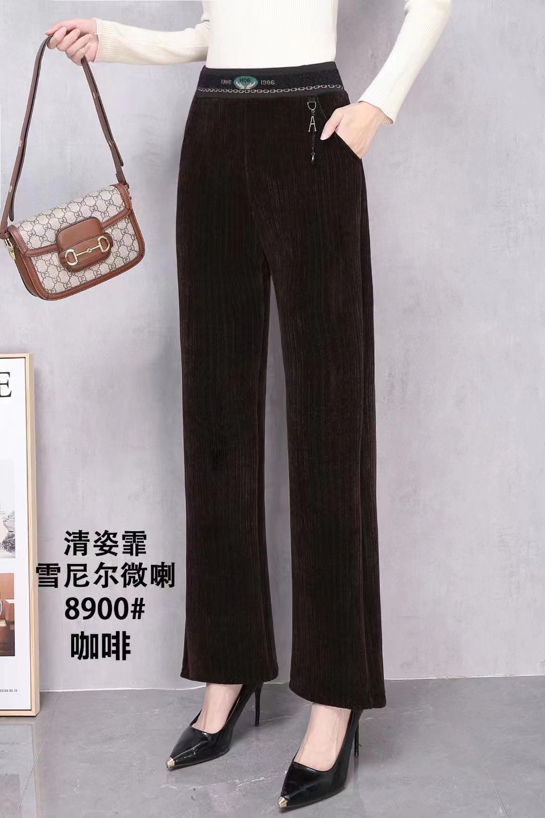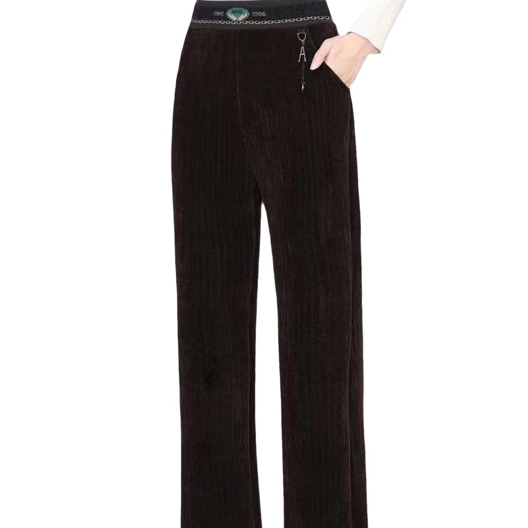 Зимние новые брюки из синели с высокой талией, облегающие, прямые, на флисовой подкладке, утепленные, повседневные, для женщин среднего возраста.