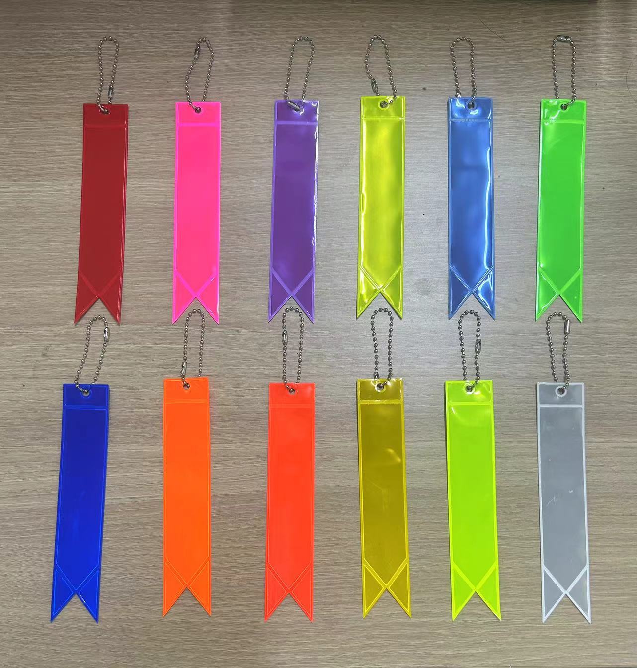 飘带款儿童书包双面反光挂件夜行PVC反光安全警示牌荧光钥匙扣