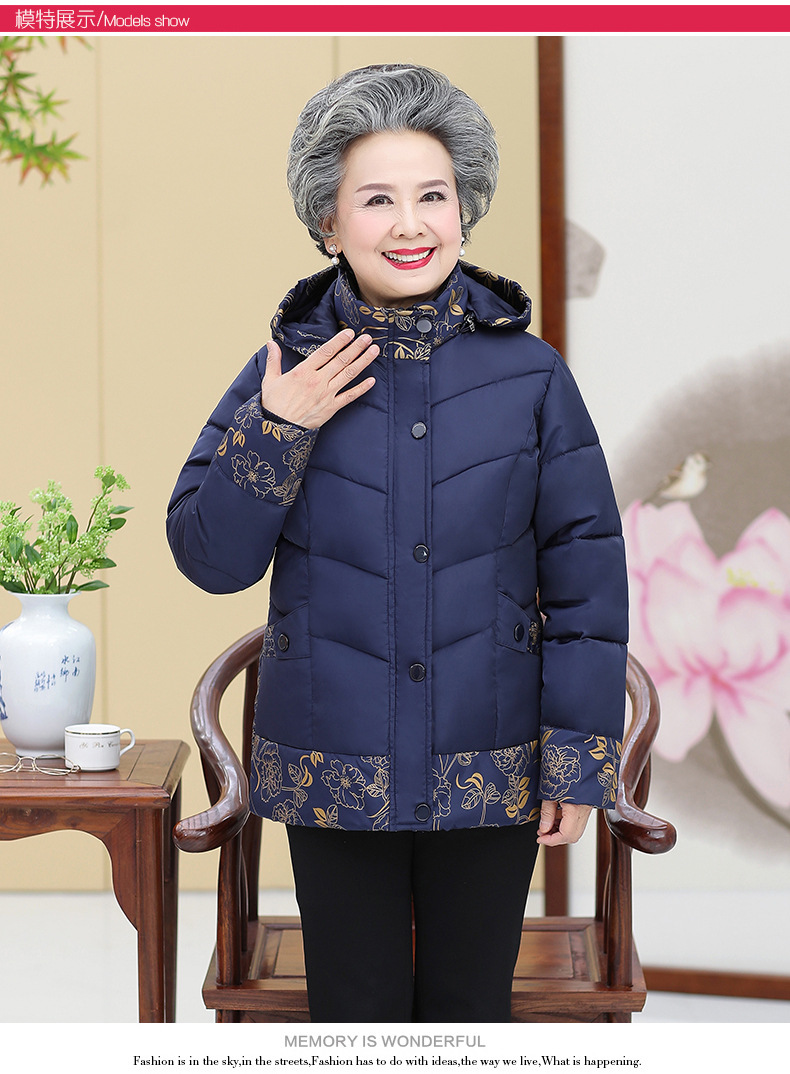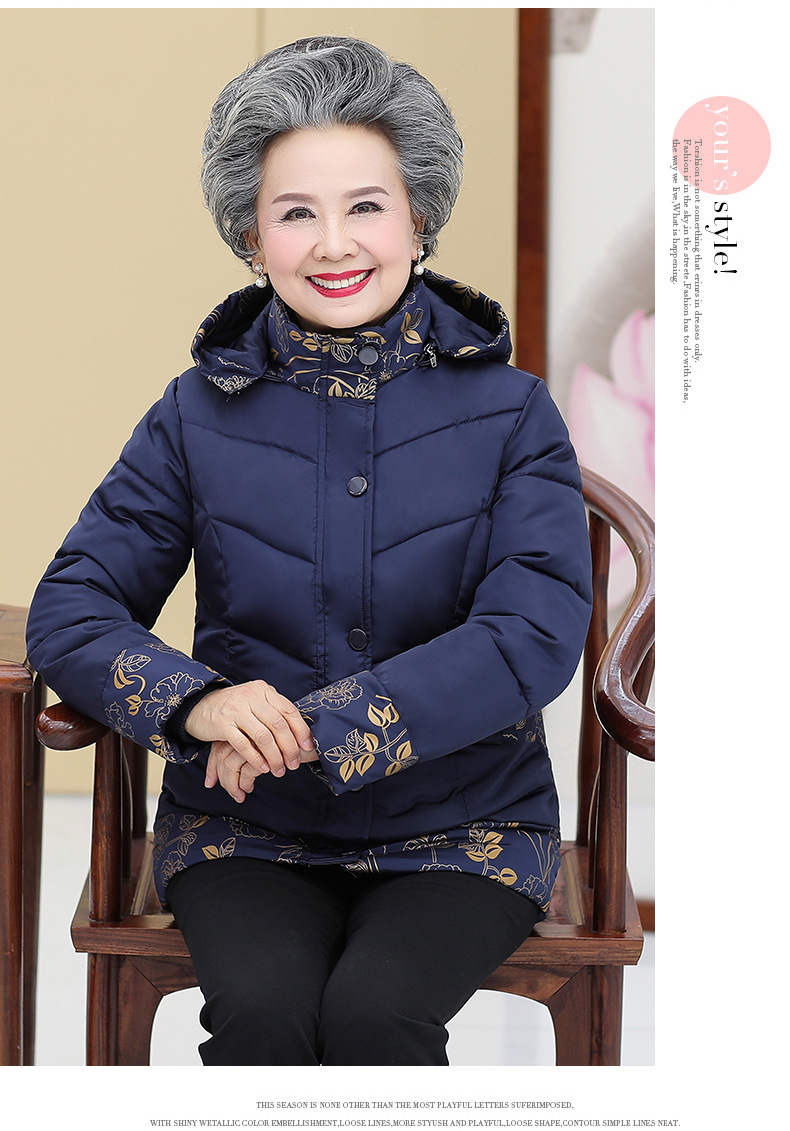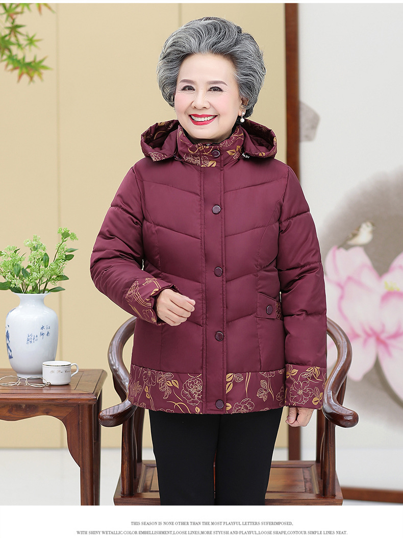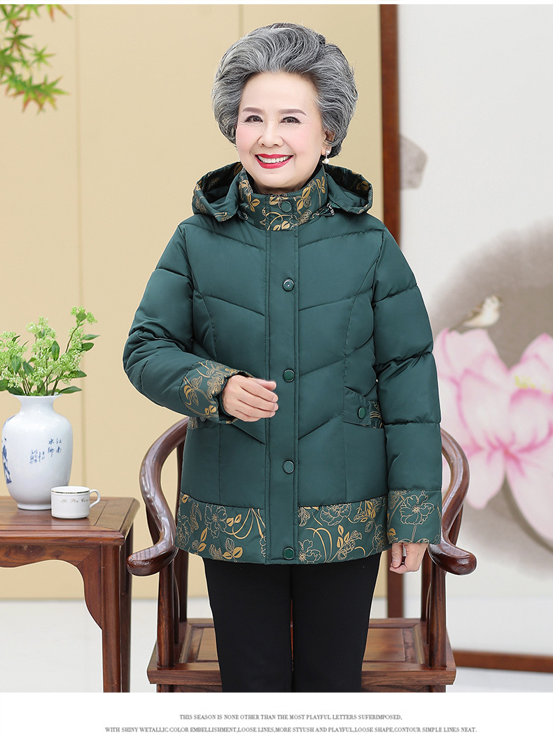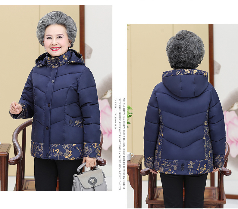 Средний и пожилой женский хлопчатобумажный костюм модный повседневный дикий темпераментный цветок 2024 зимний новый пожилой теплый хлопковый костюм