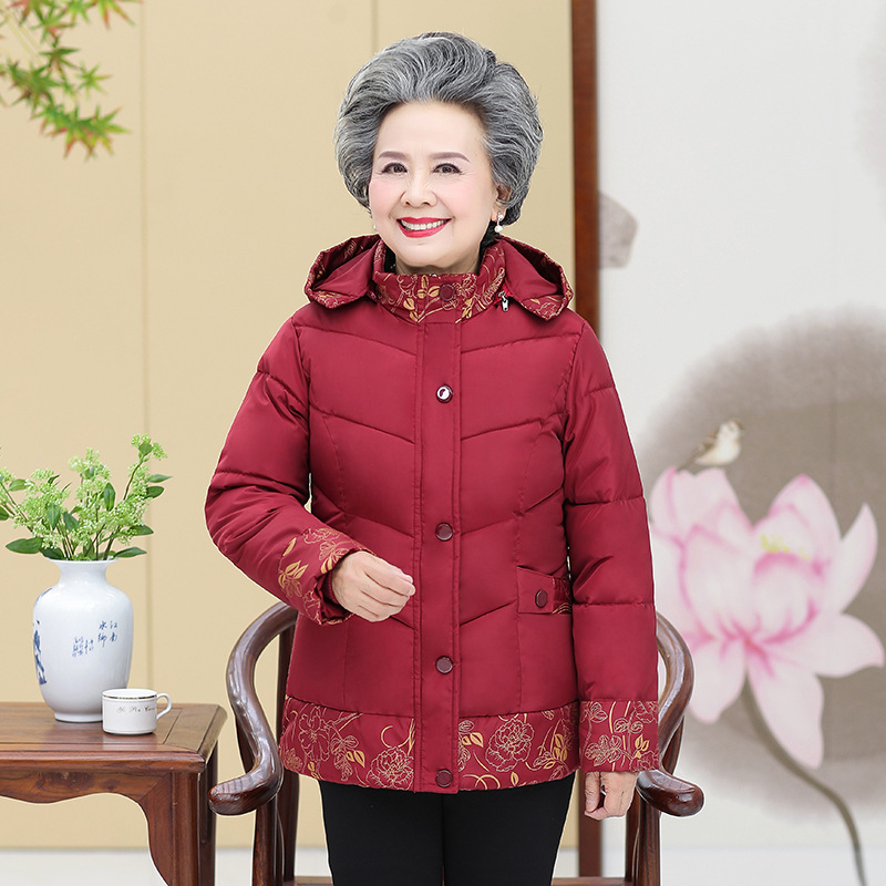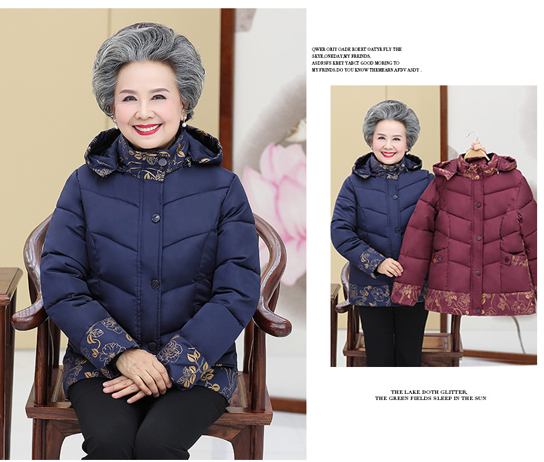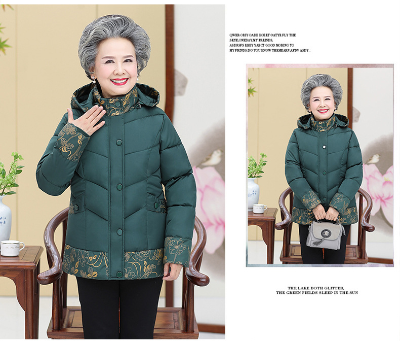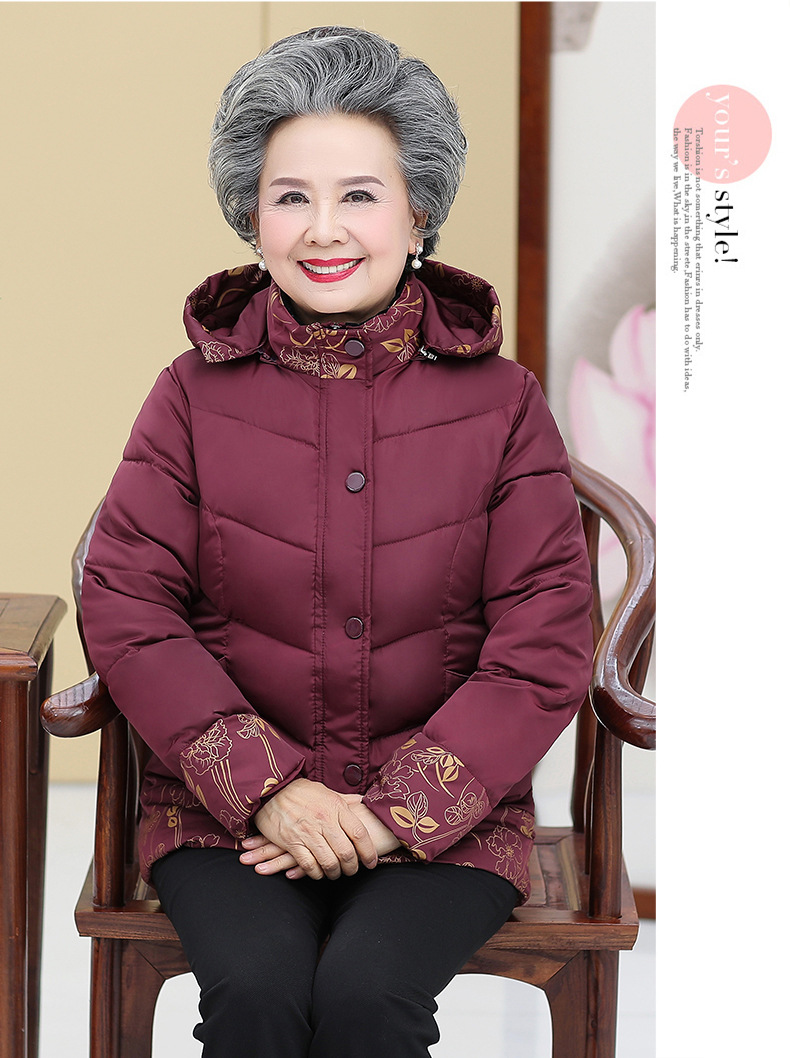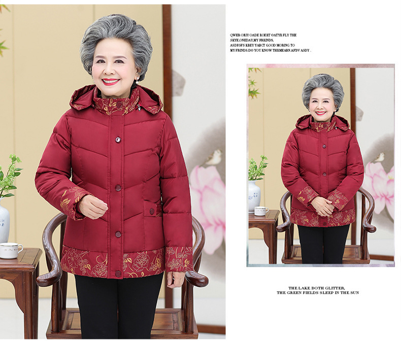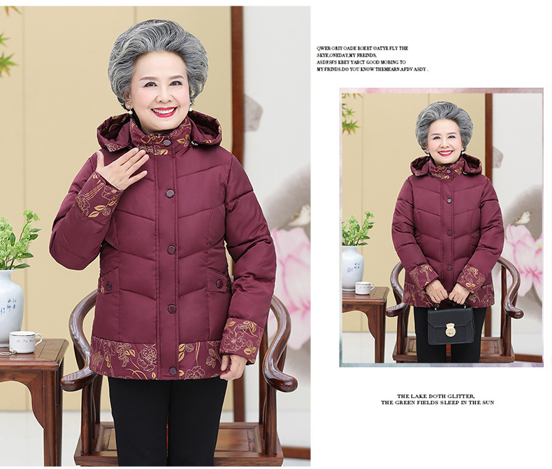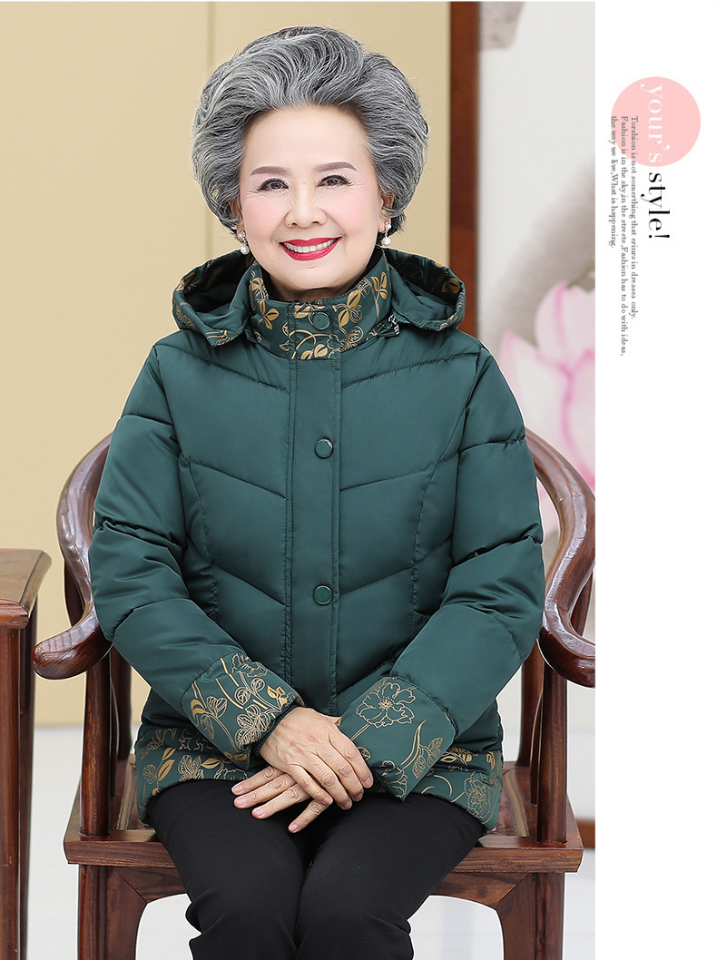 Средний и пожилой женский хлопчатобумажный костюм модный повседневный дикий темпераментный цветок 2024 зимний новый пожилой теплый хлопковый костюм