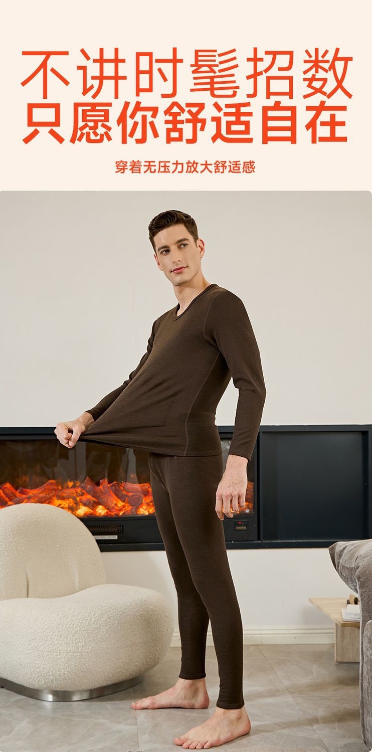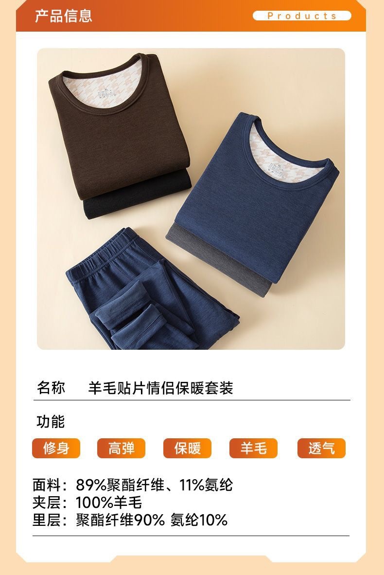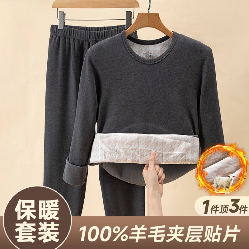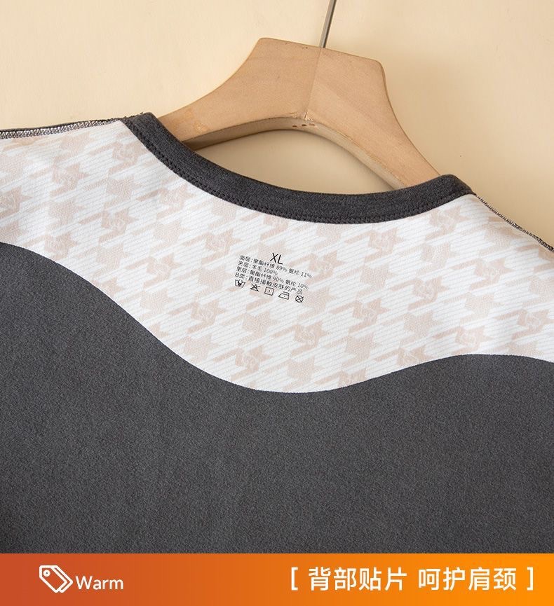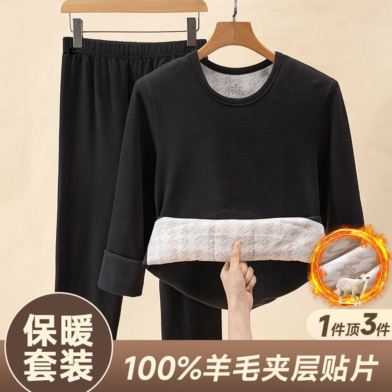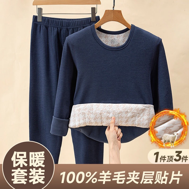 [100% шерстяной патч] Осенний и зимний теплый костюм мужской с круглым вырезом