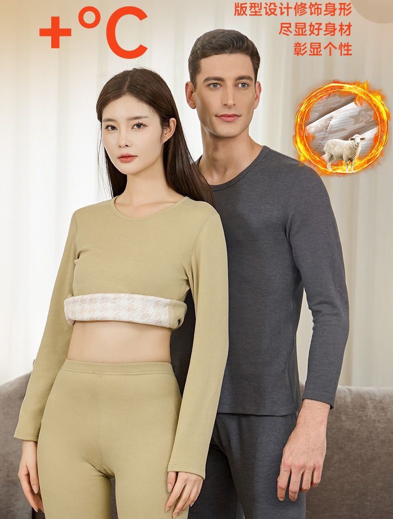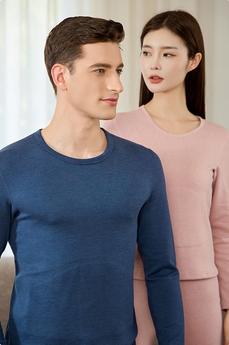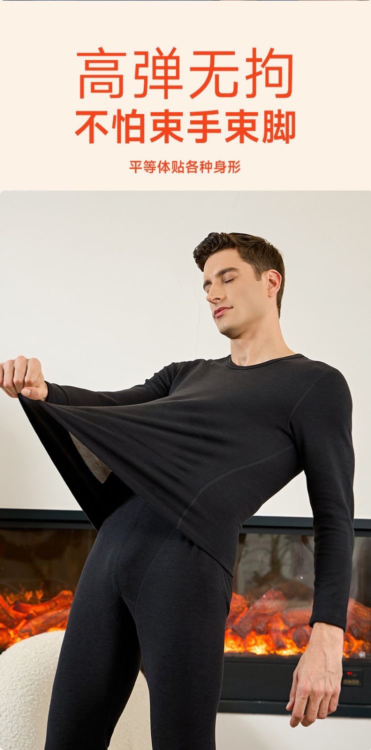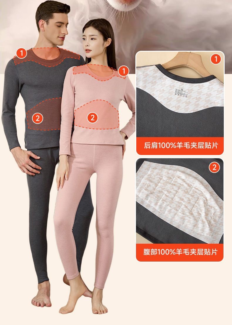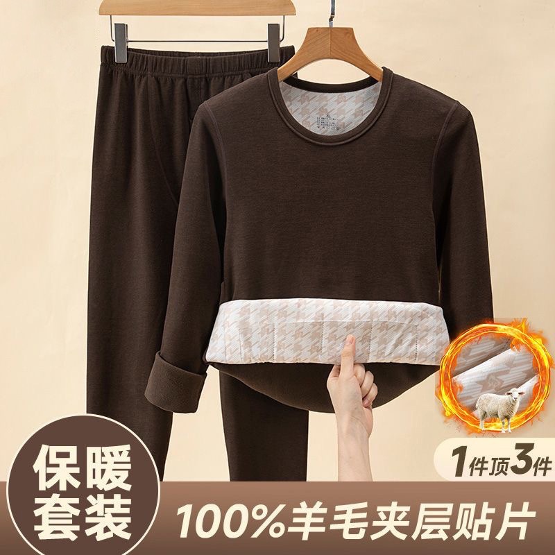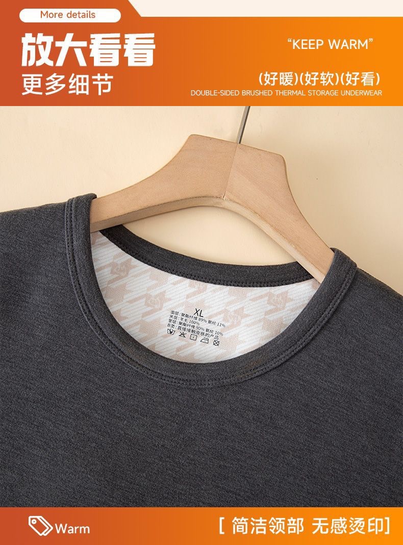 [100% шерстяной патч] Осенний и зимний теплый костюм мужской с круглым вырезом