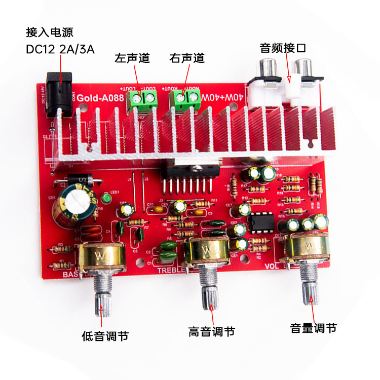 Gold-A088 TDA7377双声道车载DIY立体声功放板DC12V 2* 40W