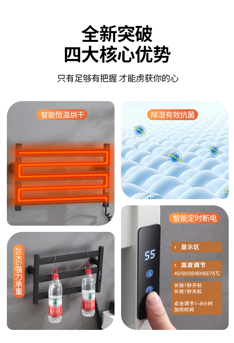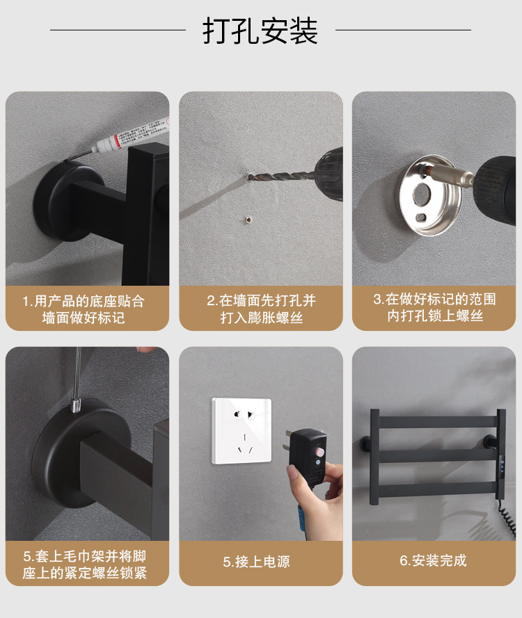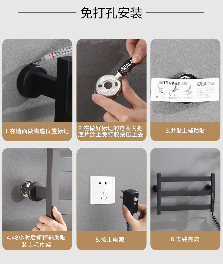 Трансграничная умная электрическая вешалка для полотенец из нержавеющей стали с подогревом и постоянной температурой, без дырокола, вешалка для полотенец для ванной комнаты Amazon