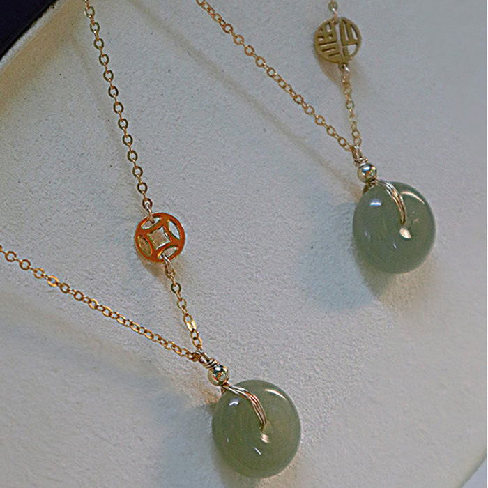 Ping An Xilufu бренд Hetian Jade Ожерелье Женская цепочка ключицы ins Ся дикий новый китайский продвинутый дизайн чувство ниши