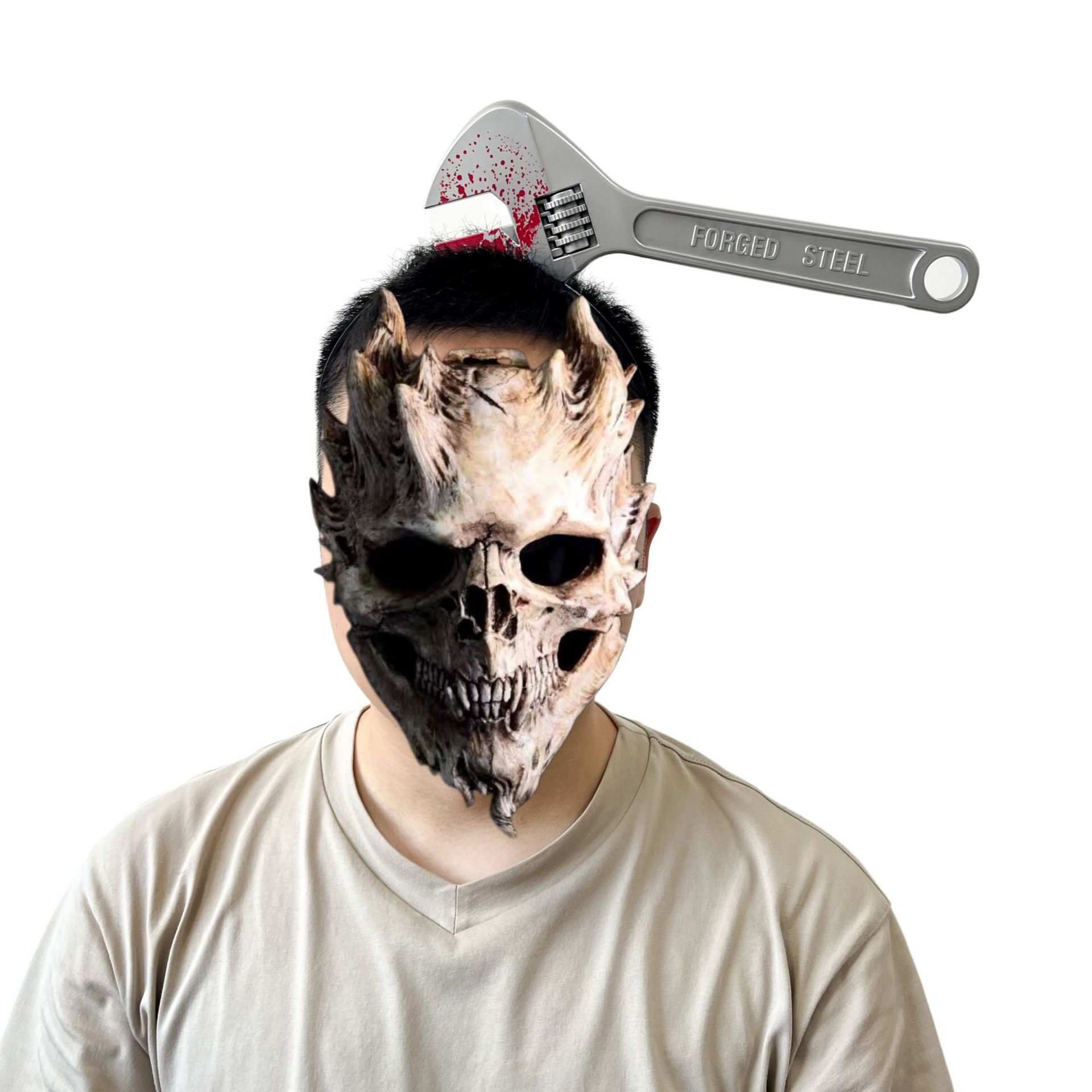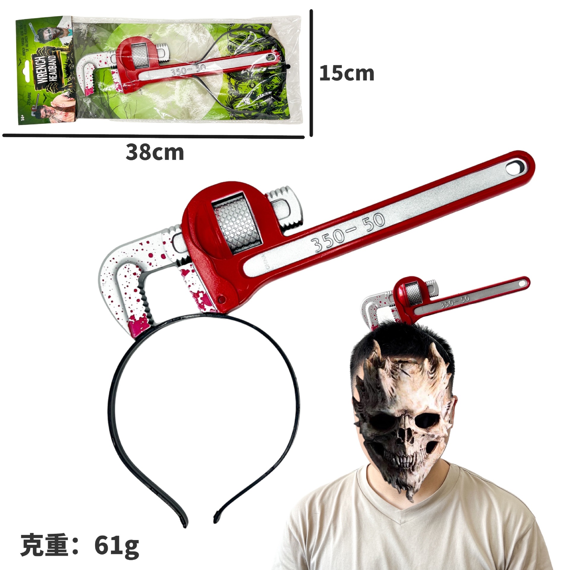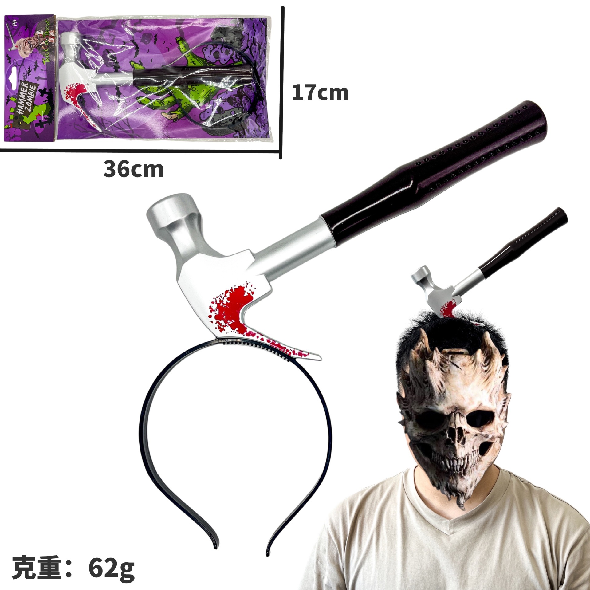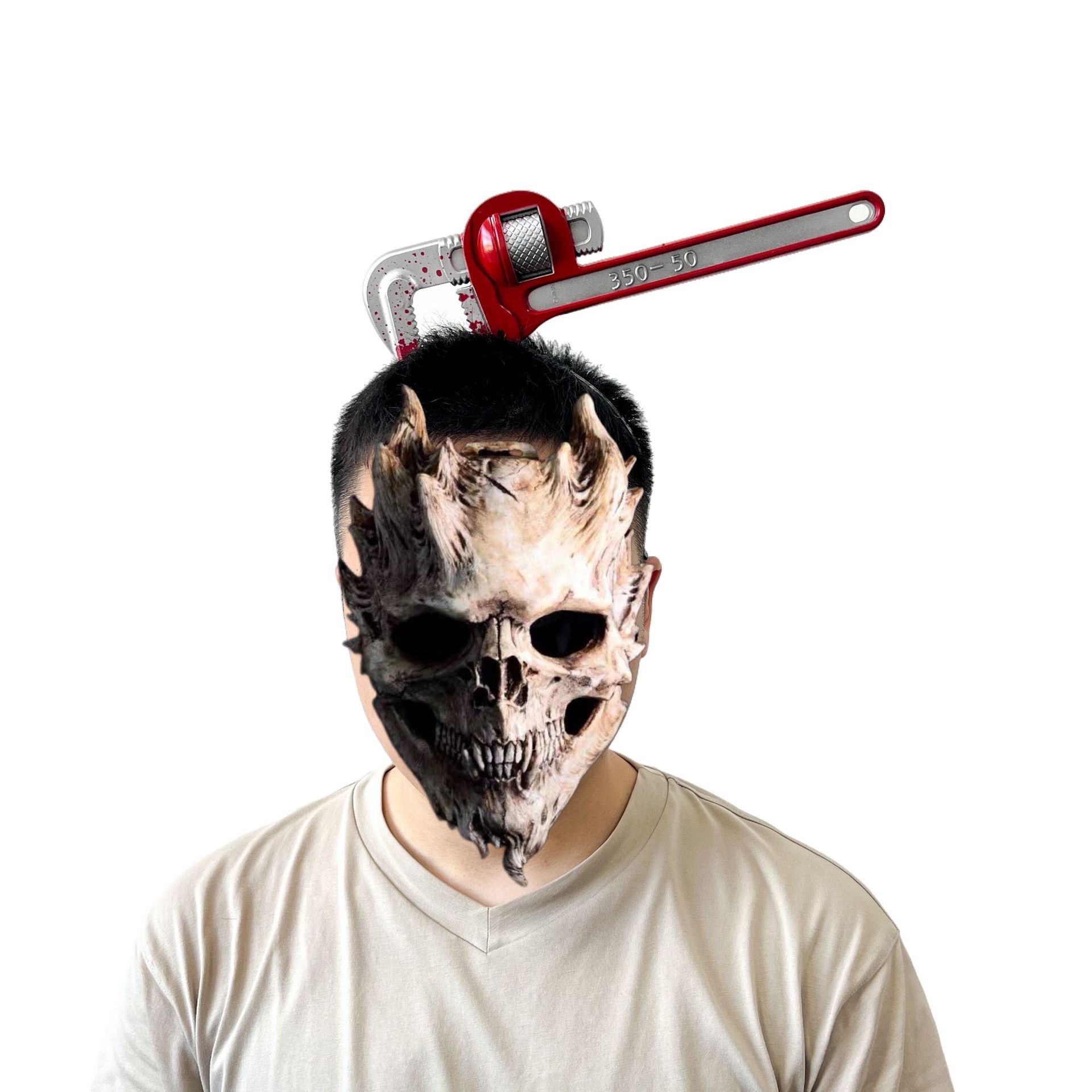 Носить топор; Острый нож; Кухонный нож; Пилы для ношения головы; Молоток с головой; Живой гаечный ключ; Красная труба плоскогубцы; Бутылка для вина; Стрелка с головой; Ножницы на голове; Трубка иглы; кровоточащий нож для пирсинга головы; Головной убор «Глаз дьявола»