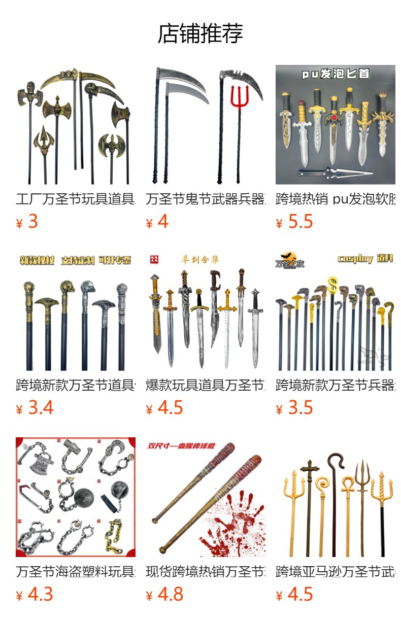 专业生产出口刀剑玩具20年,自主生产设计塑料仿真刀剑、木制玩具刀剑,有海盗系列、万圣节系列、中世纪骑士系列、日本武士刀系列、日本动漫系列、化妆舞会系列等刀、剑、盾牌相关产品,产品款式几百款,专业值得信赖。