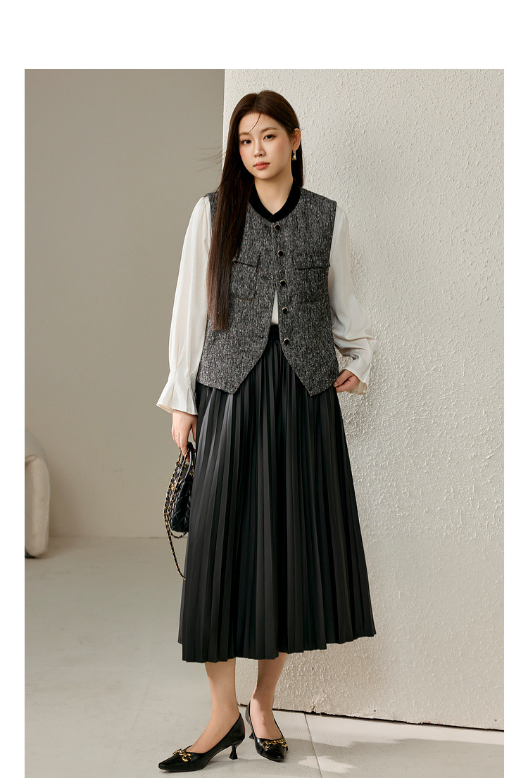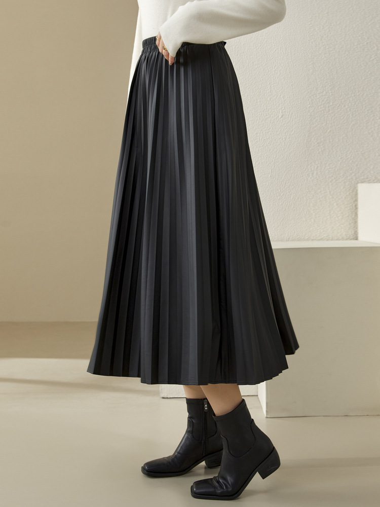 Полноцветное шоу большого размера женская ретро элегантная стерео плиссированная тонкая юбка из кожи PU толстая mm2024 осенняя новая