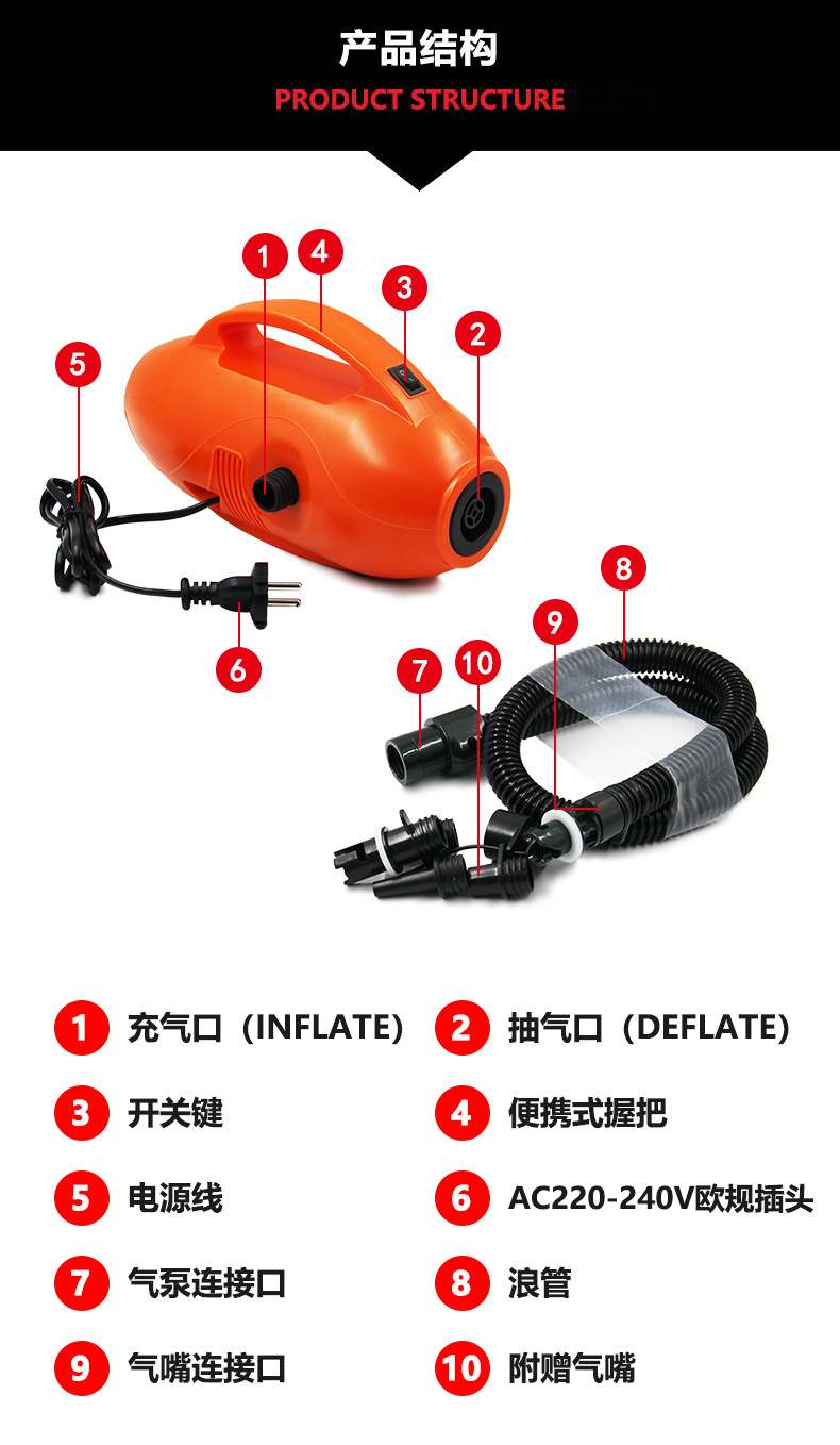Высокая мощность 600W переменного тока электрический надувной насос надувная палатка надувная кровать йога коврик надувная понтон надувная лодка
