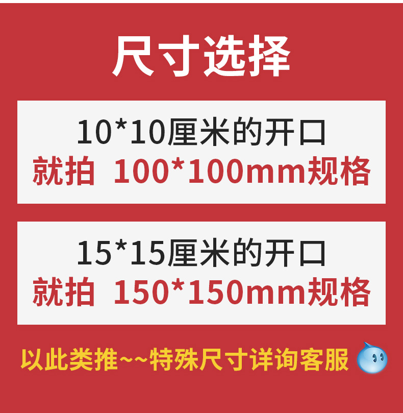 Дверная поворотная 100×100мм (4"×4"); Поворот 100×150мм (4"×6"); Тип поворота 120×120 мм (4,5 дюйма × 4,5 дюйма); Тип поворота 150×150 мм (6 дюймов×6 дюймов); Тип поворота 150×200 мм (6 дюймов×8 дюймов); Тип поворота 150×225 мм (6 дюймов×9 дюймов); Тип поворота двери 200×200 мм (8 дюймов×8 дюймов); Тип поворота двери 200×300 мм (8 дюймов×12 дюймов); Тип поворота двери 300×300 мм (12 дюймов×12 дюймов); Дверной поворотный тип 100×100мм (4"×4") [с двусторонним скотчем]; Дверная петля 100×150мм (4"×6") [с двусторонним скотчем]; Тип поворота двери 120×120 мм (4,5 дюйма×4,5 дюйма) [с двусторонним скотчем]; Дверной поворотный тип 150×150 мм (6 дюймов×6 дюймов) [с двусторонней лентой]; Дверной поворотный тип 150×200 мм (6 дюймов×8 дюймов) [с двусторонней лентой]; Дверной поворотный тип 150×225 мм (6 дюймов×9 дюймов) [с двусторонним скотчем]; Дверной поворотный тип 200×200 мм (8 дюймов×8 дюймов) [с двусторонней лентой]; Дверной поворотный тип 200×300мм (8"×12") [с двусторонним скотчем]; Дверной поворотный тип 300×300мм (12"×12") [с двусторонним скотчем]; Потолок/поддон типа 200×200; Потолок/поддон типа 200×300; Тип потолка/подноса 250×250; Тип потолка/подноса 300×300; Тип потолка/лотка 350×350; Тип потолка/лотка 400×400; Тип потолка/лотка 450×450; Тип потолка/подноса 480×480