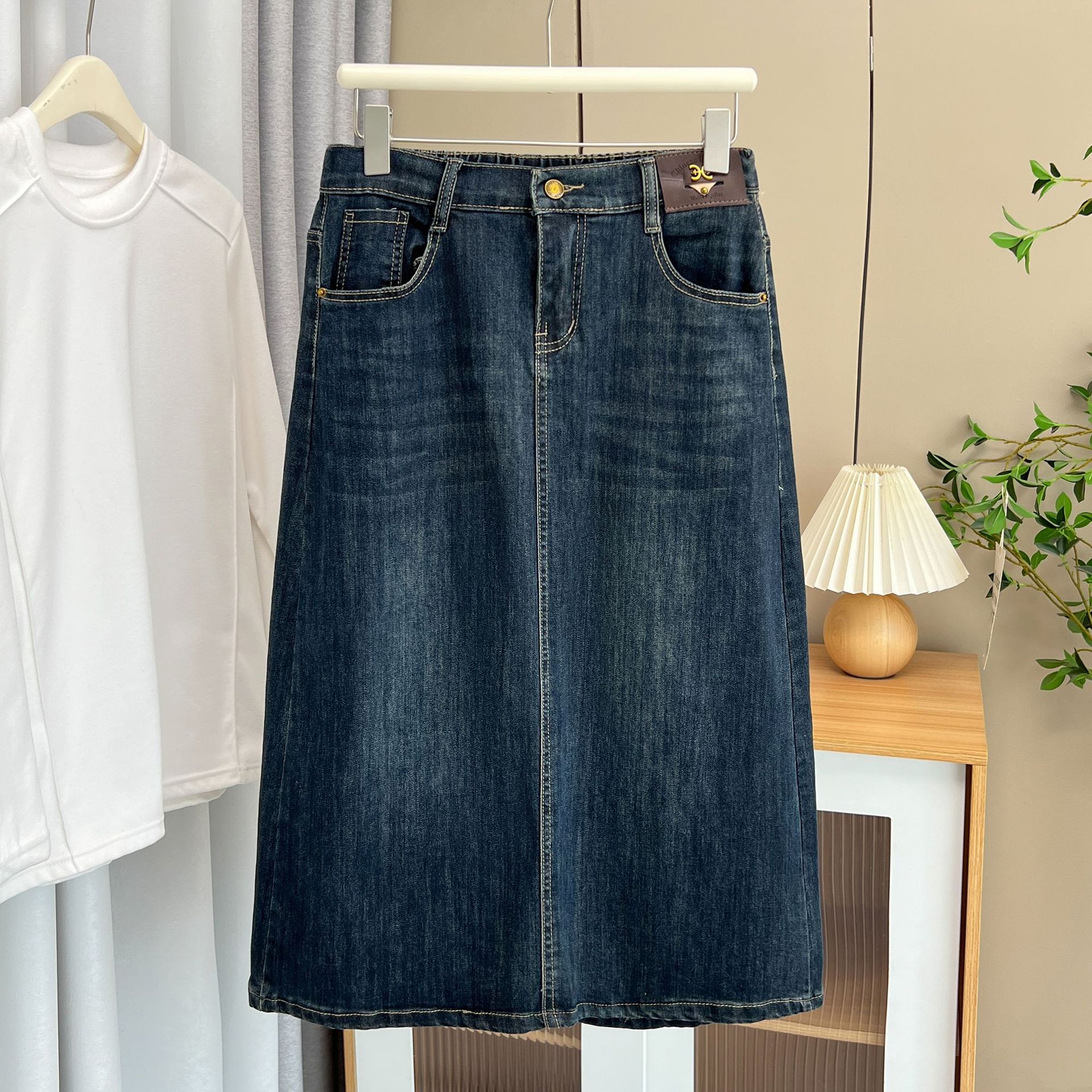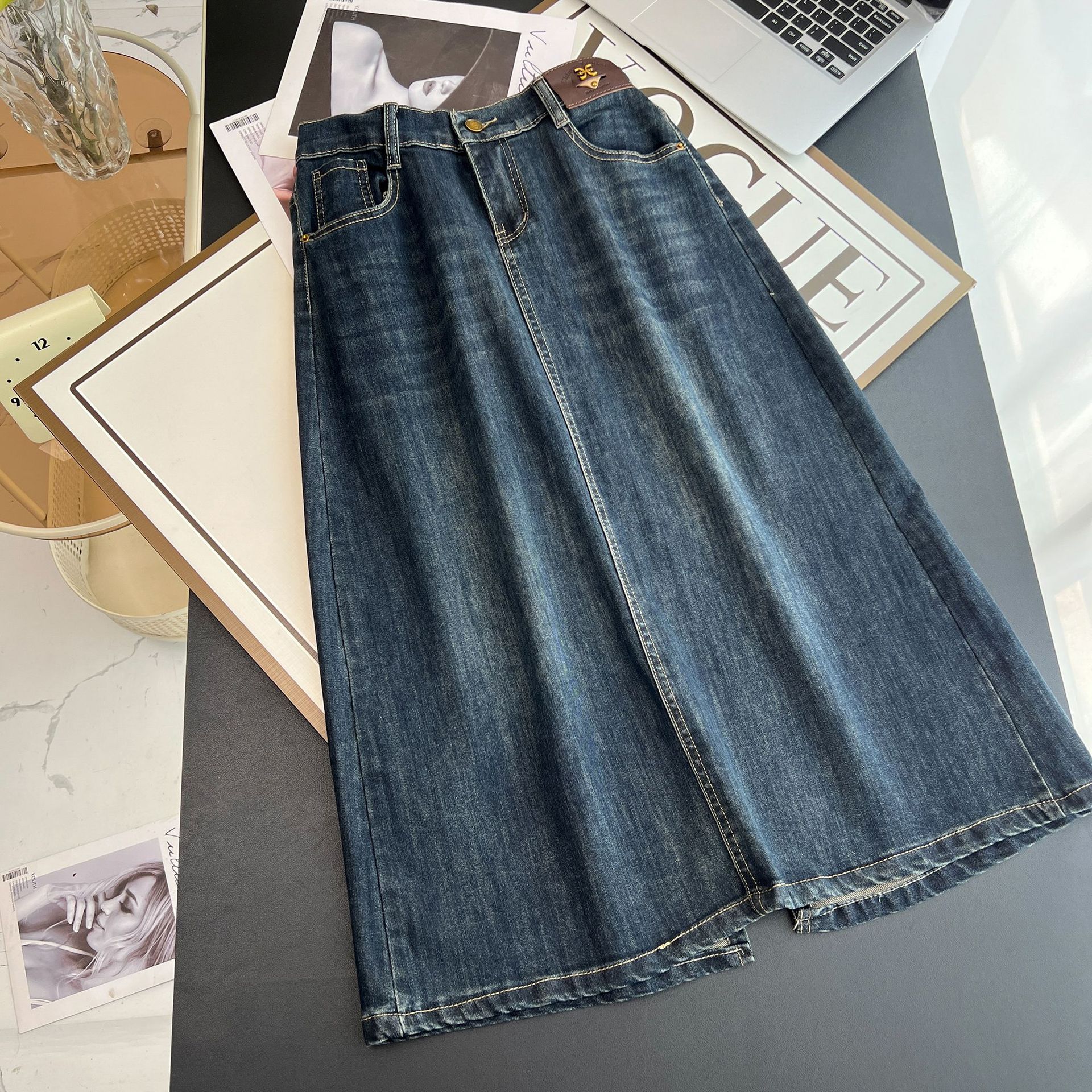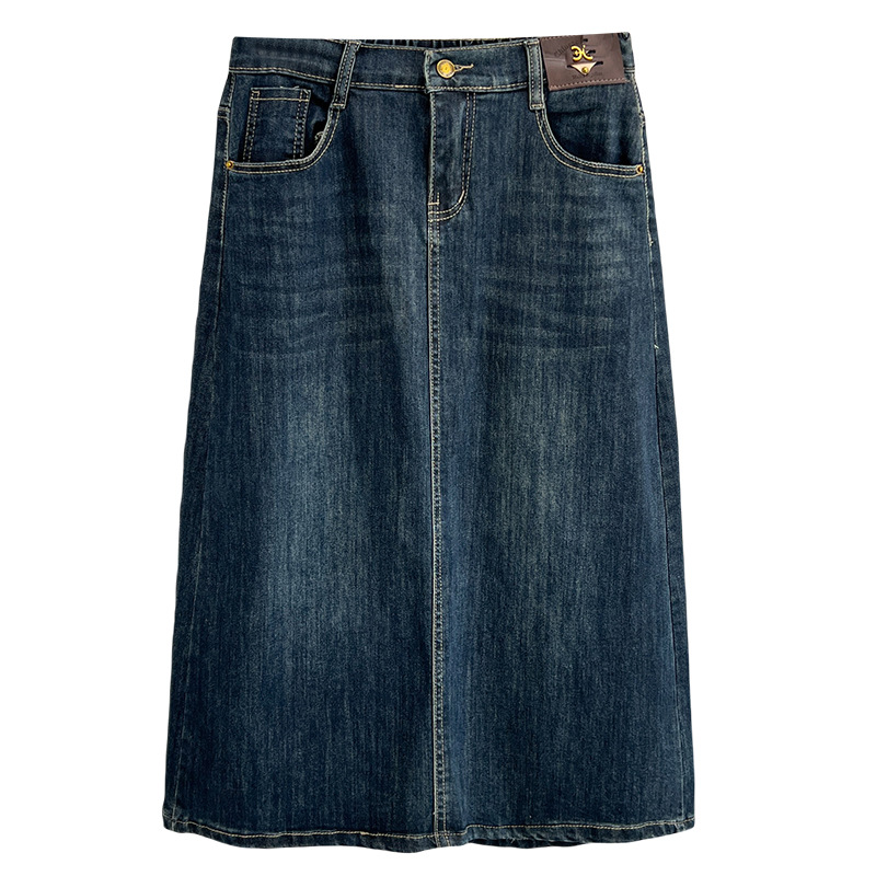 2024 Новый осенний 200 кг толстый MM повседневный средний и длинный открытый джинсовый юбка-юбка большого размера женская юбка-букет 4946