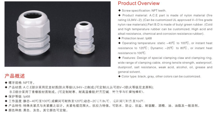 Производитель прямой поставки NPT зубы нейлоновый водонепроницаемый кабель фиксированная головка из США типа NPT пластиковый водонепроницаемый кабель разъем