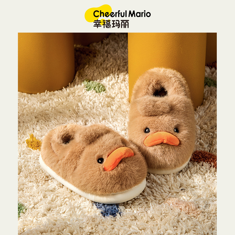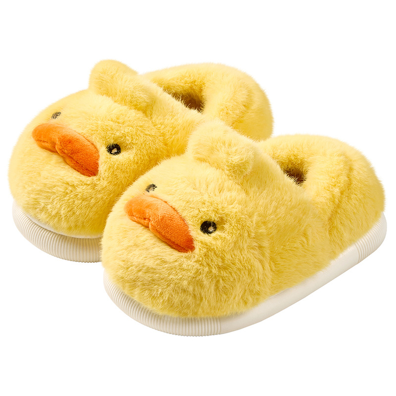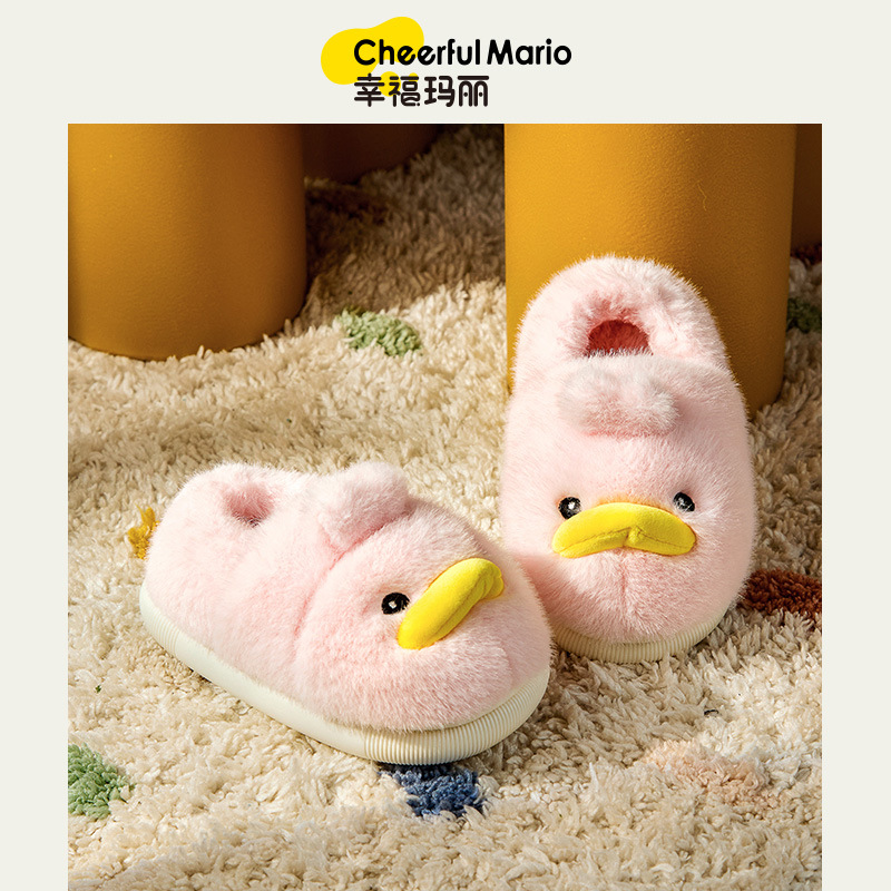 Детские хлопковые тапочки Happy Mary для девочек, осенне-зимние домашние тапочки для мальчиков, теплые плюшевые хлопковые тапочки для малышей в виде маленькой желтой уточки.