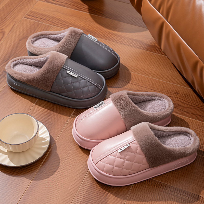Пожилые хлопчатобумажные тапочки мужские зимние ПУ водонепроницаемые домашние противоскользящие теплые пожилые большие размеры тапочки женщины